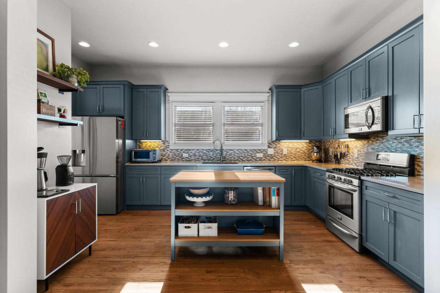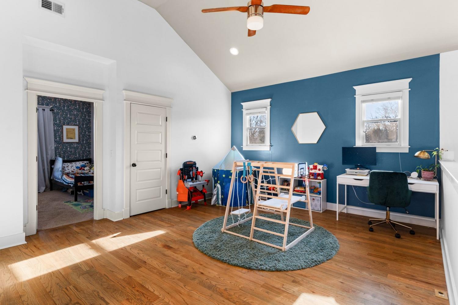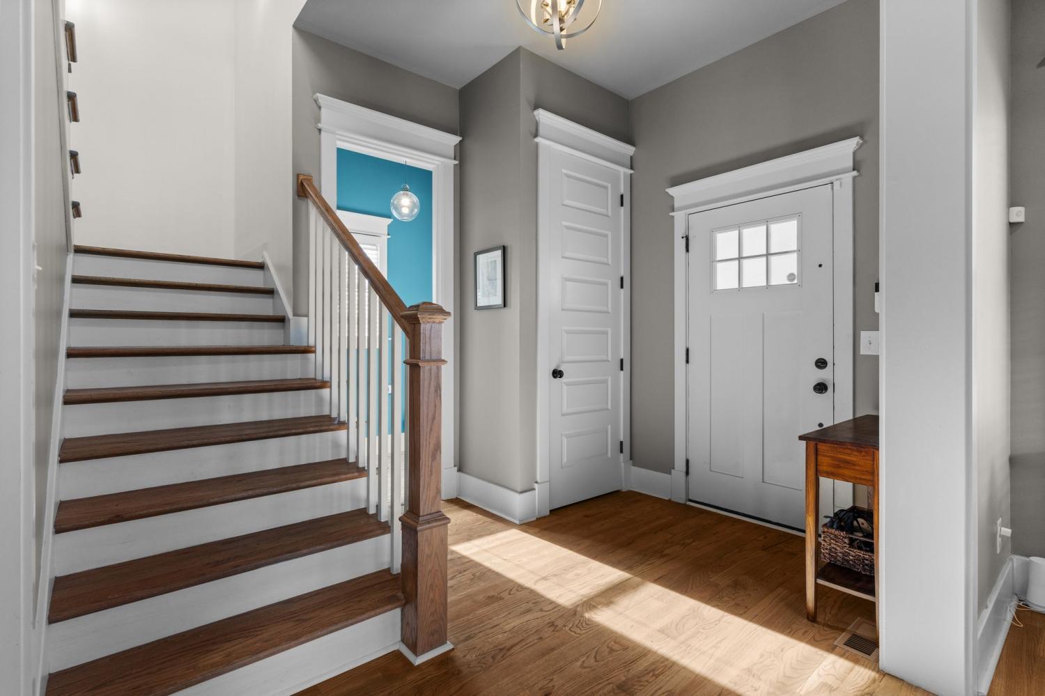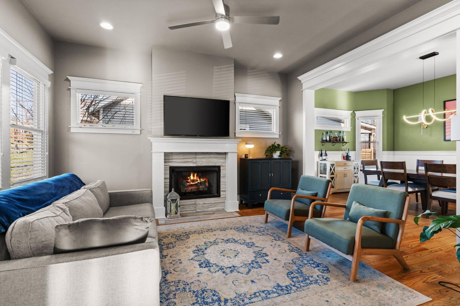 Set on a quiet, tree-lined street in one of Inglewood's most walkable pockets, this Modern Craftsman offers the rare combination of thoughtful design, flexible space, and exceptional outdoor living—all within steps of Dan Mills Elementary and minutes from Riverside Village and Shelby Bottoms. The main level delivers true everyday livability. An open kitchen with blue-gray shaker cabinetry, butcher block island, and gas range flows into the wainscoted dining room and sun-filled living room. The primary suite completes the main floor with direct porch access, a spa-inspired bath featuring soaking tub and separate shower, and a walk-in closet with custom built-ins. Upstairs, two additional bedrooms share a hall bath with dual vanities, while a vaulted bonus room offers flexibility as a playroom, media room, or home office. The screened-in back porch creates a seamless connection between indoor and outdoor living—dual ceiling fans, access from both kitchen and primary suite, and views over the private backyard. Below, a 15x15 paver patio anchors the fully fenced yard, regraded in 2023 and finished with TifTuf Bermuda in 2024. Built 2016 | 2,338 SF | 3 BR | 2.5 BA | Zoned Dan Mills Elementary