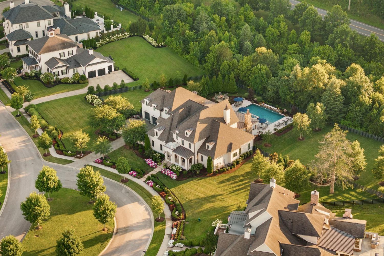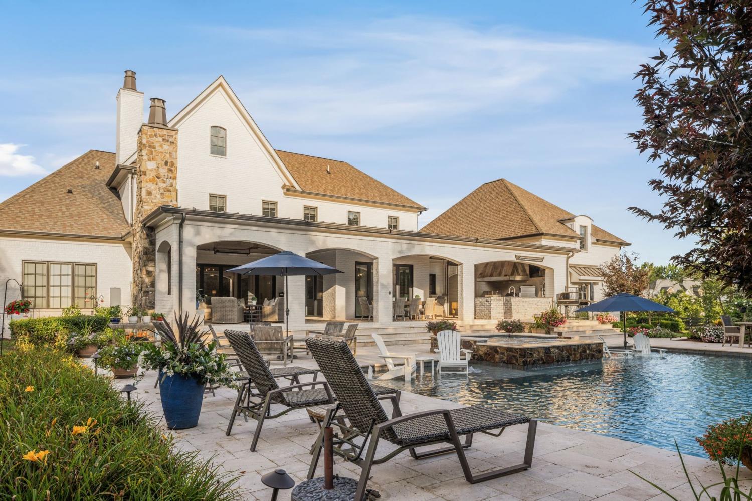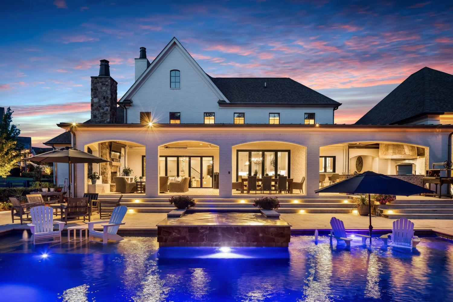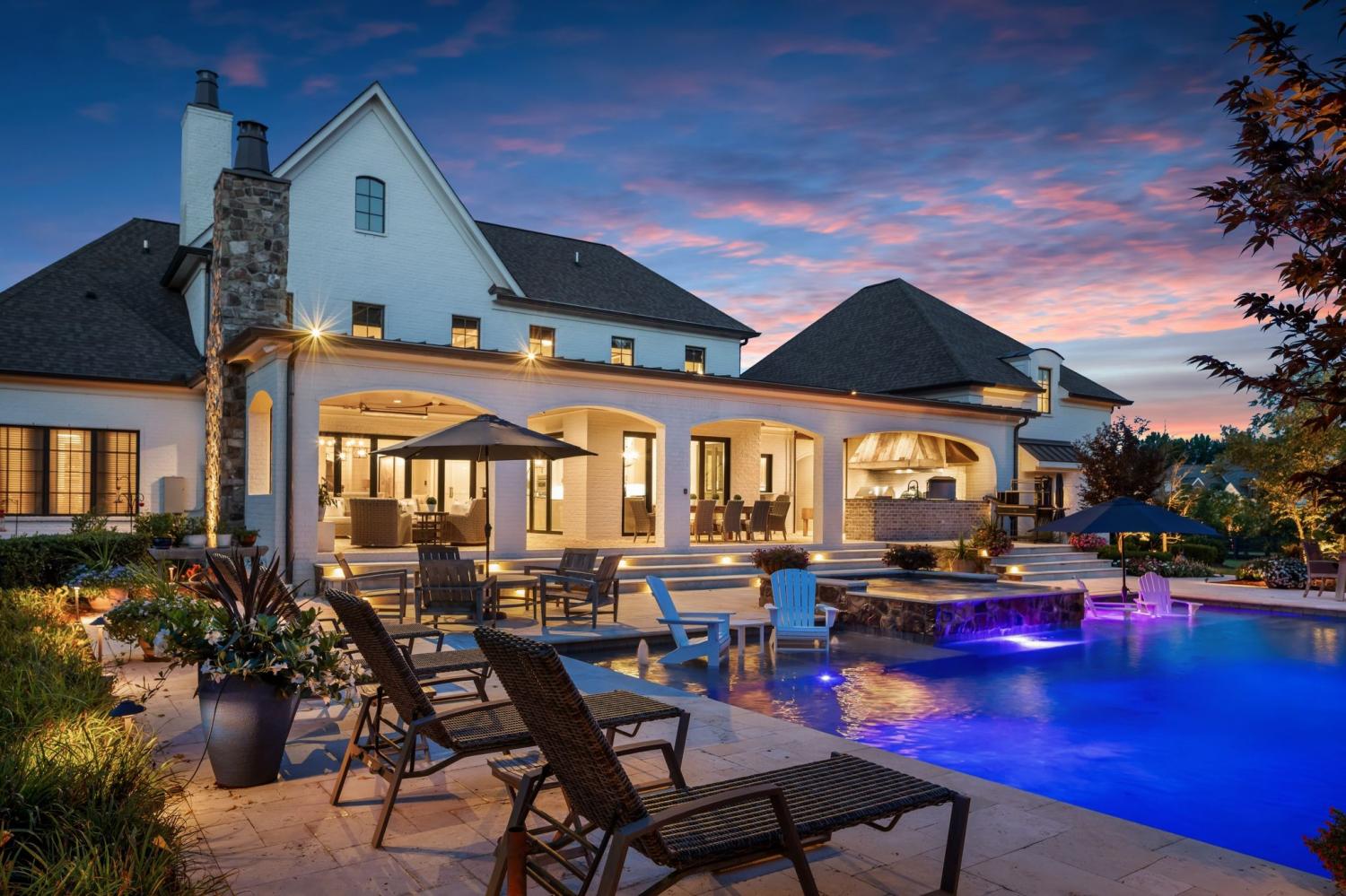 Located in The Grove, one of Middle Tennessee’s most prestigious gated golf communities, this exceptional custom estate spans 1.36 acres and offers more than 7,250 square feet of refined, thoughtfully curated living space. Set along an established, tranquil street with no nearby active construction, the residence provides a sense of privacy and serenity while remaining moments from the community’s world‑class amenities. Every detail of the home has been elevated with a fully automated Control4 smart home system, allowing effortless control of lighting, climate, audio, security, and the expansive indoor–outdoor living areas. The technology is seamlessly integrated, enhancing comfort and convenience without compromising the home’s timeless aesthetic. Designed for both grand entertaining and effortless everyday living, the property features 6 full baths, 2 half baths, a 5‑car garage, two laundry rooms, a spacious bonus room, and a beautifully appointed guest house connected to the main residence by a covered brick walkway. The layout blends elegance with functionality, offering generous room sizes, sophisticated finishes, and exceptional flow throughout. A defining highlight of the estate is its extraordinary 1,500‑square‑foot outdoor living space, crafted as a true extension of the home. The entire back façade opens completely to the outdoors, creating a harmonious connection between interior luxury and the natural surroundings. This expansive area is enhanced with built‑in heaters, power shades, and multiple zones for lounging and dining, allowing year‑round enjoyment. Overlooking the grounds is a resort-style pool, surrounded by thoughtfully designed spaces that invite relaxation, connection, and celebration. The total square footage includes the attached guest house, entered in MLS as the third floor.