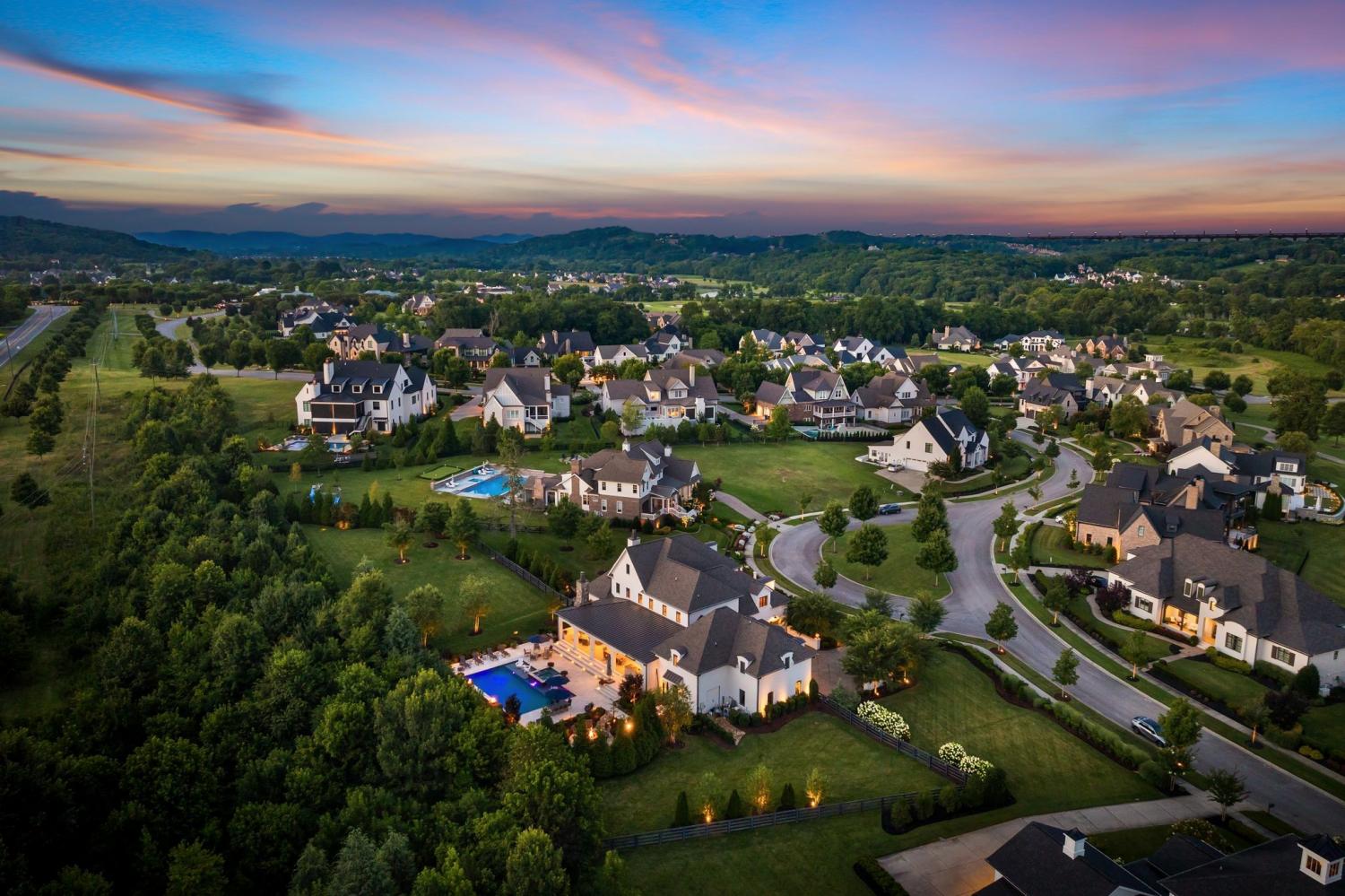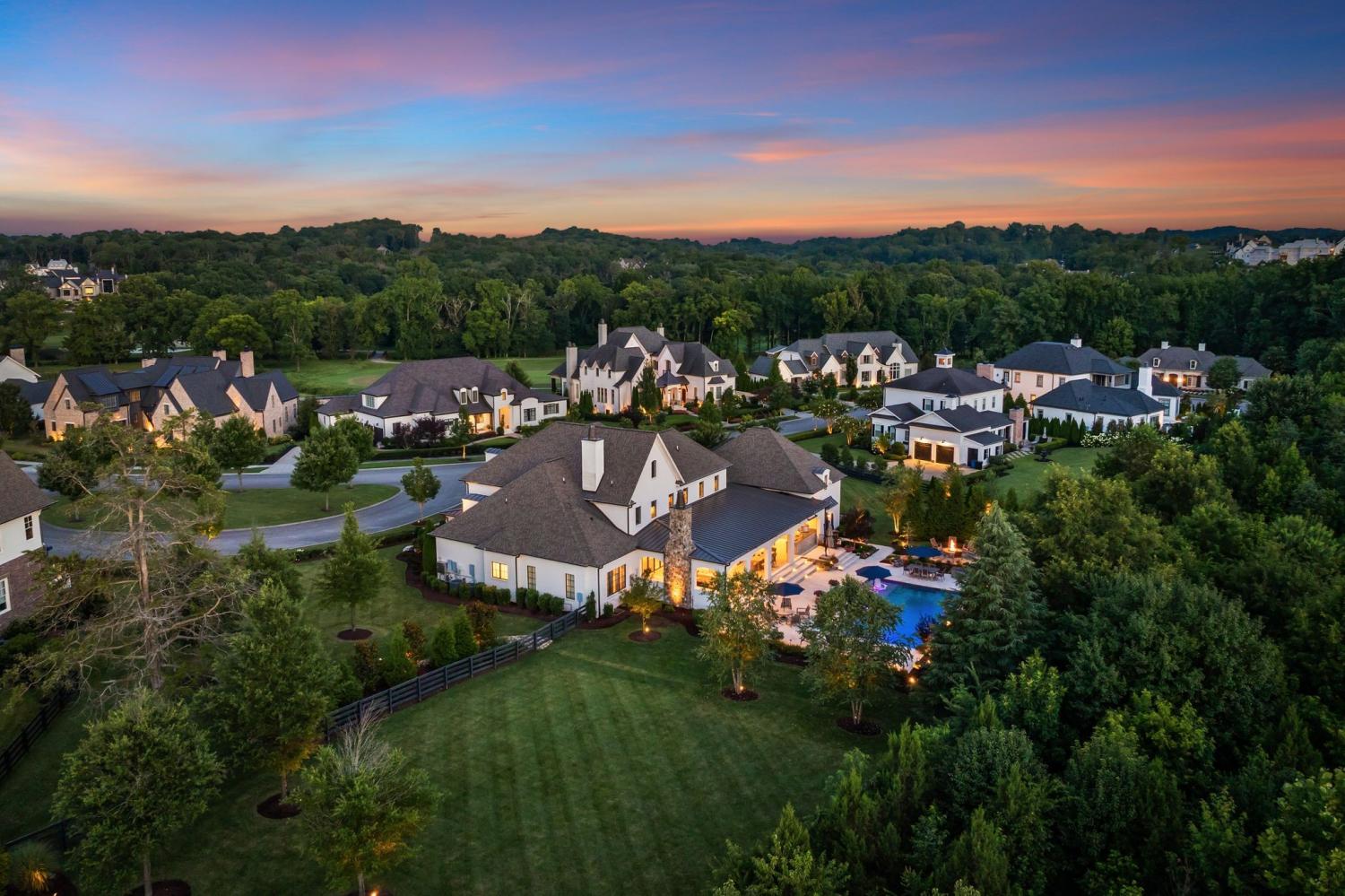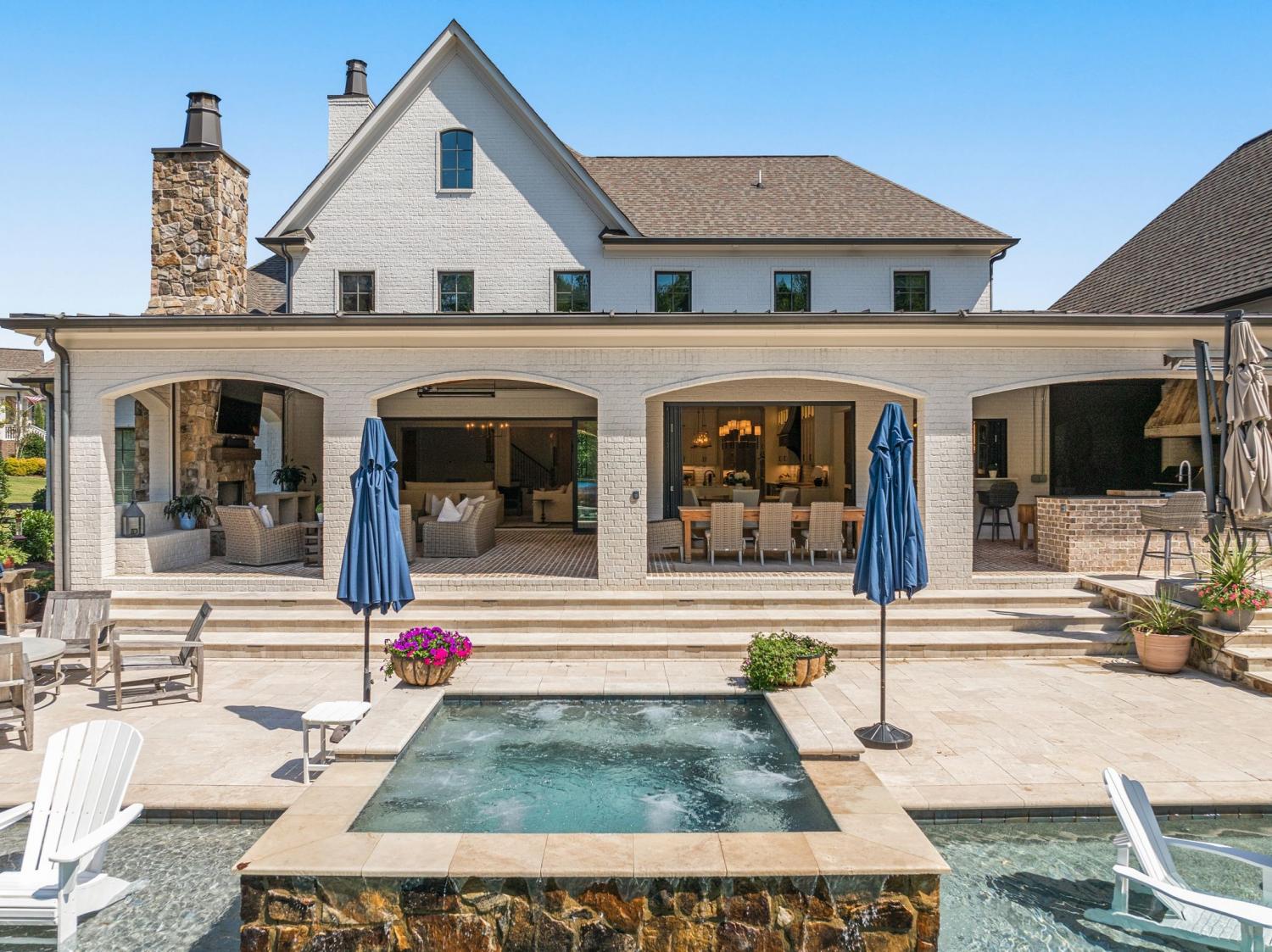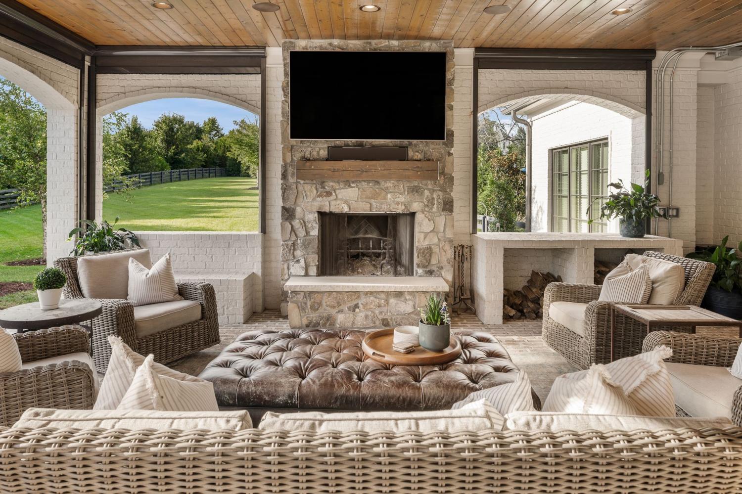 Located in The Grove, one of Middle Tennessee’s most prestigious gated golf communities, this exceptional custom estate spans 1.36 acres and offers more than 7,250 square feet of refined, thoughtfully curated living space. Set along an established, tranquil street with no nearby active construction, the residence provides a sense of privacy and serenity while remaining moments from the community’s world‑class amenities. Every detail of the home has been elevated with a fully automated Control4 smart home system, allowing effortless control of lighting, climate, audio, security, and the expansive indoor–outdoor living areas. The technology is seamlessly integrated, enhancing comfort and convenience without compromising the home’s timeless aesthetic. Designed for both grand entertaining and effortless everyday living, the property features 6 full baths, 2 half baths, a 5‑car garage, two laundry rooms, a spacious bonus room, and a beautifully appointed guest house connected to the main residence by a covered brick walkway. The layout blends elegance with functionality, offering generous room sizes, sophisticated finishes, and exceptional flow throughout. A defining highlight of the estate is its extraordinary 1,500‑square‑foot outdoor living space, crafted as a true extension of the home. The entire back façade opens completely to the outdoors, creating a harmonious connection between interior luxury and the natural surroundings. This expansive area is enhanced with built‑in heaters, power shades, and multiple zones for lounging and dining, allowing year‑round enjoyment. Overlooking the grounds is a resort-style pool, surrounded by thoughtfully designed spaces that invite relaxation, connection, and celebration. The total square footage includes the attached guest house, entered in MLS as the third floor.