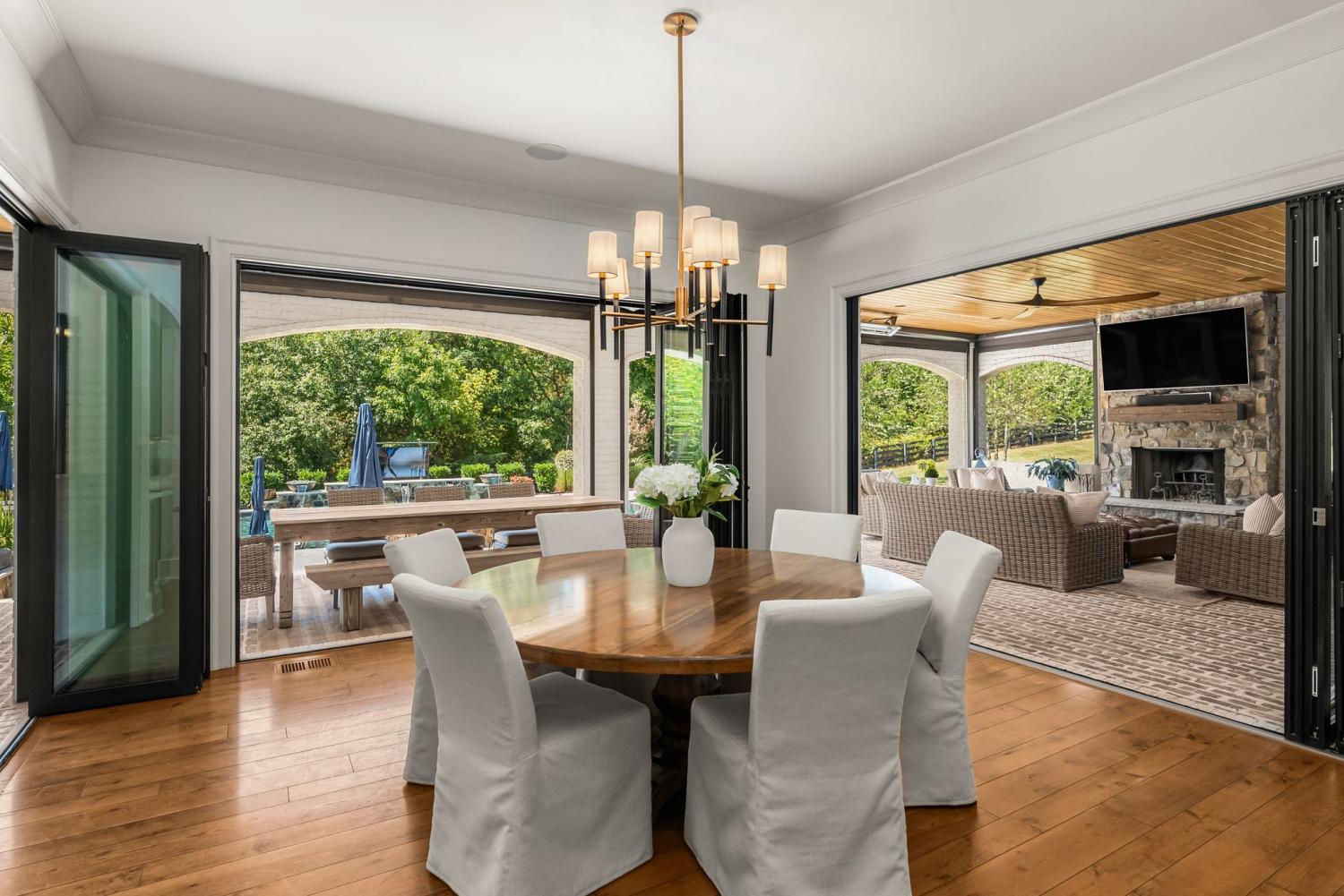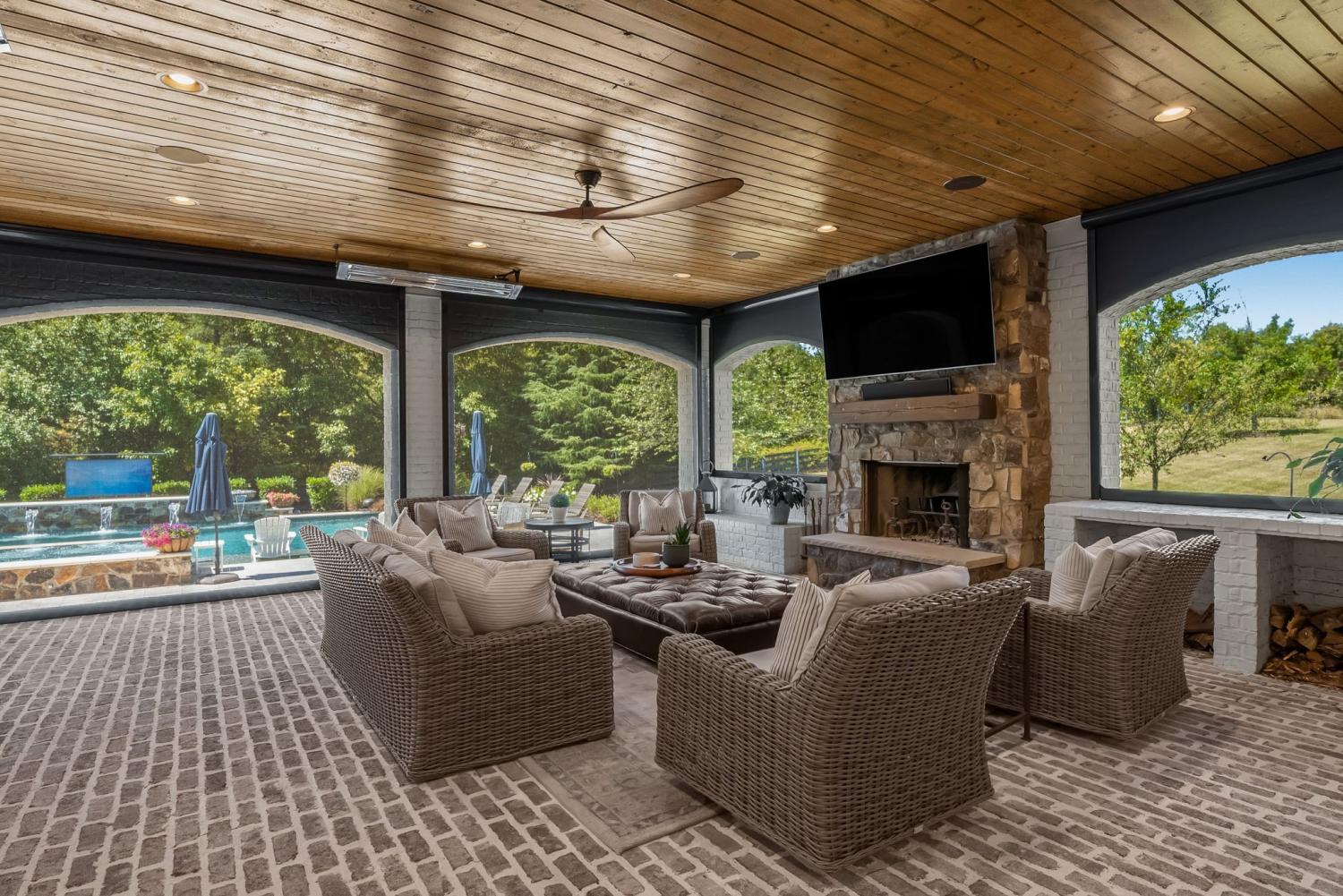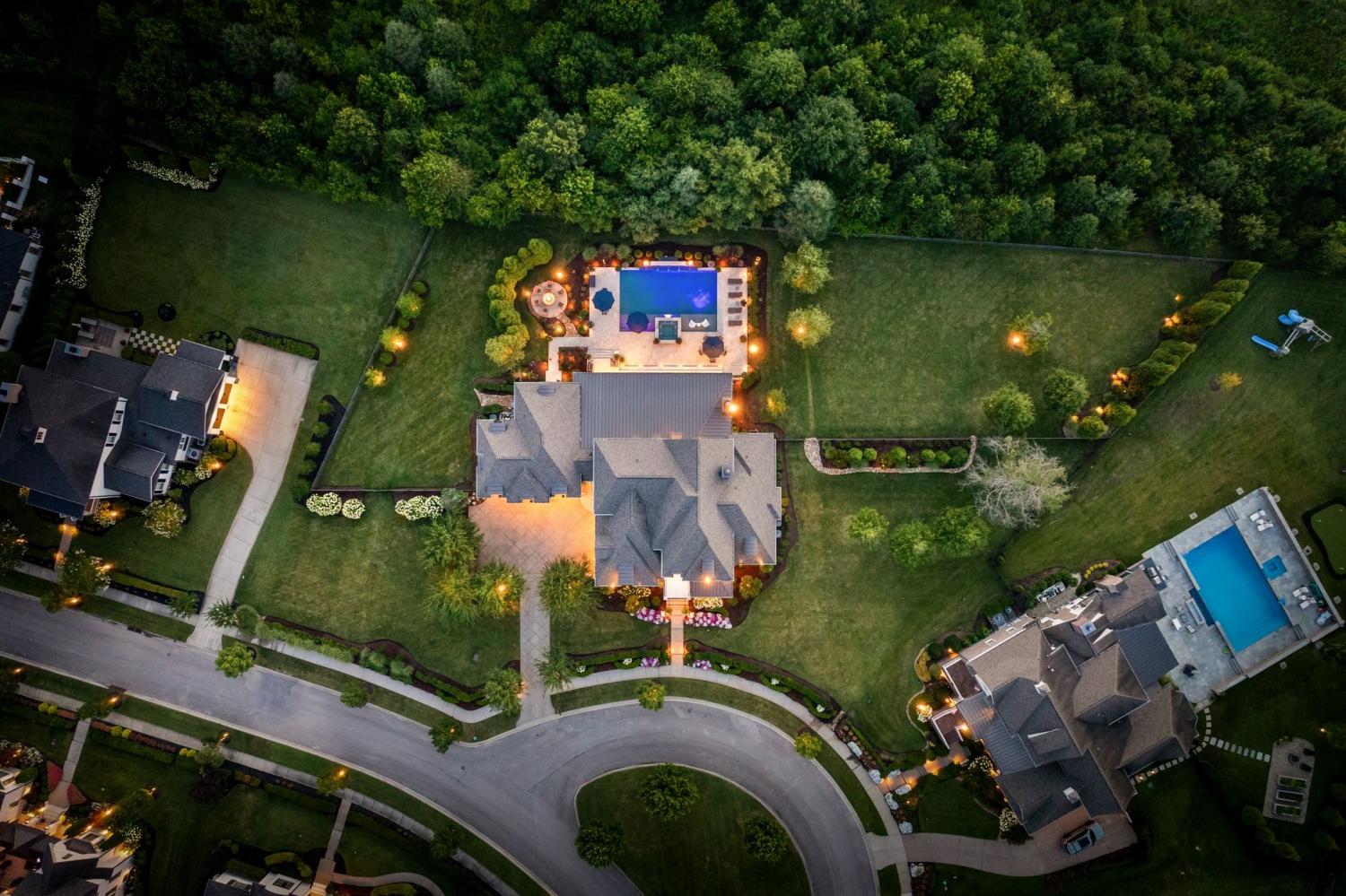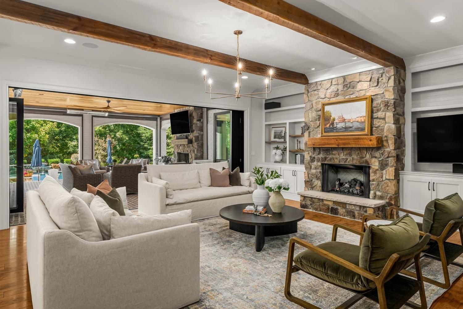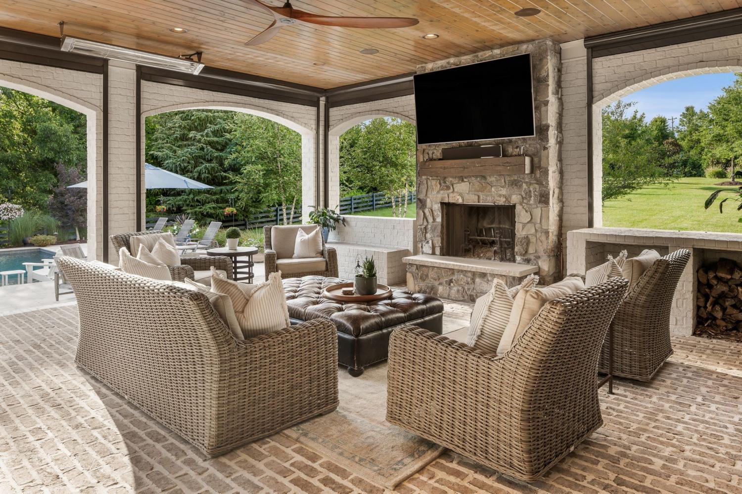 Located in The Grove, one of Middle Tennessee’s most prestigious gated golf communities, this exceptional custom estate spans 1.36 acres and offers more than 7,250 square feet of refined, thoughtfully curated living space. Set along an established, tranquil street with no nearby active construction, the residence provides a sense of privacy and serenity while remaining moments from the community’s world‑class amenities. Every detail of the home has been elevated with a fully automated Control4 smart home system, allowing effortless control of lighting, climate, audio, security, and the expansive indoor–outdoor living areas. The technology is seamlessly integrated, enhancing comfort and convenience without compromising the home’s timeless aesthetic. Designed for both grand entertaining and effortless everyday living, the property features 6 full baths, 2 half baths, a 5‑car garage, two laundry rooms, a spacious bonus room, and a beautifully appointed guest house connected to the main residence by a covered brick walkway. The layout blends elegance with functionality, offering generous room sizes, sophisticated finishes, and exceptional flow throughout. A defining highlight of the estate is its extraordinary 1,500‑square‑foot outdoor living space, crafted as a true extension of the home. The entire back façade opens completely to the outdoors, creating a harmonious connection between interior luxury and the natural surroundings. This expansive area is enhanced with built‑in heaters, power shades, and multiple zones for lounging and dining, allowing year‑round enjoyment. Overlooking the grounds is a resort-style pool, surrounded by thoughtfully designed spaces that invite relaxation, connection, and celebration. The total square footage includes the attached guest house, entered in MLS as the third floor.