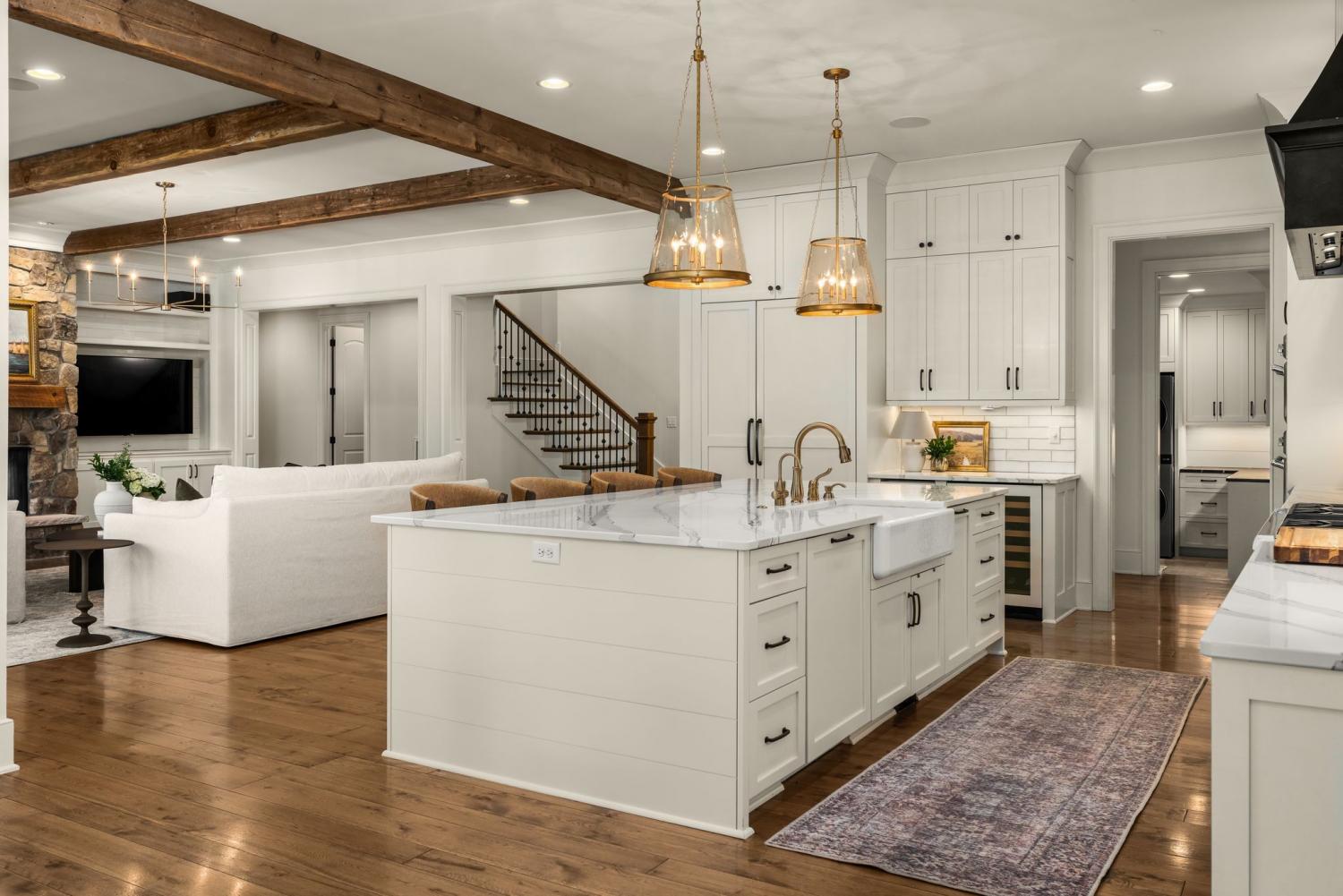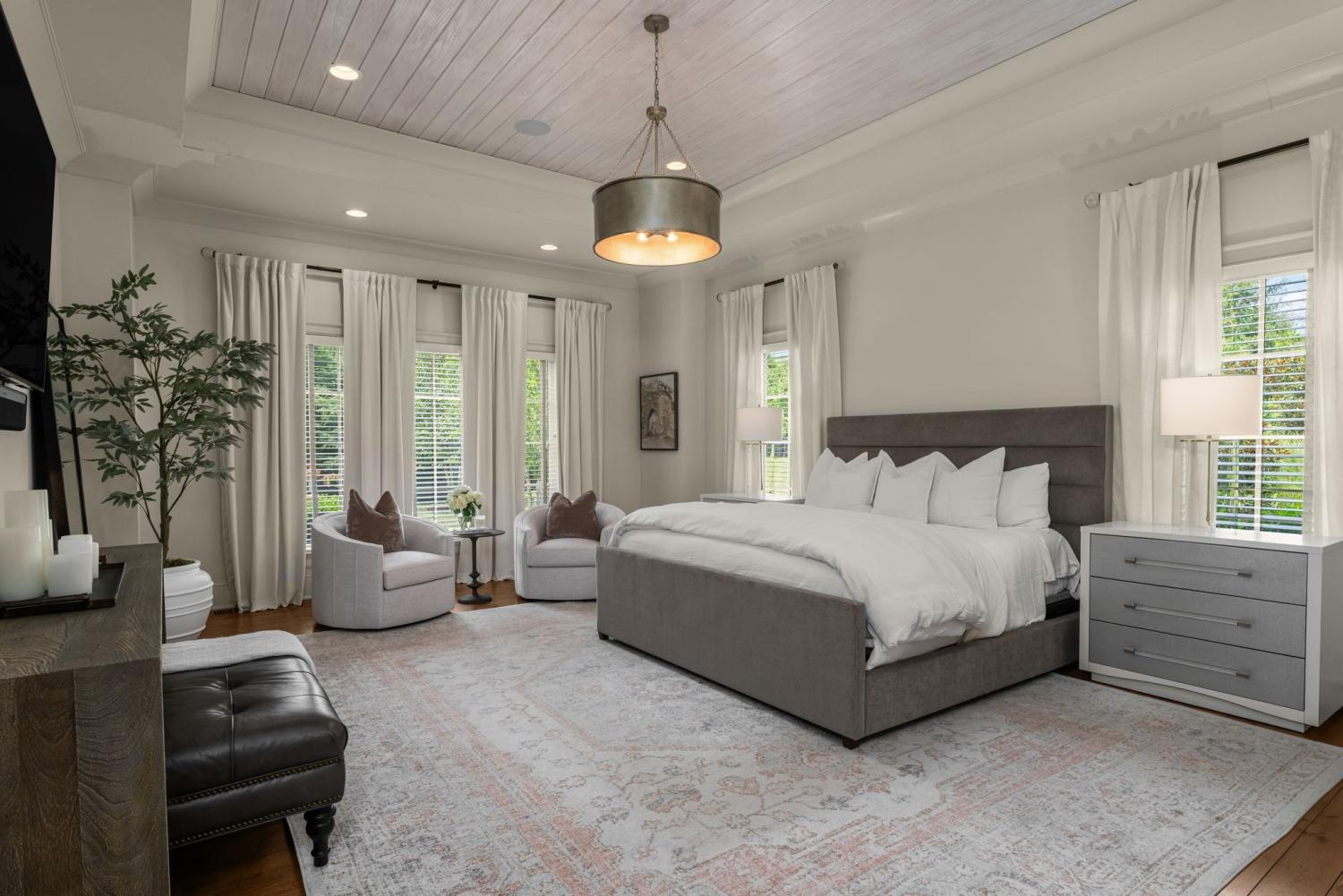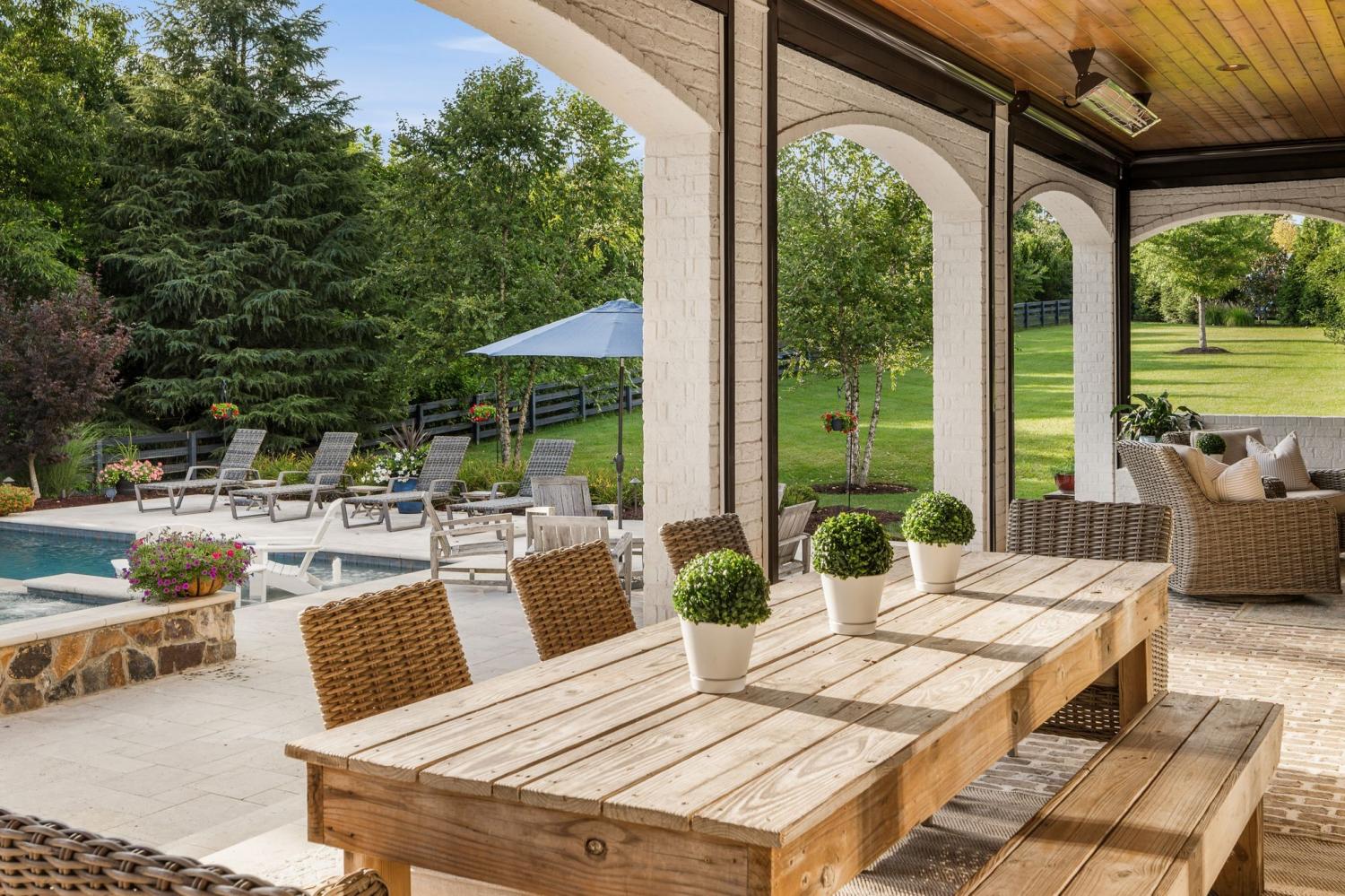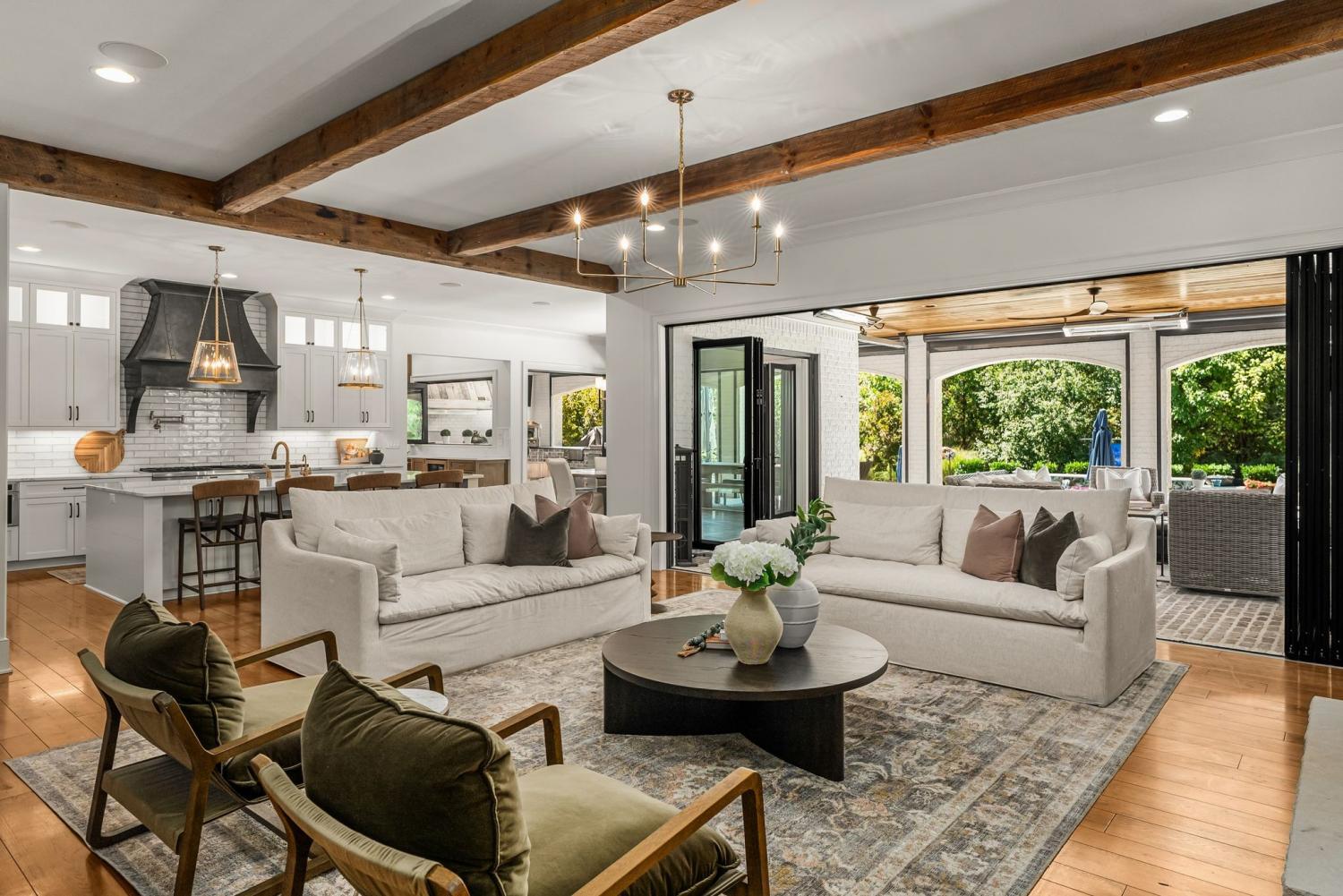 Located in The Grove, one of Middle Tennessee’s most prestigious gated golf communities, this exceptional custom estate spans 1.36 acres and offers more than 7,250 square feet of refined, thoughtfully curated living space. Set along an established, tranquil street with no nearby active construction, the residence provides a sense of privacy and serenity while remaining moments from the community’s world‑class amenities. Every detail of the home has been elevated with a fully automated Control4 smart home system, allowing effortless control of lighting, climate, audio, security, and the expansive indoor–outdoor living areas. The technology is seamlessly integrated, enhancing comfort and convenience without compromising the home’s timeless aesthetic. Designed for both grand entertaining and effortless everyday living, the property features 6 full baths, 2 half baths, a 5‑car garage, two laundry rooms, a spacious bonus room, and a beautifully appointed guest house connected to the main residence by a covered brick walkway. The layout blends elegance with functionality, offering generous room sizes, sophisticated finishes, and exceptional flow throughout. A defining highlight of the estate is its extraordinary 1,500‑square‑foot outdoor living space, crafted as a true extension of the home. The entire back façade opens completely to the outdoors, creating a harmonious connection between interior luxury and the natural surroundings. This expansive area is enhanced with built‑in heaters, power shades, and multiple zones for lounging and dining, allowing year‑round enjoyment. Overlooking the grounds is a resort-style pool, surrounded by thoughtfully designed spaces that invite relaxation, connection, and celebration. The total square footage includes the attached guest house, entered in MLS as the third floor.