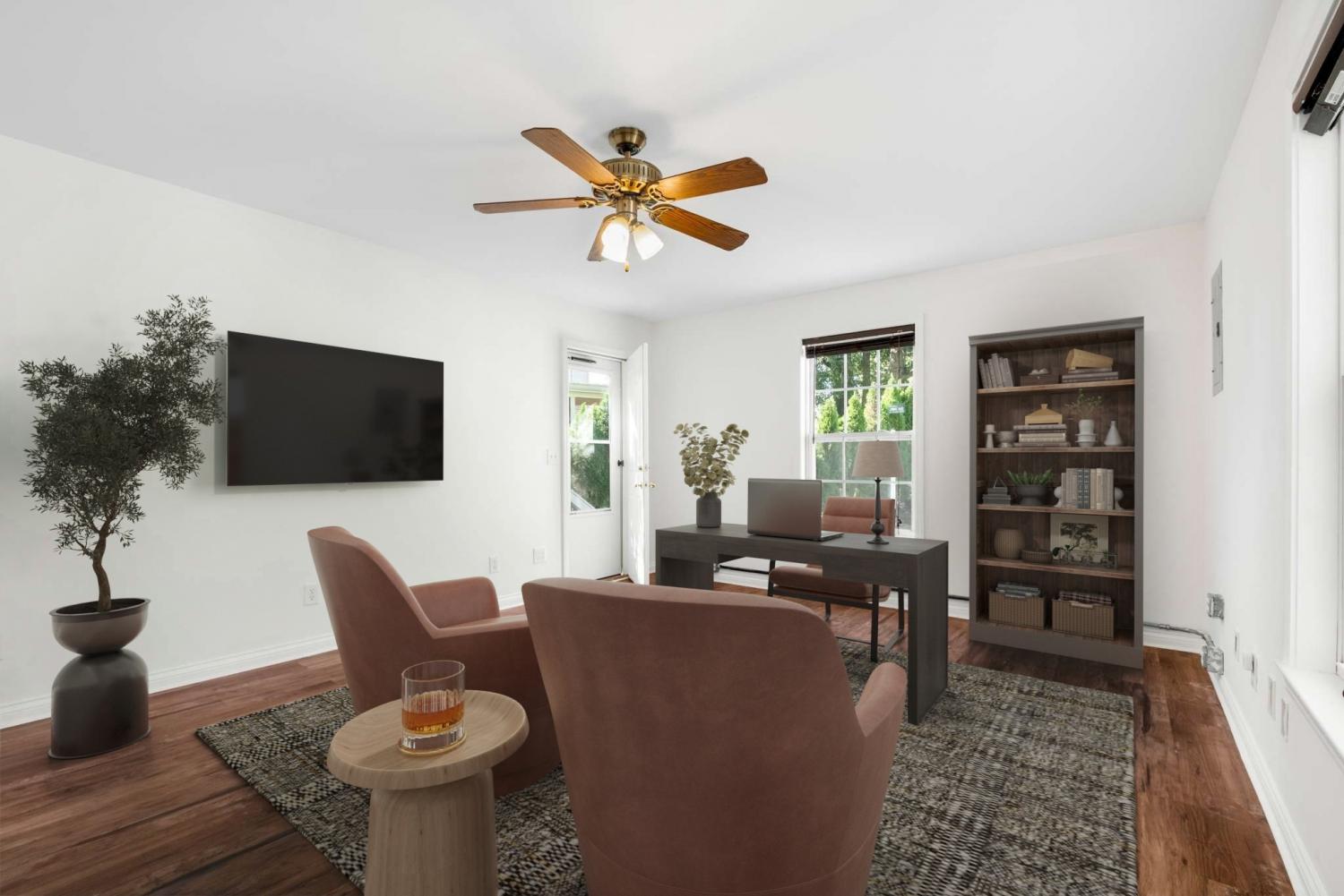 Welcome to this charming ONE-LEVEL HOME located on a QUIET CUL-DE-SAC. Featuring a large, covered front porch, this house offers an ideal floor plan with NEW FLOORING in key areas. The stunning REMODELED KITCHEN is a chef's delight, boasting quartz countertops and stainless-steel appliances. The large living area is perfect for cozy gatherings and features an updated modern fireplace. For more intimate settings, the second living area or den offers VAULTED CEILINGS, French doors, and a wood-burning fireplace. The primary bedroom includes a walk-in closet and an en-suite bath with a separate tub and shower. A DETACHED HEATED AND COOLED STUDIO offers endless possibilities as an office or man cave (221 sq ft of total). The home also includes a LARGE LAUNDRY ROOM WITH SINK, providing both practicality and convenience. Outdoors, you'll find TWO PRIVATE DECKS on the 1.04-ACRE LOT. The shaded backyard invites adventures with its enchanting woods, and the fenced area is ideal for your canine friends. Additional features include a two-car garage and a storage barn. Conveniently located near Saturn Parkway and the new Publix, this home is zoned for the top-rated Battle Creek Elementary school. Experience TRANQUILITY and CONVENIENCE all in one place!