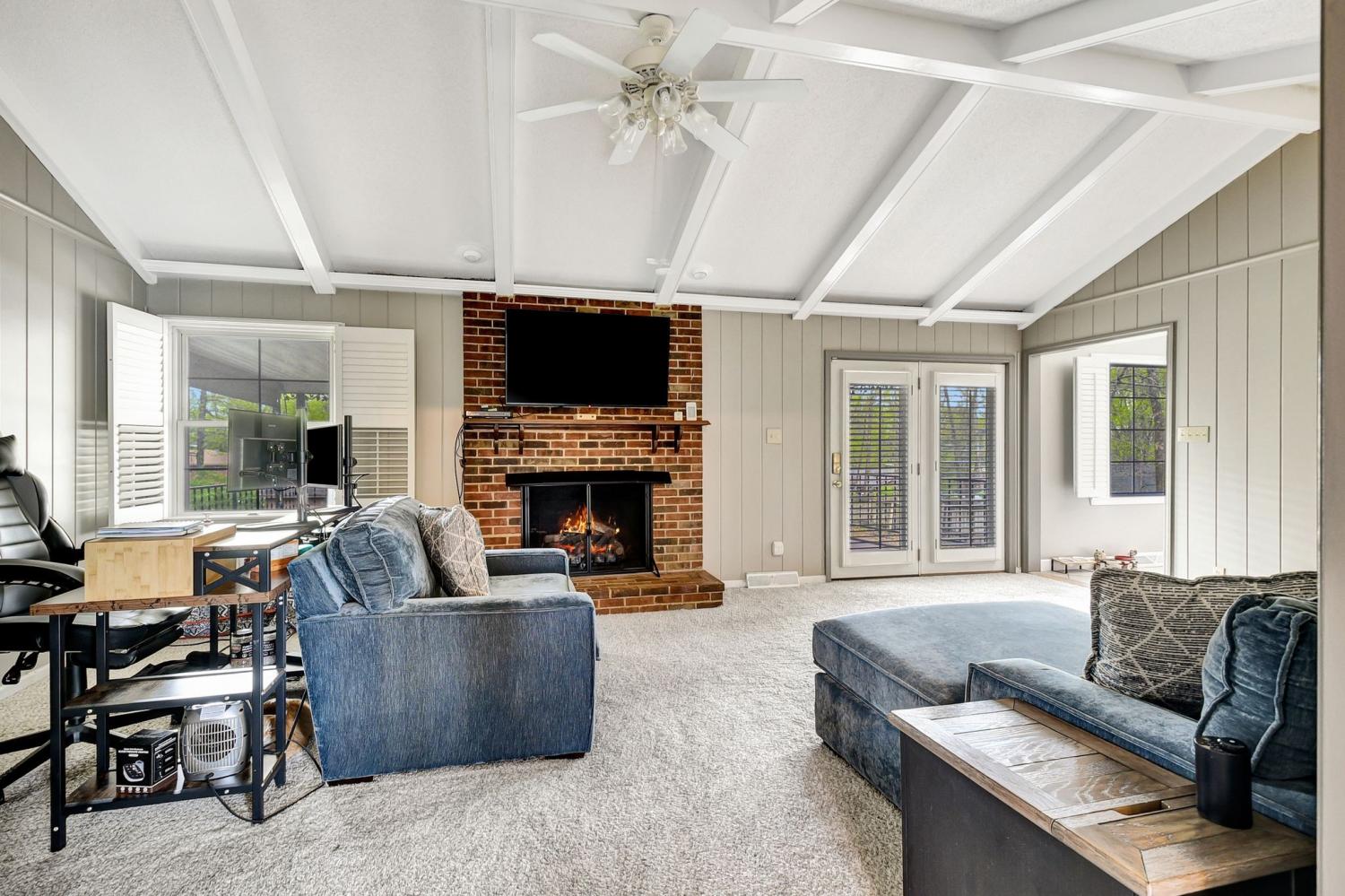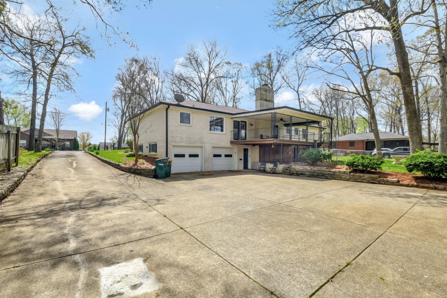 Step inside this classic all brick ranch style home offering generously sized rooms and a layout designed for everyday living and entertaining. The eat-in kitchen features freshly painted cabinets, tile backsplash, recessed lighting, and a breakfast bar—creating a warm, inviting gathering space. A formal living room with an electric fireplace provides a cozy retreat, while the separate den offers high ceilings and its own gas fireplace. Hardwood and tile flooring run throughout the main level, with the den featuring alternate flooring. The full basement greatly expands the livable space and includes an oak staircase, private entrance, bedroom, full bathroom, and a third fireplace—ideal for guests, in-laws, or potential rental income. The basement is also stubbed for a kitchenette, offering flexibility for future use. Recent updates include a new roof (Aug. 2024), gutters and gutter guards replaced less than two years ago, energy-efficient front and back doors, new electrical panel, foundation repair with full warranty, LVP flooring in approximately 90% of the basement, and new garage doors. Additional features include a built-in home intercom and radio system, a transferable home warranty, a 14x15 covered back deck perfect for outdoor entertaining, a 2-car basement garage, a 2-car detached carport, and a storage building with electricity. Conveniently located just 4 miles to I-40 and 21 miles to BNA, with easy access to schools, grocery stores, restaurants, and more. The current owner has completed many major renovation items, offering peace of mind while leaving room for the next owner to add personal finishing touches.