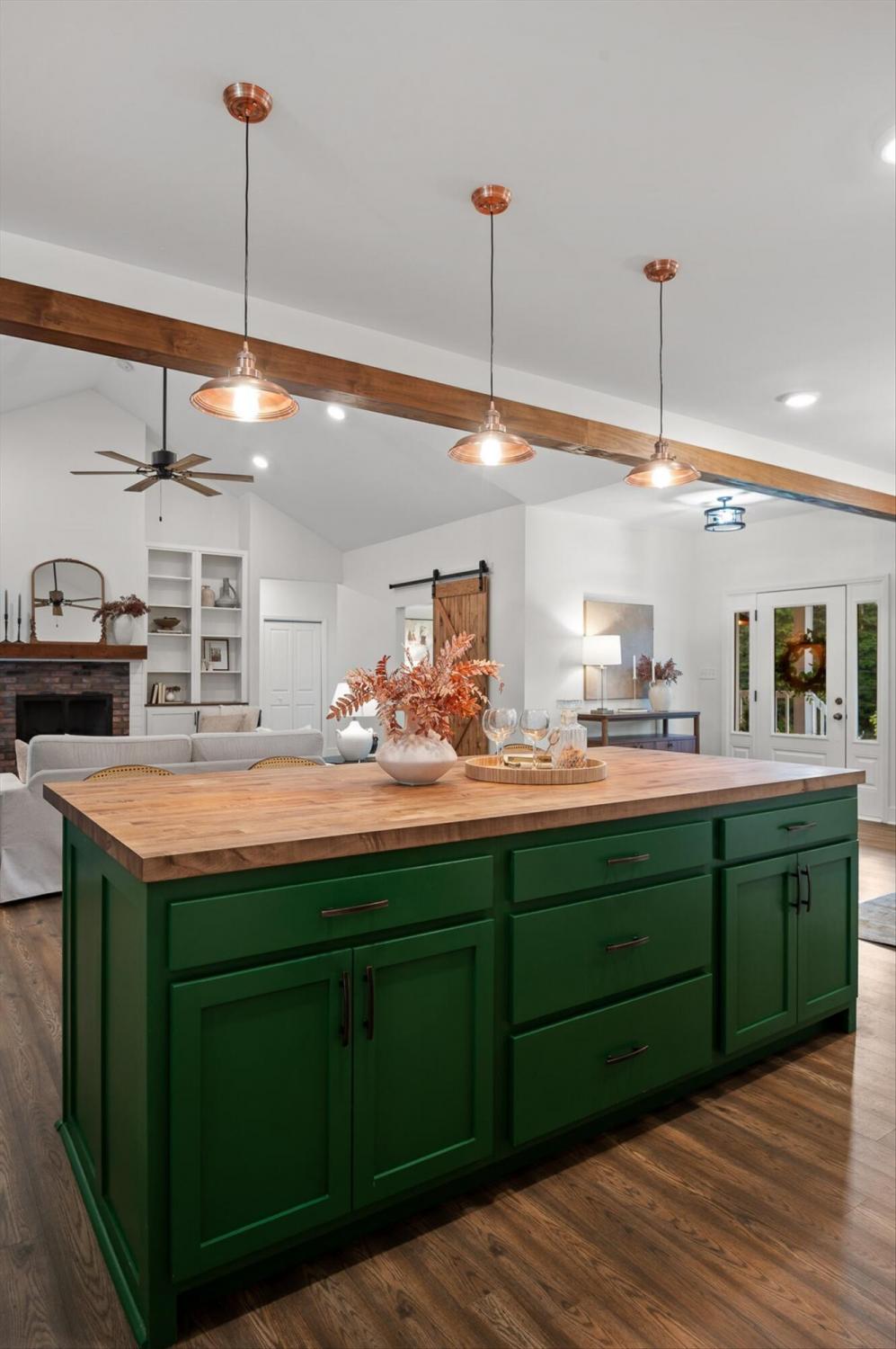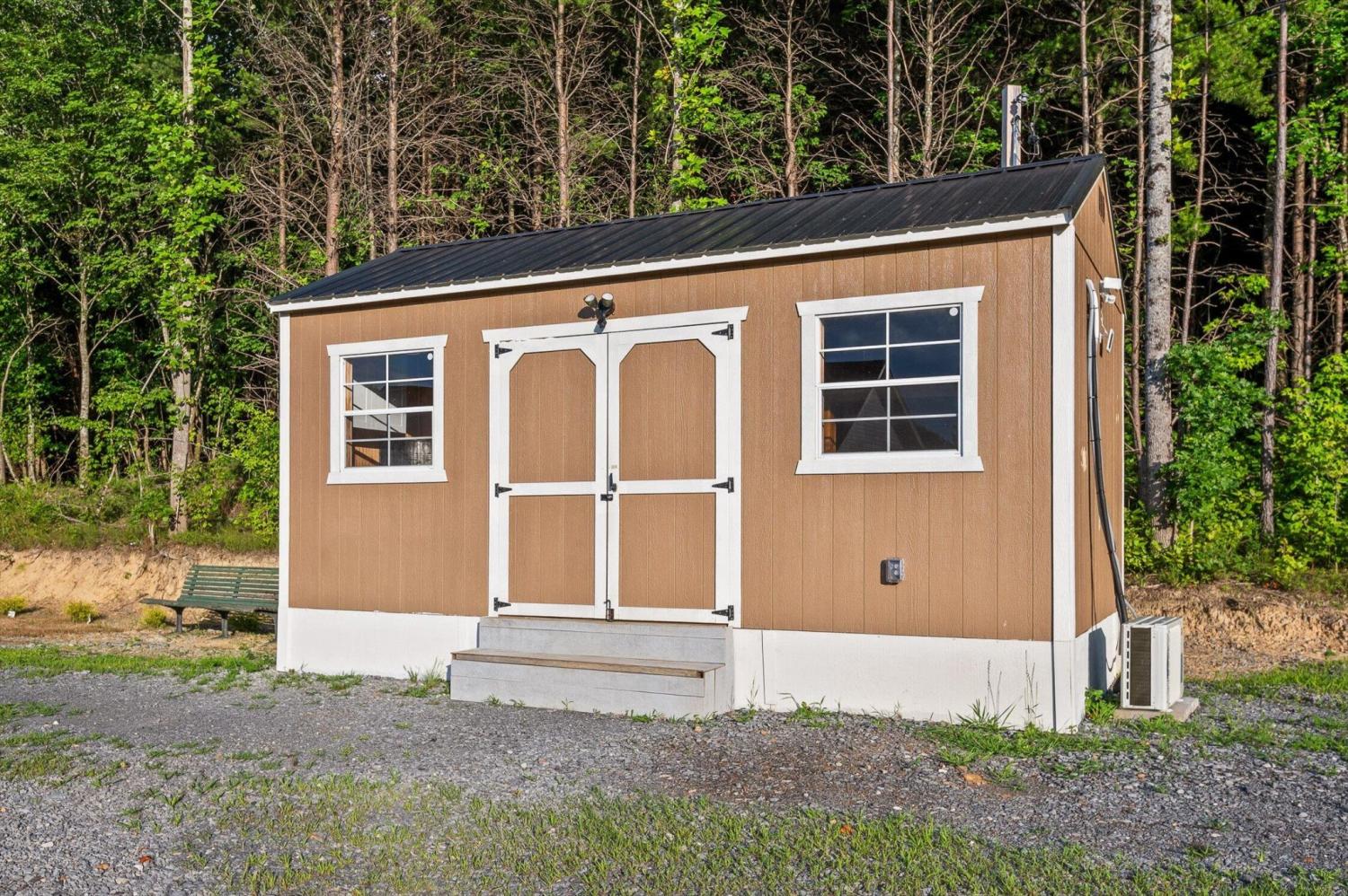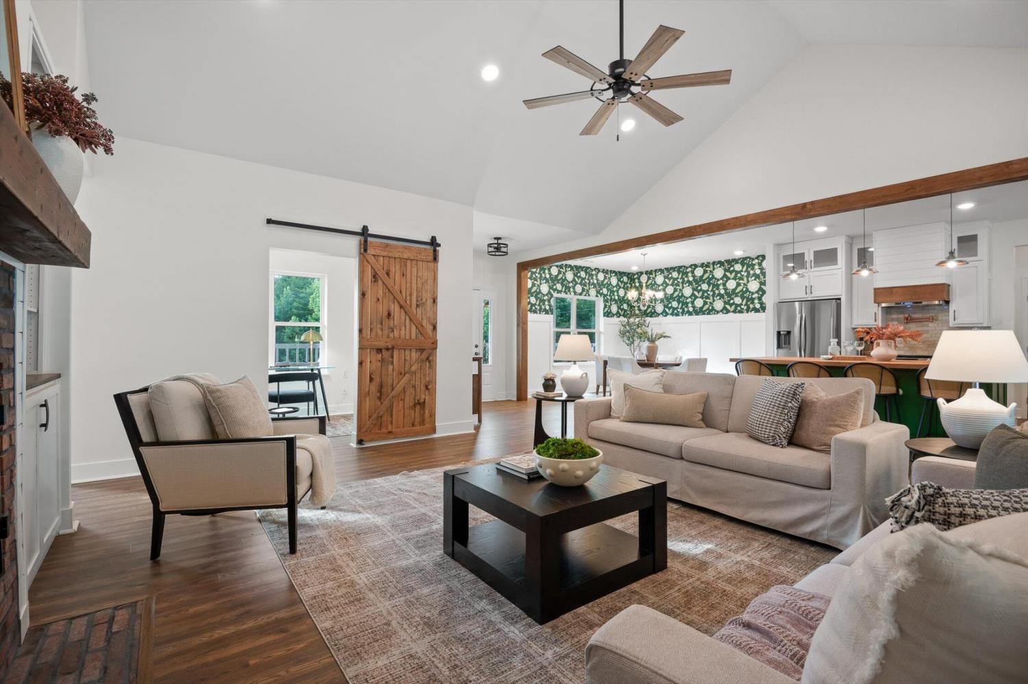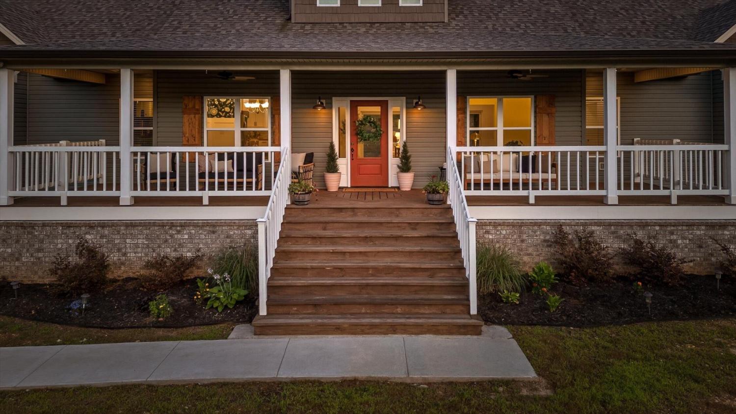 Privately positioned on just under four gently rolling, usable acres, this thoughtfully built custom home offers space, flexibility, and true freedom from HOA restrictions. The setting feels removed yet remains convenient to both Dunlap and Chattanooga, striking a rare balance between breathing room and accessibility. Nearly 3,000 square feet are arranged primarily on the main level, creating a layout well suited for both everyday living and long-term plans. Designed with intention, the split-bedroom floor plan allows privacy across multiple wings of the home. Two full primary suites sit on opposite sides, each featuring gas fireplaces, walk-in closets, and well-appointed ensuite baths with zero-curb tile showers for comfort and accessibility. A third main-level bedroom is located near a full hall bath, along with a separate half bath for guests. Upstairs, a private fourth bedroom with its own ensuite bath offers ideal separation for visitors, a home office, or live-in support without disrupting the main living areas. The heart of the home features vaulted ceilings, abundant natural light, and an open-concept living space anchored by a well-designed kitchen with farmhouse sink, gas range with pot filler, custom vent hood, and a large island with seating. The kitchen flows seamlessly into the dining and living areas, framed by expansive windows overlooking the backyard. Just outside, a covered patio with gas grill line extends the living space and was intentionally planned with future courtyard or pool potential. Outdoors, approximately two acres are cleared and usable, complemented by additional wooded acreage for privacy. The wraparound front porch creates a welcoming approach, while the encapsulated crawl space adds peace of mind. An oversized two-car garage supports daily needs, and a 550+ sq ft metal outbuilding with roll-up and man door access provides excellent space for hobbies, equipment, or workshop use.