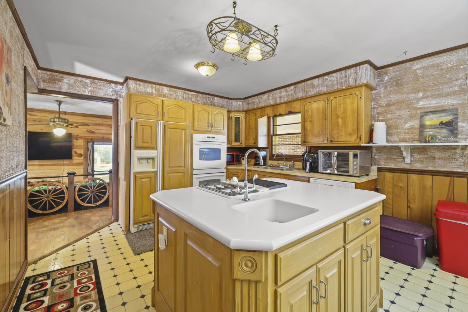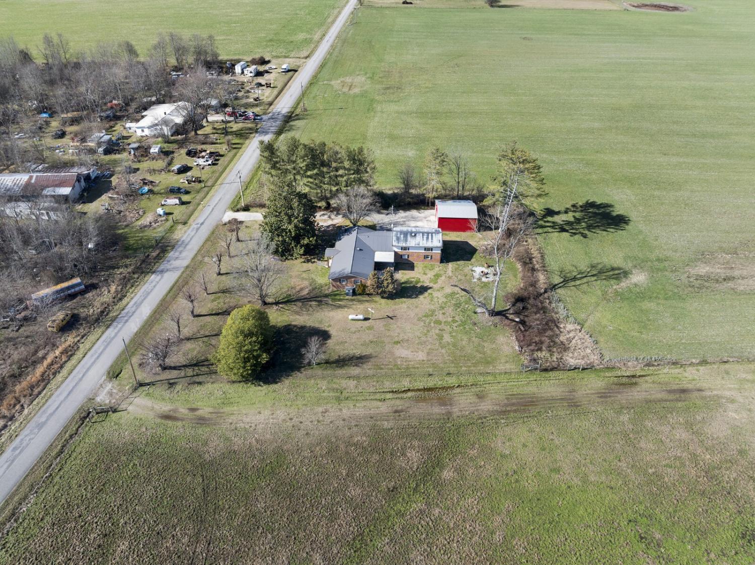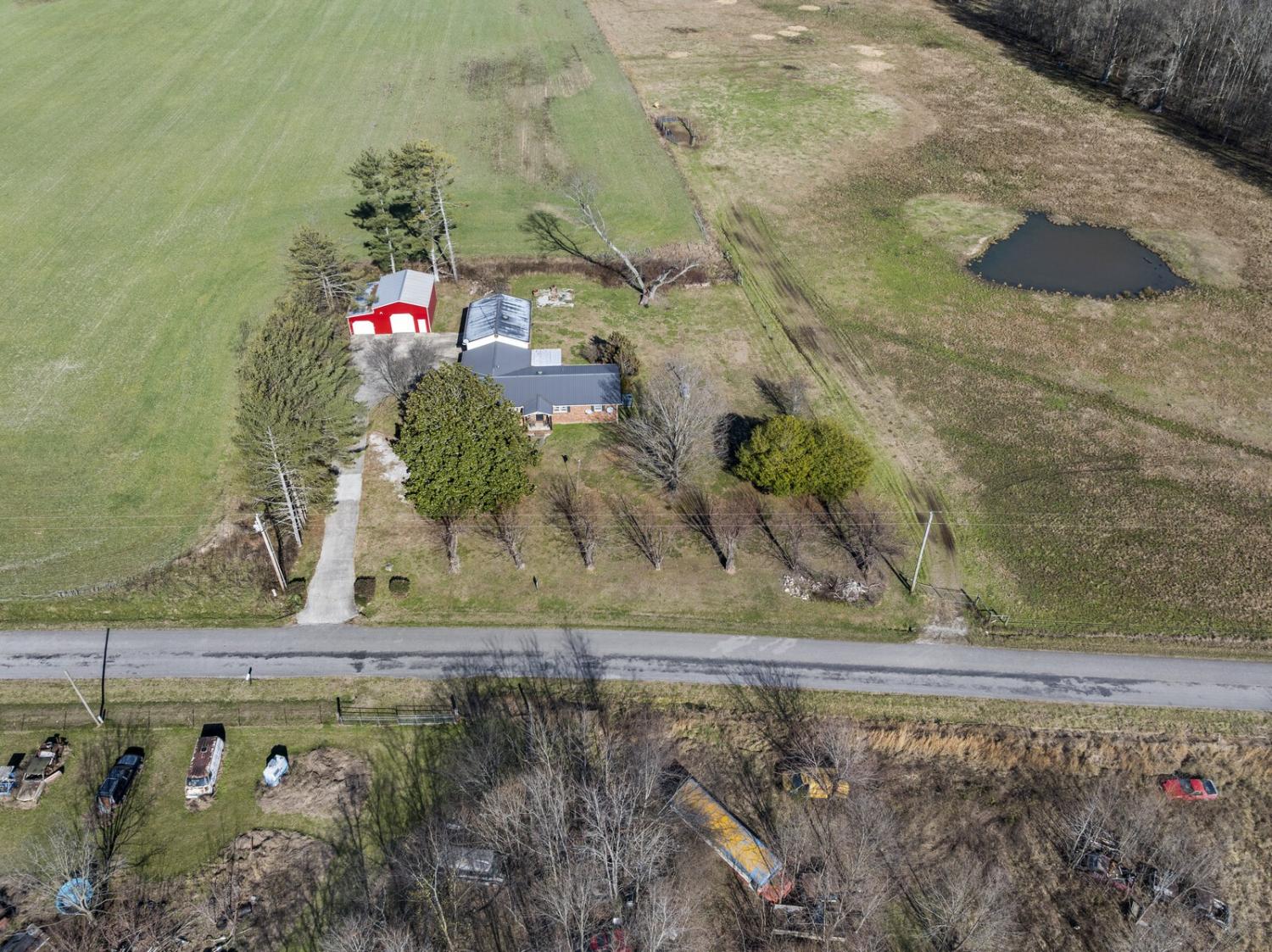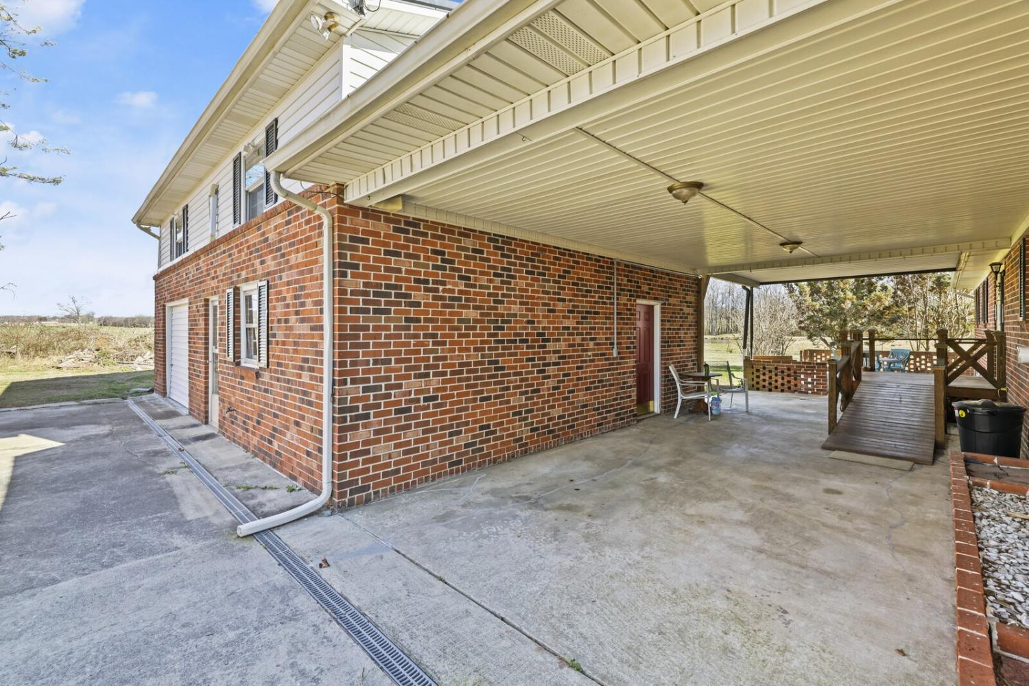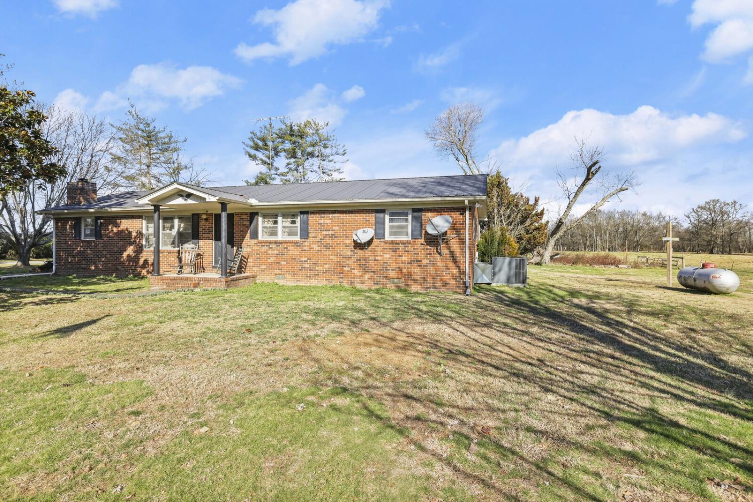 Up to 1% lender credit on the loan amount when buyer uses Seller's Preferred Lender. Set on a picturesque 1-acre lot, this unique property offers space, versatility, and classic country charm with multiple structures to fit a variety of needs. The main brick home features approximately 1,600 square feet with 3 bedrooms and 1 bathroom, highlighted by a cozy corner brick fireplace in the living room and a sunken den/family room that adds character and warmth. The kitchen offers a functional layout with an island, generous cabinet space, and an eat-in dining area, ready for modern updates to make it your own. A covered breezeway connects the main home to a detached in-law suite/apartment, creating seamless yet private living options. This additional living space spans roughly 1,000 square feet and includes 2 bedrooms, 1 full bathroom, a full kitchen, and its own laundry, making it ideal for extended family, guests, or potential rental use. Below the apartment is a full garage, adding even more utility and storage. Completing the property is a substantial 30x40 barn/workshop, perfect for hobbies, equipment, or business use, along with ample driveway space to accommodate multiple vehicles, trailers, or recreational toys. With its solid brick construction, flexible layout, and peaceful country setting, this property offers a rare opportunity to enjoy space, functionality, and charm—all in one.
