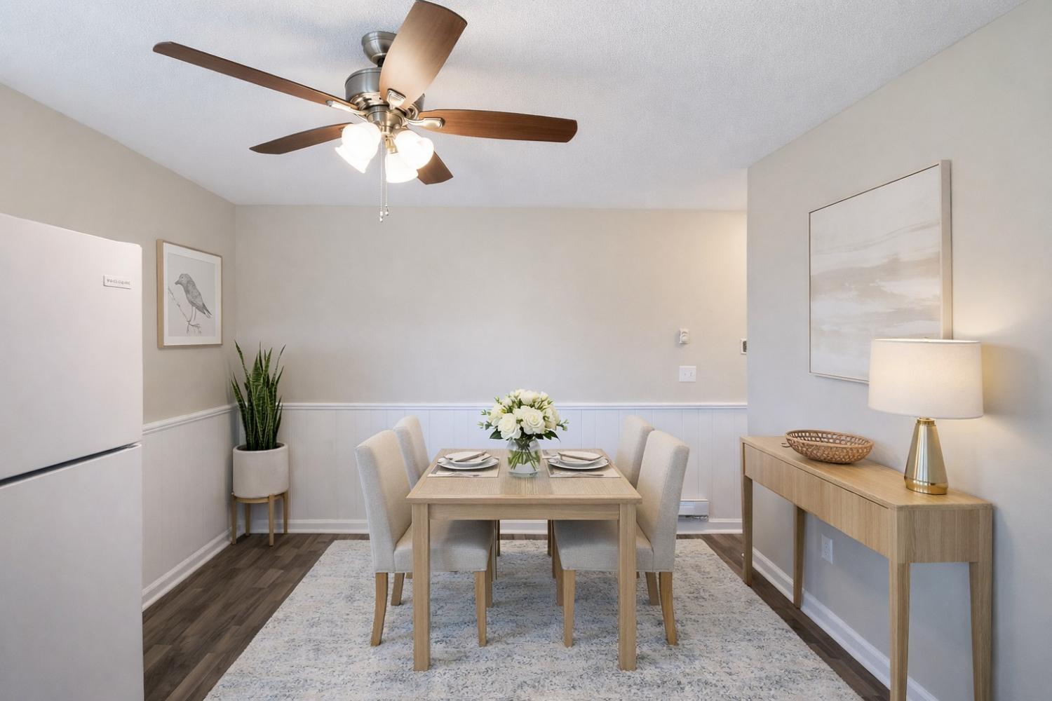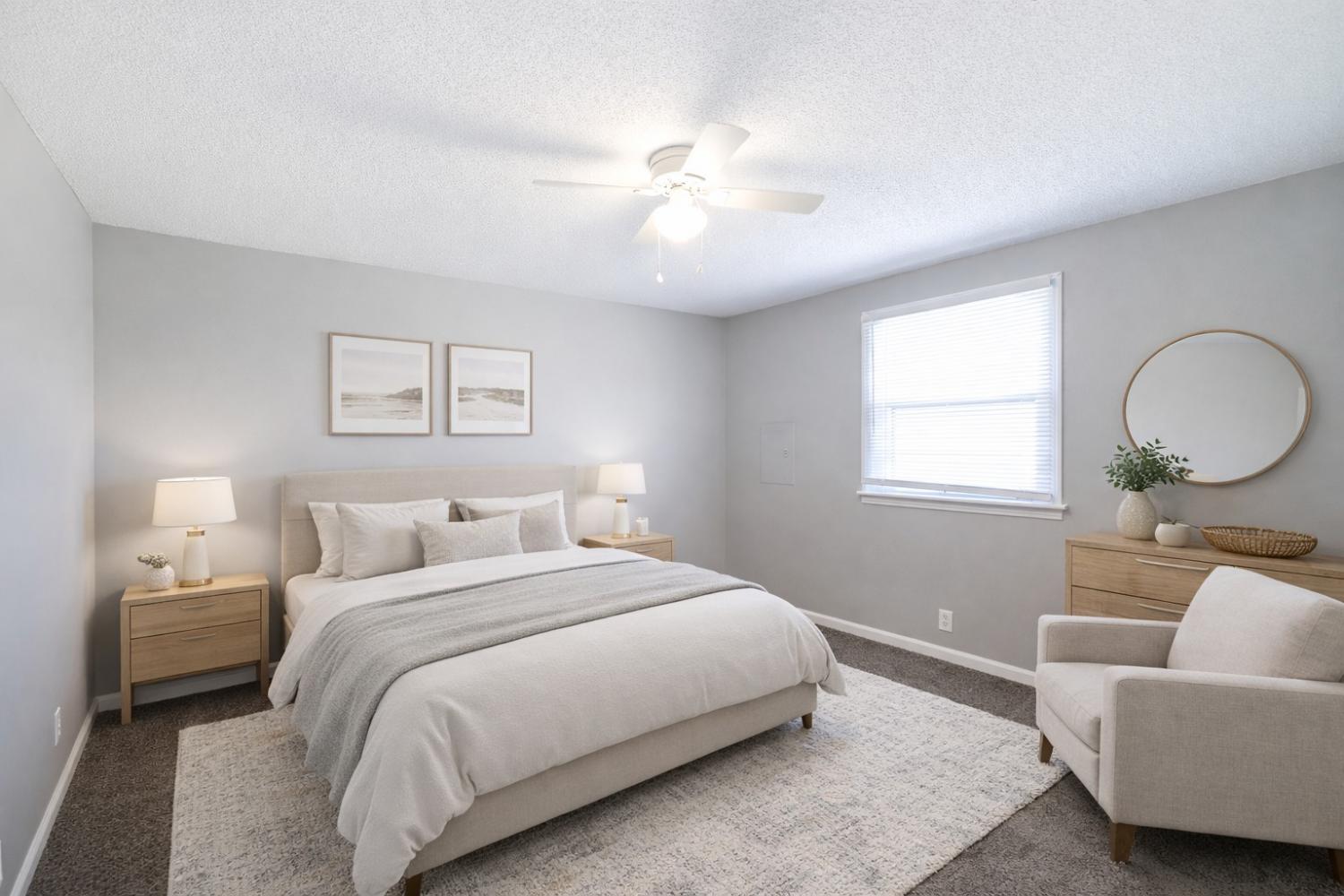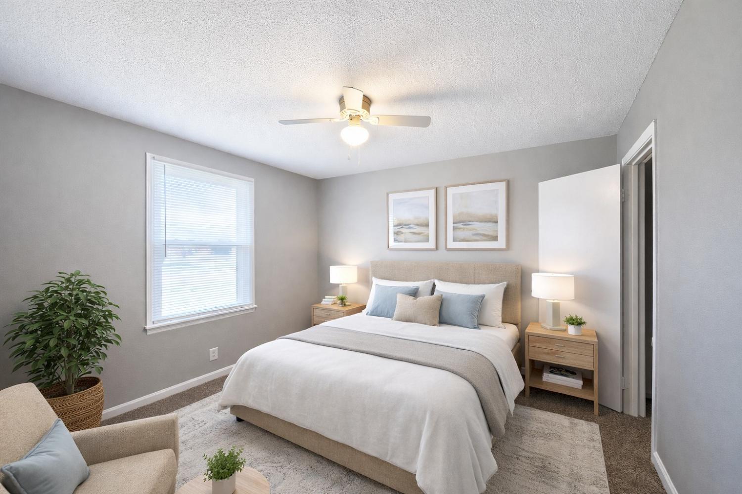 1/2 OFF Move-In SPECIAL!!!! Welcome to our 2 Bed 1 Bath apartment located in the vibrant city of Clarksville, TN. This spacious apartment offers two bedrooms and one bathroom, providing ample space for your need. The apartment features an inviting eat-in kitchen, perfect for enjoying meals. Stay comfortable year-round with ceiling fans that provide a refreshing breeze during warmer months. The common areas boast vinyl plank flooring, adding a touch of elegance to your living space, while the plush carpet in the bedrooms offers a cozy retreat. Step back in time with the retro bathroom, adding a unique charm to your daily routine. For your convenience, washer and dryer hook-ups are available, making laundry a breeze. Step outside onto your patio and enjoy the fresh air and sunshine. We understand that pets are part of the family, which is why our apartment is pet-friendly, allowing you to bring your furry companions along. Located in Clarksville, TN, you'll have easy access to a variety of shopping, dining, and entertainment options. Don't miss out on this fantastic opportunity to make this apartment your new home. Contact us today to schedule a tour and experience the comfort and convenience this apartment has to offer. Photos are virtually staged.