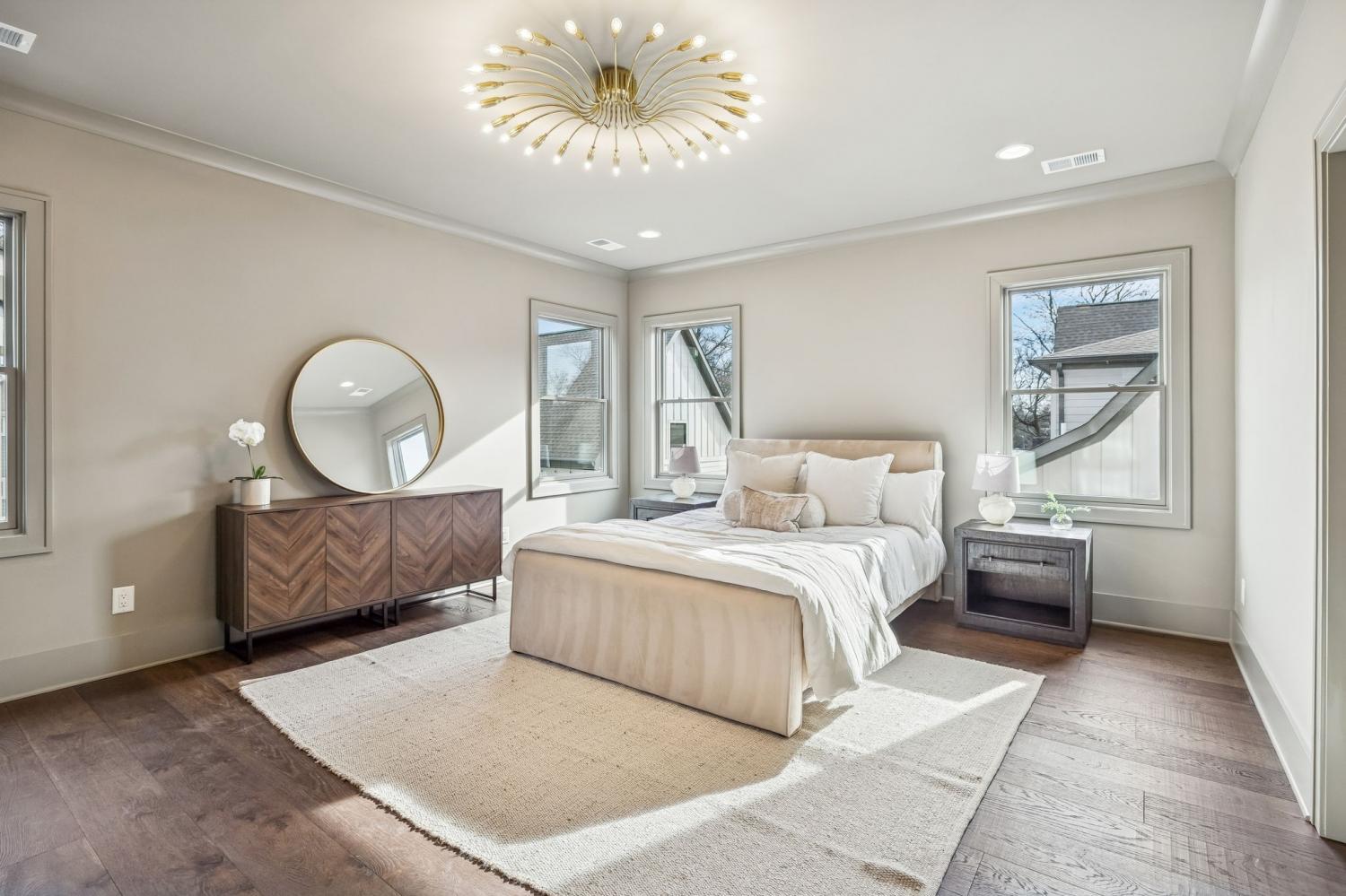 This is your chance to own a finely curated home designed by Studio 36 & built by PC Custom Builders. Move in ready in Sylvan Park, this stunning new construction offers a true custom experience. The 3-level home seamlessly blends luxury & functionality, featuring an impressive stone & siding exterior with charming gas lanterns. The main floor boasts an elegant kitchen with a scullery, a dining area, a cozy living room, & a versatile keeping rm, along with a conveniently located guest room. Upstairs, the serene primary suite is designed for ultimate relaxation, complemented by a retreat area perfect for unwinding. The third level includes a spacious bonus room ideal for entertainment or play and an additional bedroom perfect for guests. Outside, the covered front porch invites you to enjoy the neighborhood ambiance, while the rear features a covered patio. An attached 3-car garage includes an EV charger. 1 bedroom on 2nd floor is above the garage perfect for apartment or au pair suite with washer/dryer hook up.