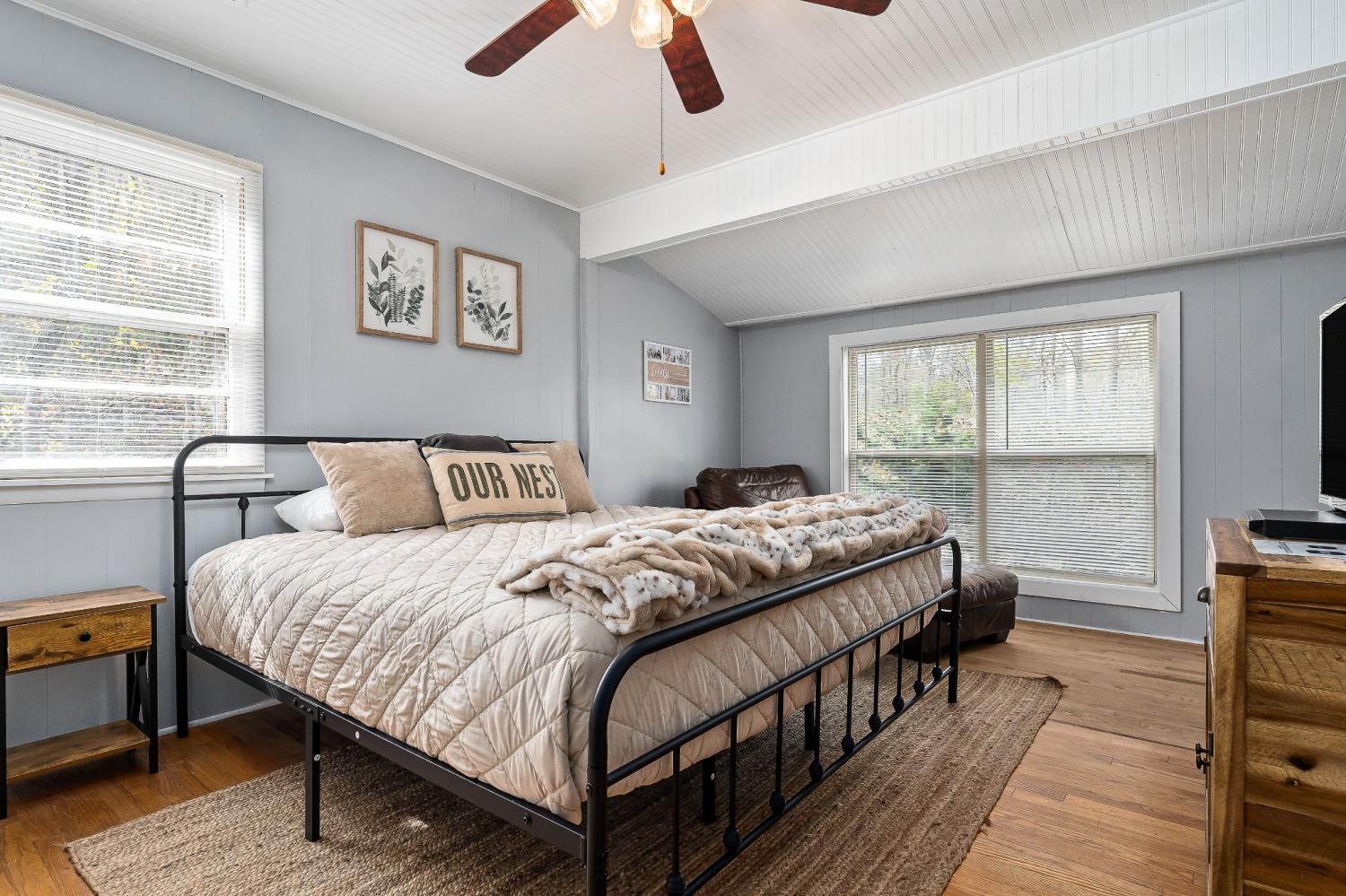 Escape to Center Hill in this charming fully furnished turn-key cottage located just 1 mile from the Holmes Creek boat ramp. This beautifully updated cottage is short-term rental permissible, offering a turn-key investment opportunity or a peaceful personal getaway. Nestled among the trees, this cozy yet spacious home boasts a large covered back deck, ideal for relaxing, entertaining, or soaking in the tranquil surroundings. The inviting covered front porch is perfect for sipping your morning coffee while enjoying the serenity of nature. Inside, you'll find all of the comforts of home, while the garage parking in the basement provides convenient storage for boats, gear, and more. Whether you're looking for an investment property or a private escape near Center Hill Lake, this cottage is a rare find that blends modern updates with rustic charm. Convenient to historic downtown Smithville and Hidden Harbor Marina.