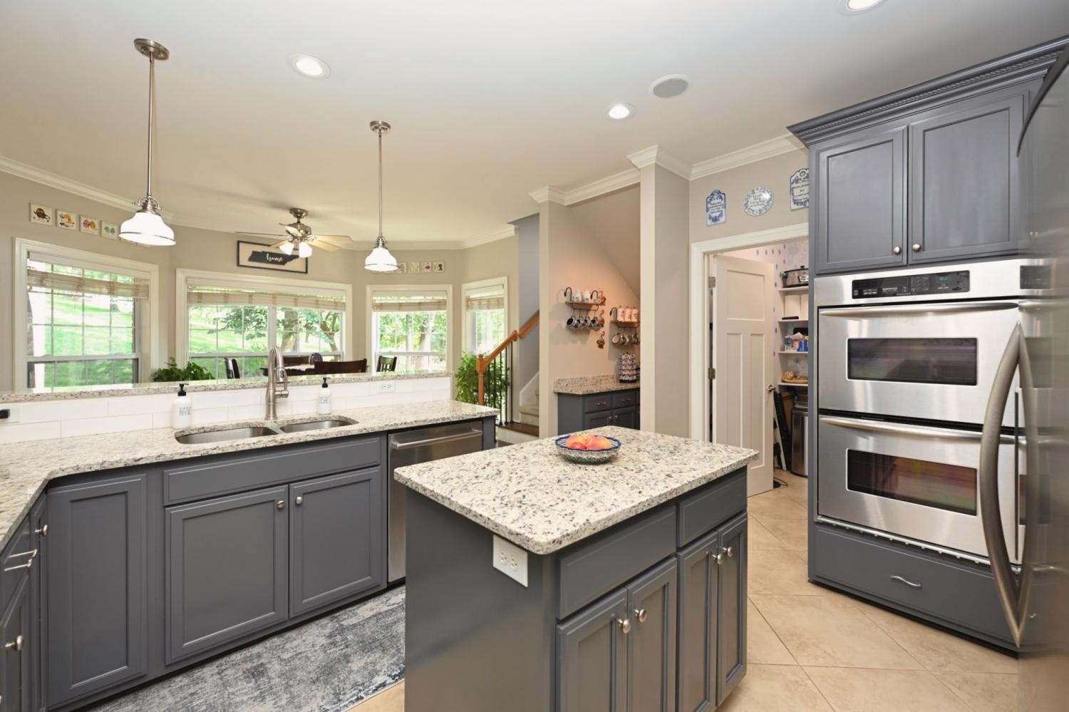 Updated home that backs up to Country Hills Golf Course featuring 3 BR/3.5BA with primary suite on main level. The over-sized primary suite features room for a sitting area, bath with separate soaking tub/shower as well as 2 closets with built-ins. There's a beautiful gourmet kitchen with stainless appliances, gas cooktop, double ovens, oversized pantry and separate coffee bar. The main floor contains a great room with gas fireplace, built-in speakers, and built-in cabinet. There’s also a formal dining room, separate office with built-ins, as well as a mudroom off the garage. The oversized utility room has tons of cabinets along with laundry hookups. Upstairs you'll find 2 guest bedrooms and baths, a loft, and oversized bonus room which could be used as a 4th bedroom. There's a lovely screened-in porch off the primary BR and kitchen area. Oversized garage with rubber floor. There's no shortage of storage in this home.