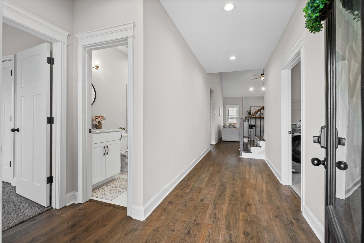 This beautiful home offers a private in-ground pool and a layout designed for comfort and entertaining. The main level features a bright foyer with soaring ceilings, a guest bedroom with full bath that could double as a home office, and a functional mudroom/laundry area with added storage. The open-concept living space centers around a shiplap gas fireplace and flows into a chef-inspired kitchen with granite countertops, stainless steel appliances, soft-close cabinetry, under-cabinet lighting, tile backsplash, and a large island with bar seating. The carpet-free primary suite on the main level showcases a tray ceiling and a spa-like bath with double vanities, soaking tub, and floor to ceiling tiled shower with rain head. Upstairs includes two spacious bedrooms, a large bonus room, and a full bath. Enjoy outdoor living on the covered back deck overlooking the fenced backyard and pool. Yard extends past the pool on the left side of the home, giving the option to fence in a dog run or play area. Washer and dryer, and all kitchen appliances are included, making this home truly turn key. Conveniently located minutes from I-24 in the heart of Sango, just minutes from shops and restaurants on 41A and Madison St, including Thirsty Goat, Golly's Gees, Miss Lucille's and so much more. The community also offers sidewalks for strolling and a clubhouse with workout center and pool. You do not want to miss this opportunity! Make this one yours today.