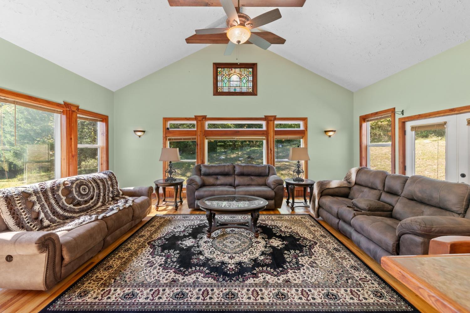 Welcome home to 2214 Happy Hill Road. Amazing 3 bedroom 2 1/2 bath home overlooking beautiful Tennessee hills. Oak flooring, Cherry trim - hand milled, stone fireplace with wood stove, vaulted ceilings, unique tiled area over gas range, tiled counter top in kitchen with extra bar sink and convenient pull-out drawers. Pella windows. Extra large tiled shower in main bath. Designer tiled entrance. Sink in laundry room with cabinets. Covered front porch, 2 car garage with side entry plus 2 car carport. Home framed with 2x6 studs.