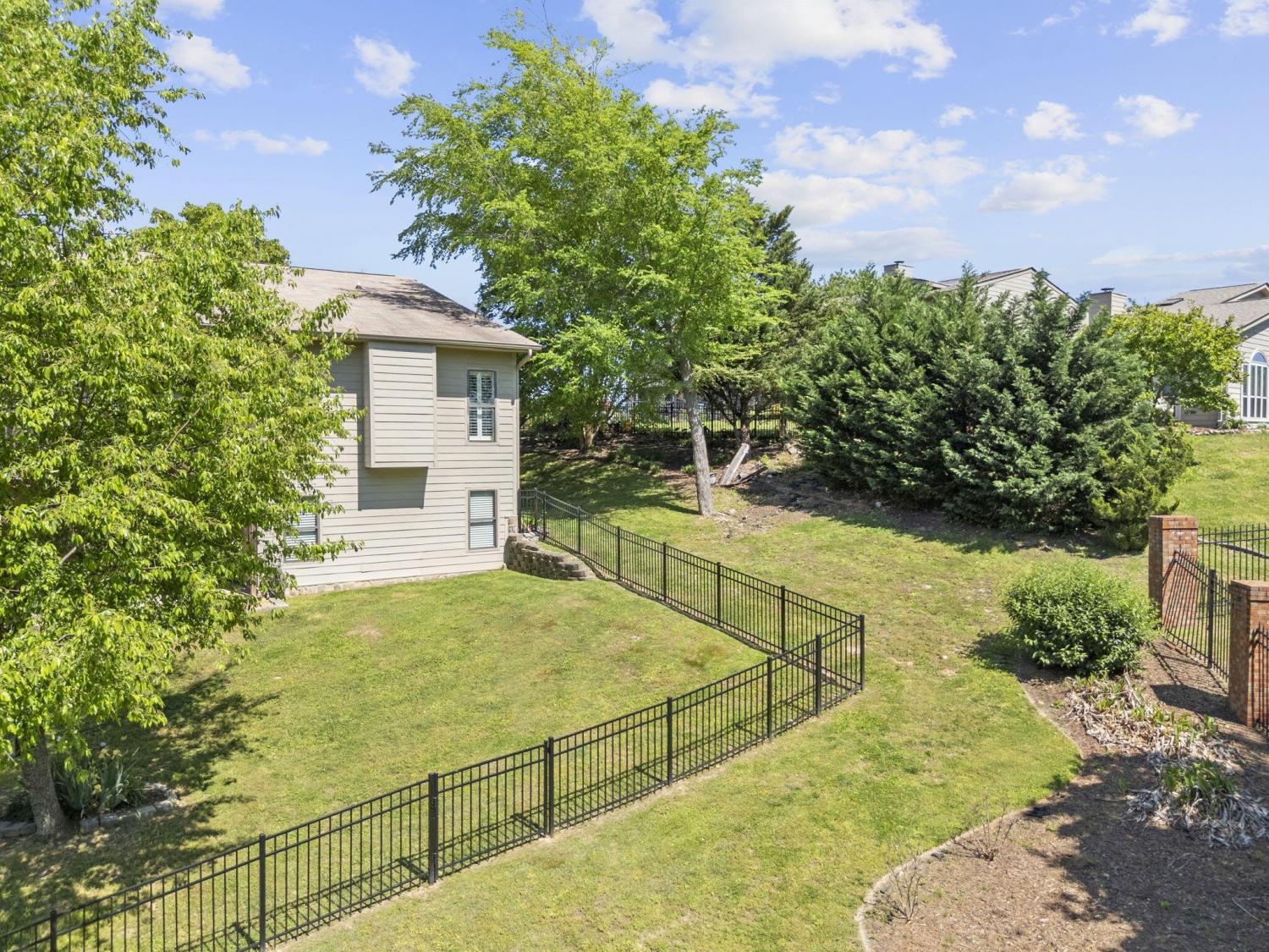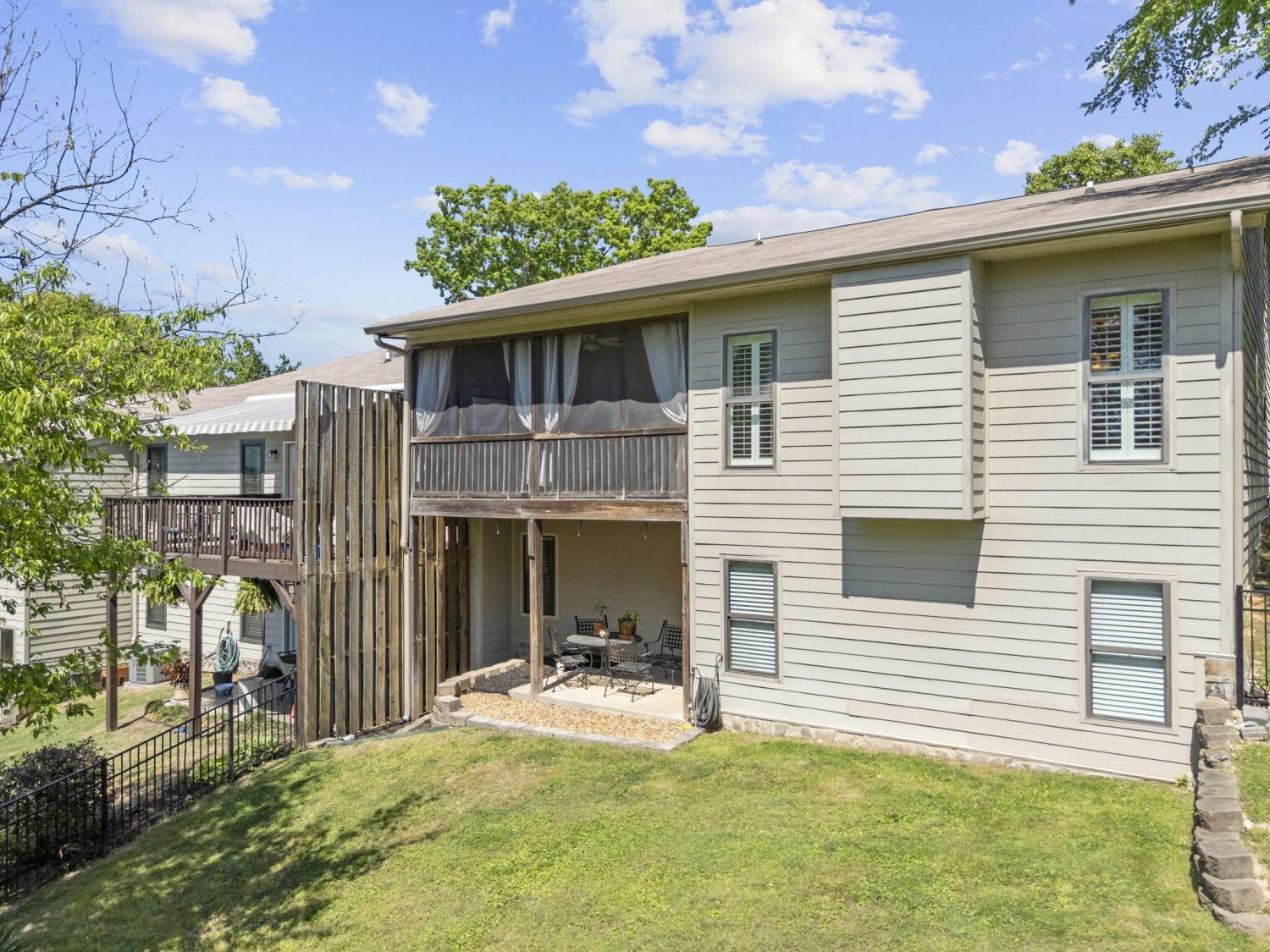 Discover a truly unique end-unit townhome in the scenic Eagle Bluff community. Boasting 2,421 sq. ft. of finished living space PLUS a 602 sq. ft. unfinished walk-out basement. Freshly updated with new paint and carpet, 7001 Sawgrass Court is move-in ready, offering both luxury and untapped potential. Inside, diagonal hardwood floors lead you through an open-concept dining and great room. Vaulted ceilings and expansive windows flood the home with natural light and frame stunning views of the surrounding mountains. The gourmet kitchen features handsome cabinetry, quartz countertops, and stainless appliances—perfect for entertaining. The main level offers two private, split-layout bedrooms, including a primary suite with a tray ceiling and an en-suite bath featuring a double vanity and oversized tiled shower. Enjoy the outdoors from the screened porch or the private lower-level patio overlooking a fenced backyard with lush landscaping and a mature fig tree. Complete with a spacious downstairs den and low county taxes, this maintenance-free home is a rare find.