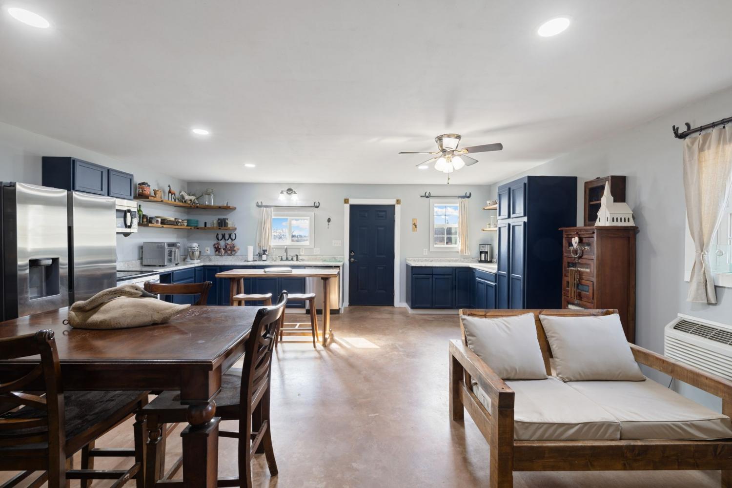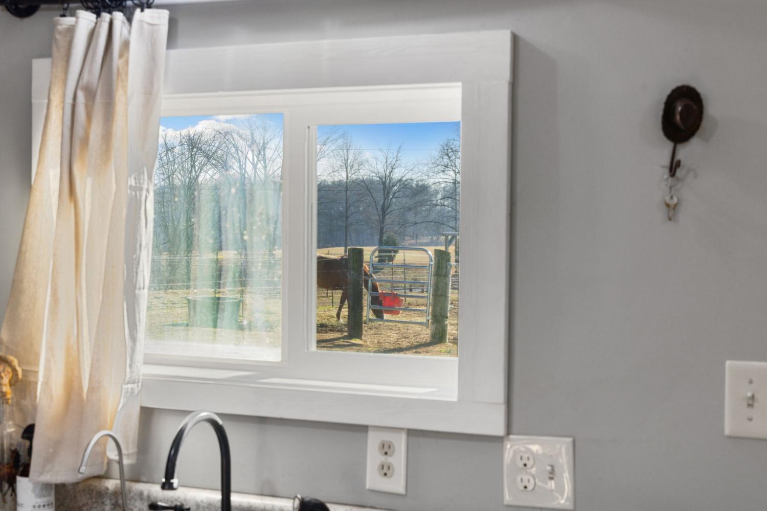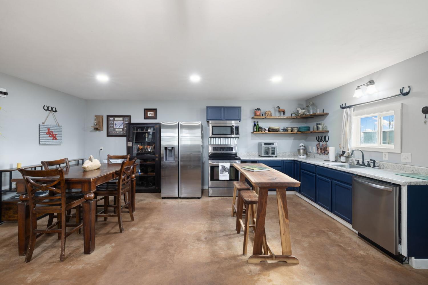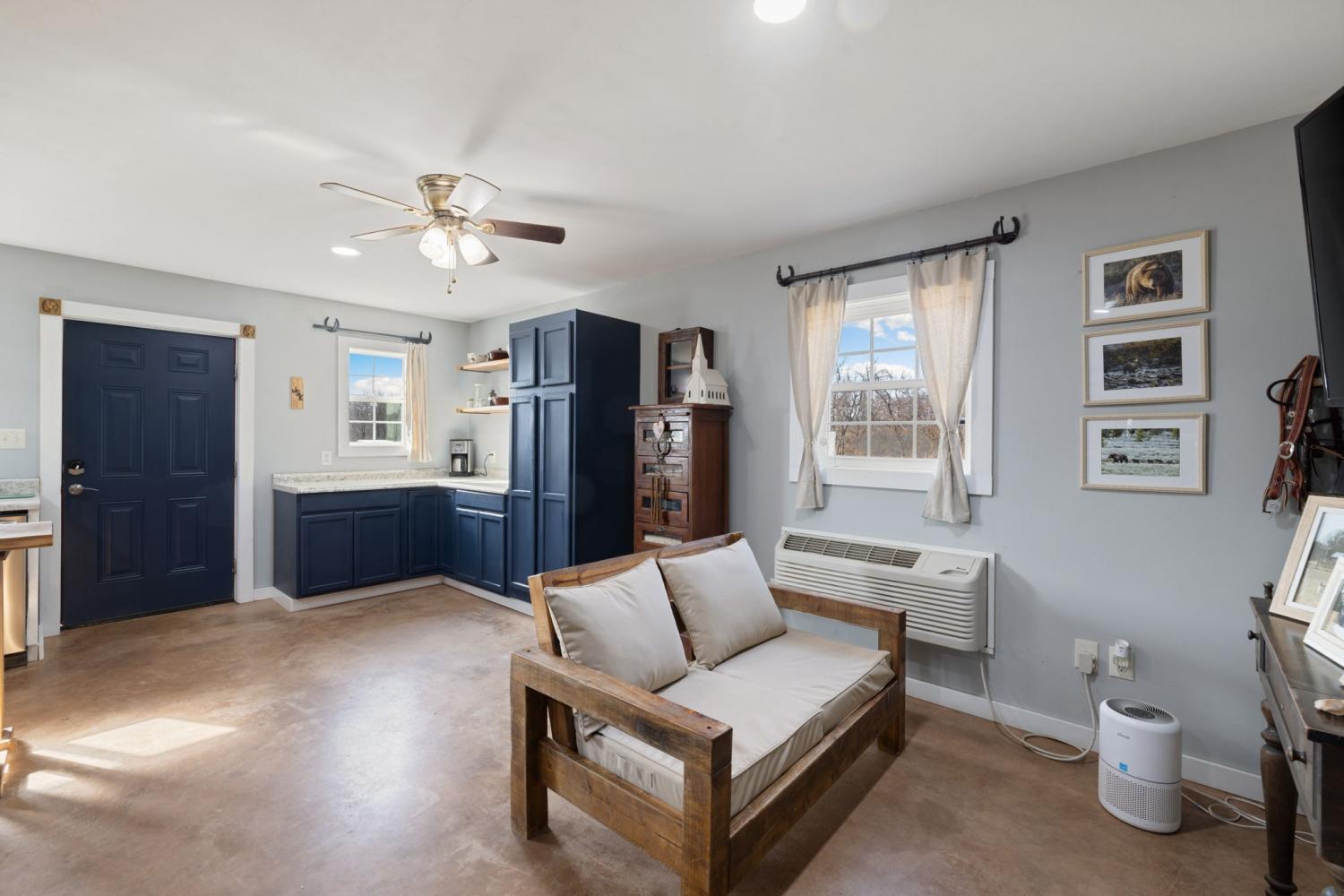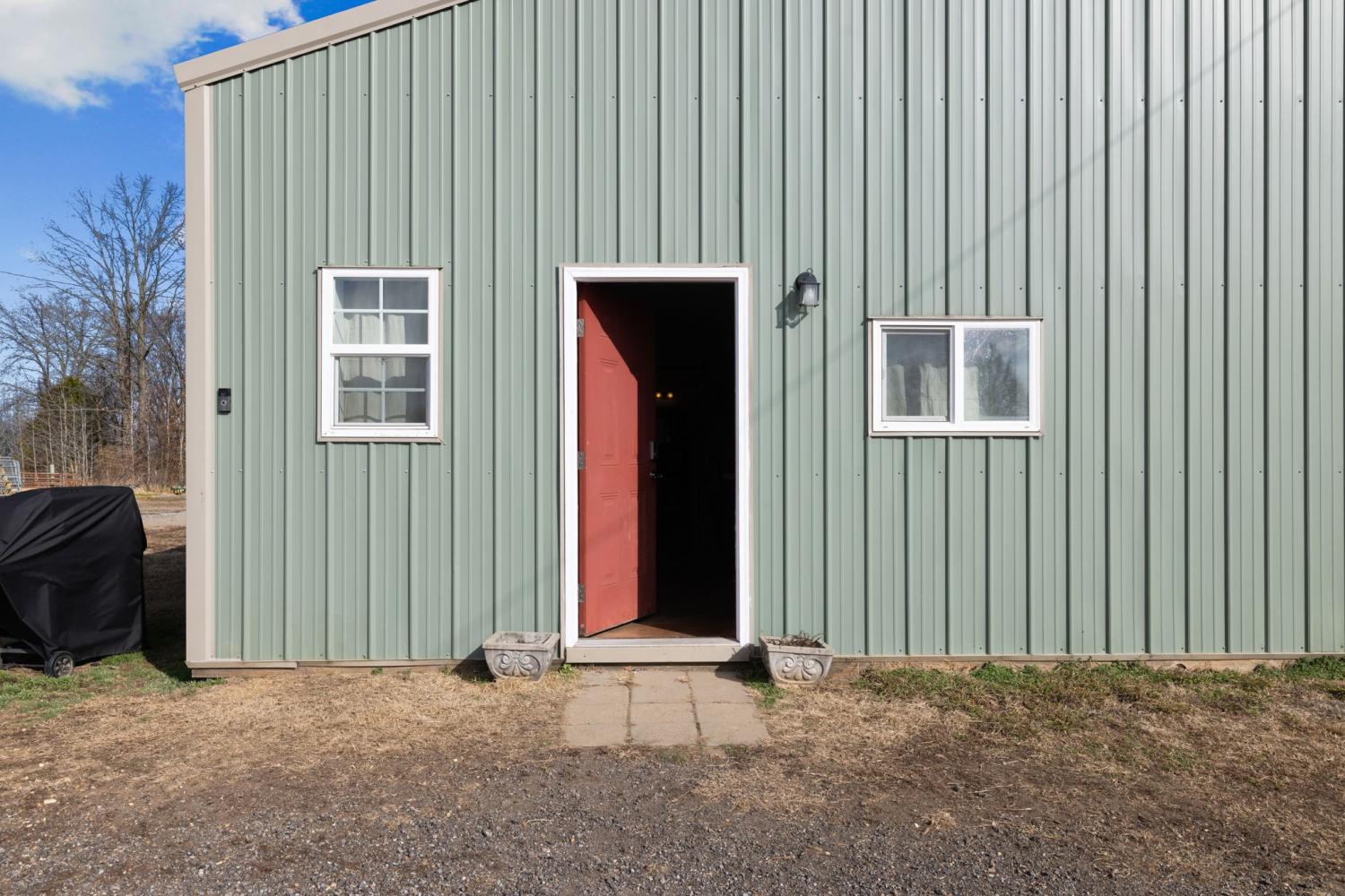 Turnkey 46-acre horse farm offering a complete, well-designed training facility. Improvements include a 60x80 covered arena with lights, sand footing, and two 20-ft side sheds, plus a separate outdoor arena. Eight total stalls—4 located off the covered arena and 4 inside the main barn, including three oversized 14x14 stalls ideal for foaling or studs and one 8x10 stall. Custom Armour Horse Stalls fronts with automatic watering system utilizing PEX piping, along with a dedicated feed room and tack room. Additional features include a six-horse walker, 30x50 hay barn, six run-in sheds, and frost-free hydrants to each pasture. Multiple fenced pastures provide excellent turnout. Attached to the barn is a comfortable barndominium with 1 bedroom, 1.5 baths, full kitchen, and laundry. New water well system installed in 2024. Ample room for future stall expansion within the covered arena, plus a separate potential building site already equipped with septic, water, and electric. Gated entrance. Move-in ready and built for year-round equestrian use.
