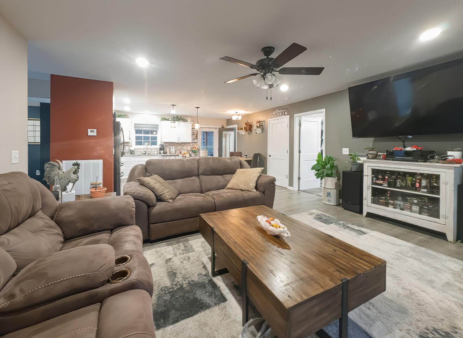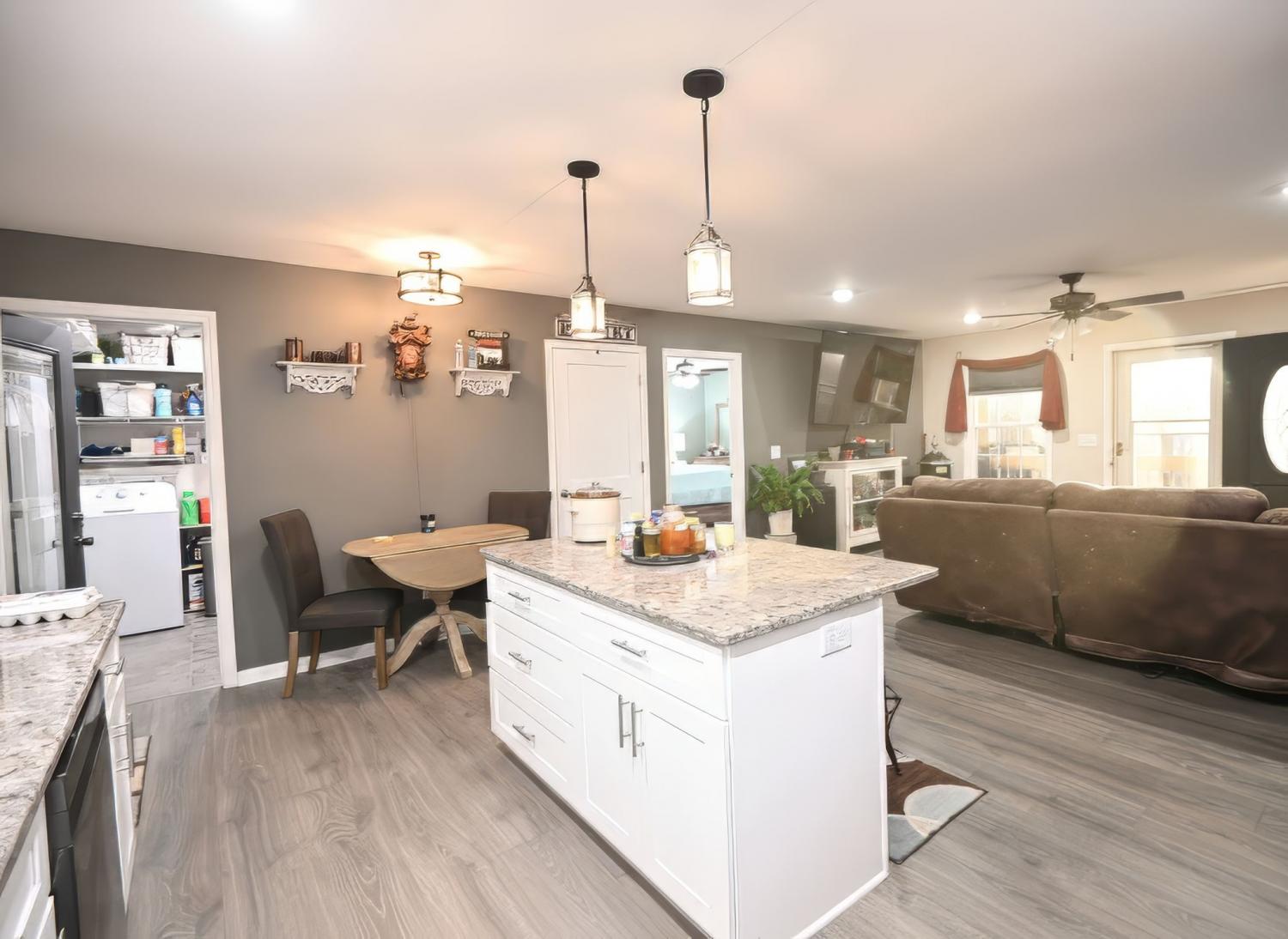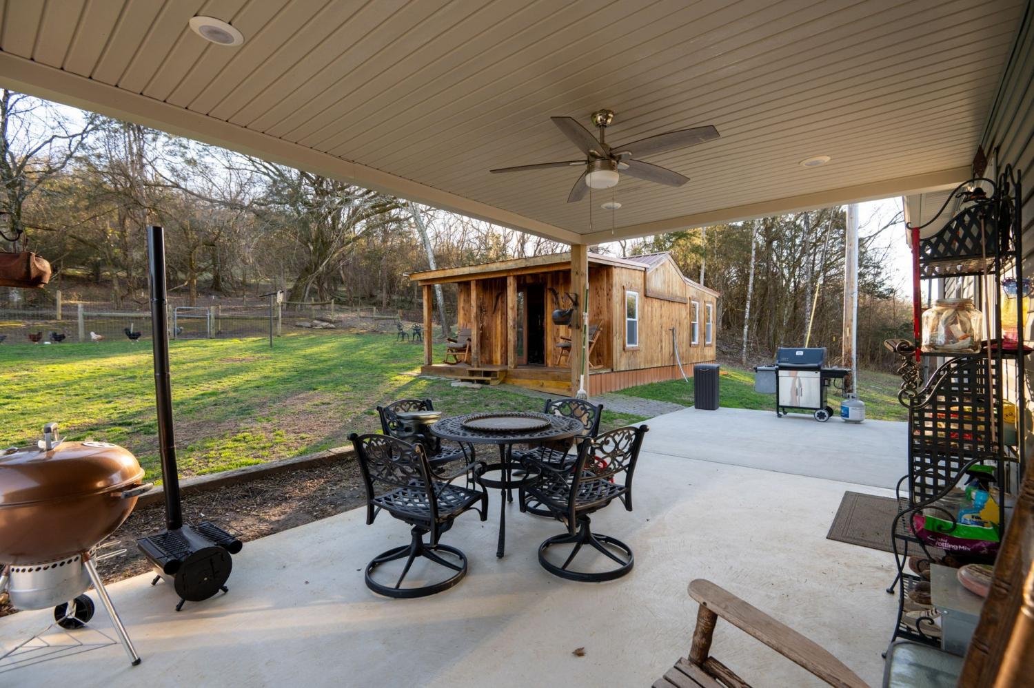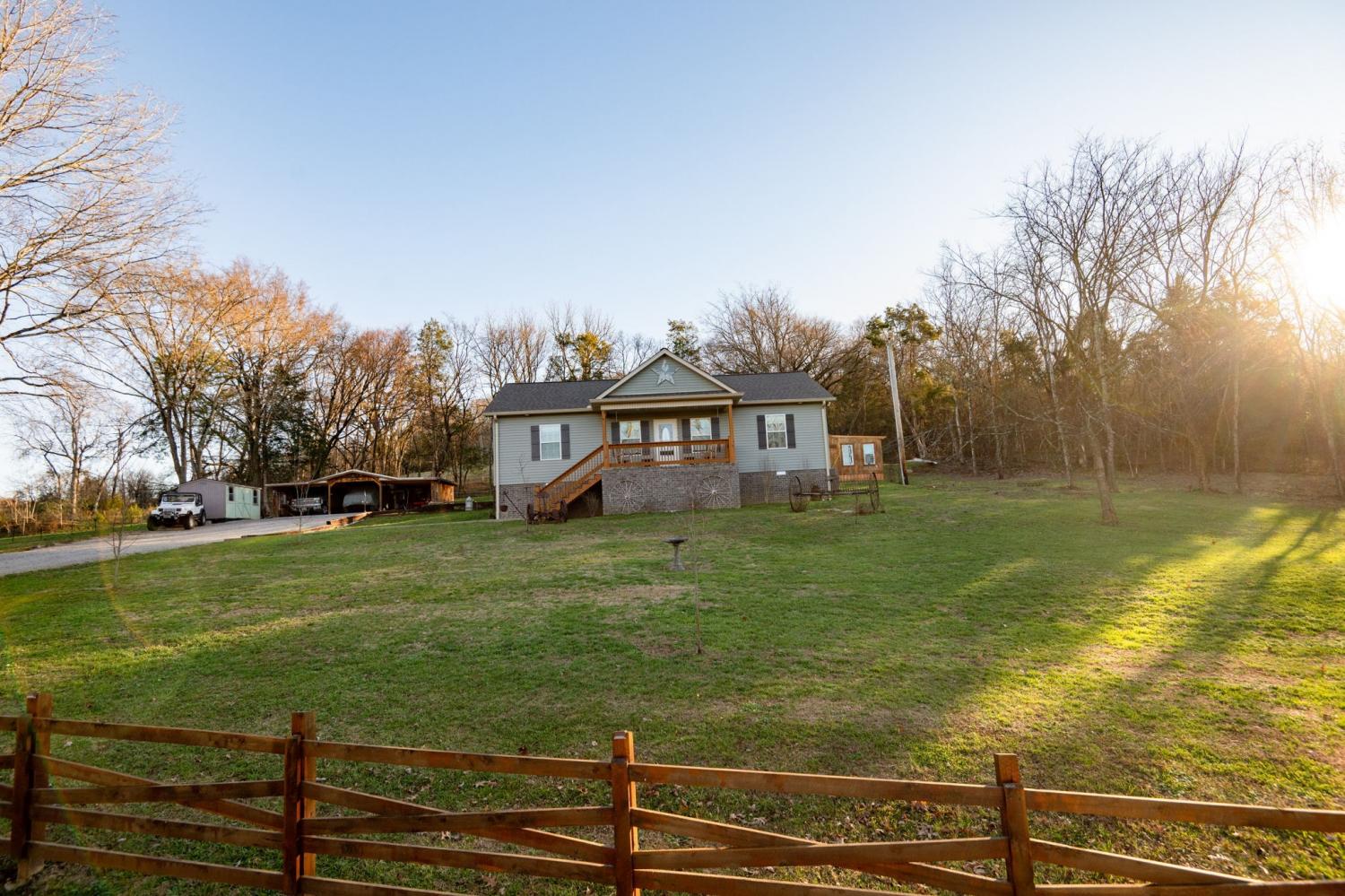 Country living at its finest! Nestled in the countryside yet conveniently located between Carthage and Lebanon, this 3-bedroom, 2-bath home offers peaceful living with modern comfort. The open-concept design highlights an eat-in kitchen with a large granite island and stainless-steel appliances. Step outside to the deep back porch—perfect for entertaining or enjoying quiet country evenings. An open three-car garage (24x36) which is plumbed, has electricity, and completely concreted is one of three outbuildings. The chicken coop has electricity and is completely fenced in. The third building, the cabin, has endless opportunities for hobbies, storage, or quiet space. The amount of attention to details makes this home move ready.
