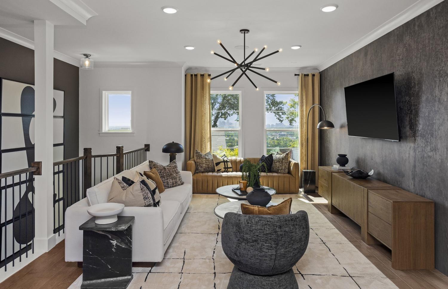 Unmatched Nashville skyline views! This stunning Teravista floorplan offers breathtaking views from the rooftop. Featuring 2 bedrooms, 2.5 baths, and an open-concept design, this home is perfect for modern living. The large eat-in quartz island brightens up the space alongside modern white cabinetry and oversized windows. The primary suite boasts a massive walk-in closet and a spa-inspired shower with dual quartz vanities. Enjoy unforgettable sunsets from your private rooftop terrace—ideal for entertaining with panoramic Downtown views. Located minutes from the exciting River Side, River North, and Neuhoff developments, Skyline offers unbeatable value in one of Nashville’s most dynamic areas.