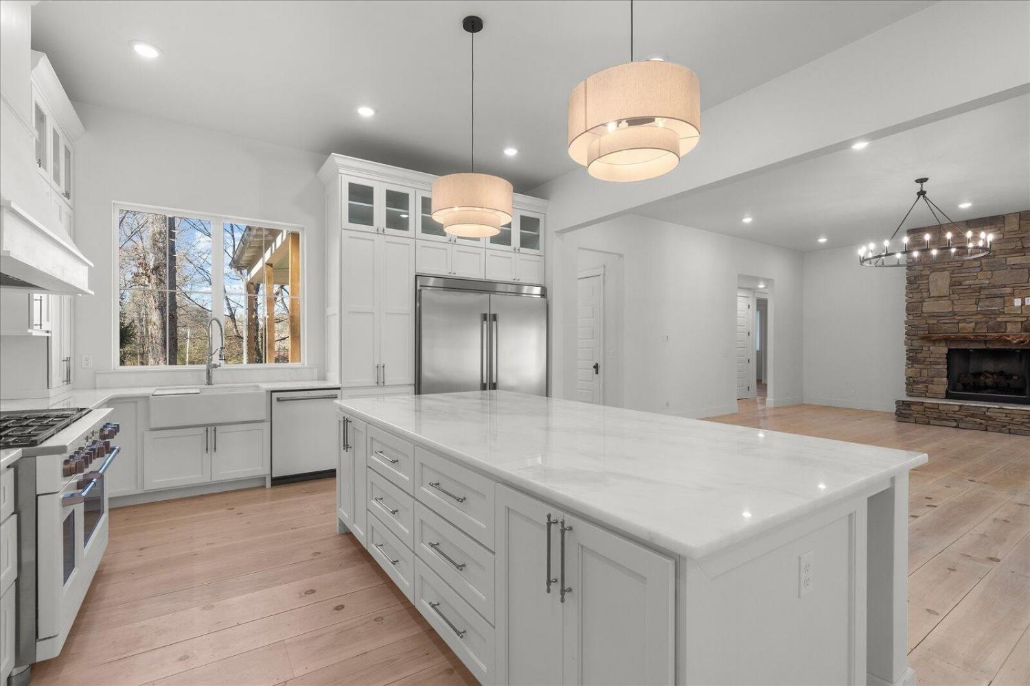 A rare blend of history, craftsmanship, and modern luxury, this 5,654 sq ft farmhouse sits on 2 acres and is thoughtfully built around an original 1850s schoolhouse—complete with its original fireplace, seamlessly woven into the home's design. Soaring 11-foot ceilings, custom pine floors, and nearly 1,875 square feet of covered porches designed for year-round living, including a wood-burning outdoor fireplace. The main level features a stunning primary suite with his-and-hers closets and a 14-foot walk-in shower. At the heart of the home, the chef's kitchen showcases custom cabinetry, Café commercial-style appliances, 48-inch gas range, butler's pantry, wine storage, and a keeping room perfect for everyday gathering. A formal dining room and dedicated office add both elegance and function. Upstairs offers two spacious bedrooms, each with en suite baths, plus a game room with custom built-in shelving. Designed with outdoor living in mind, the home is ready for a future pool and already includes a dedicated pool bath conveniently located off the back porch. Additional highlights include a storm shelter, 3 car garage and a 30'x30' two-bay workshop for storage, hobbies, or projects. Please call for more information and to schedule your private showing today. Information is deemed reliable but not guaranteed. Buyer to verify any and all information they deem important.