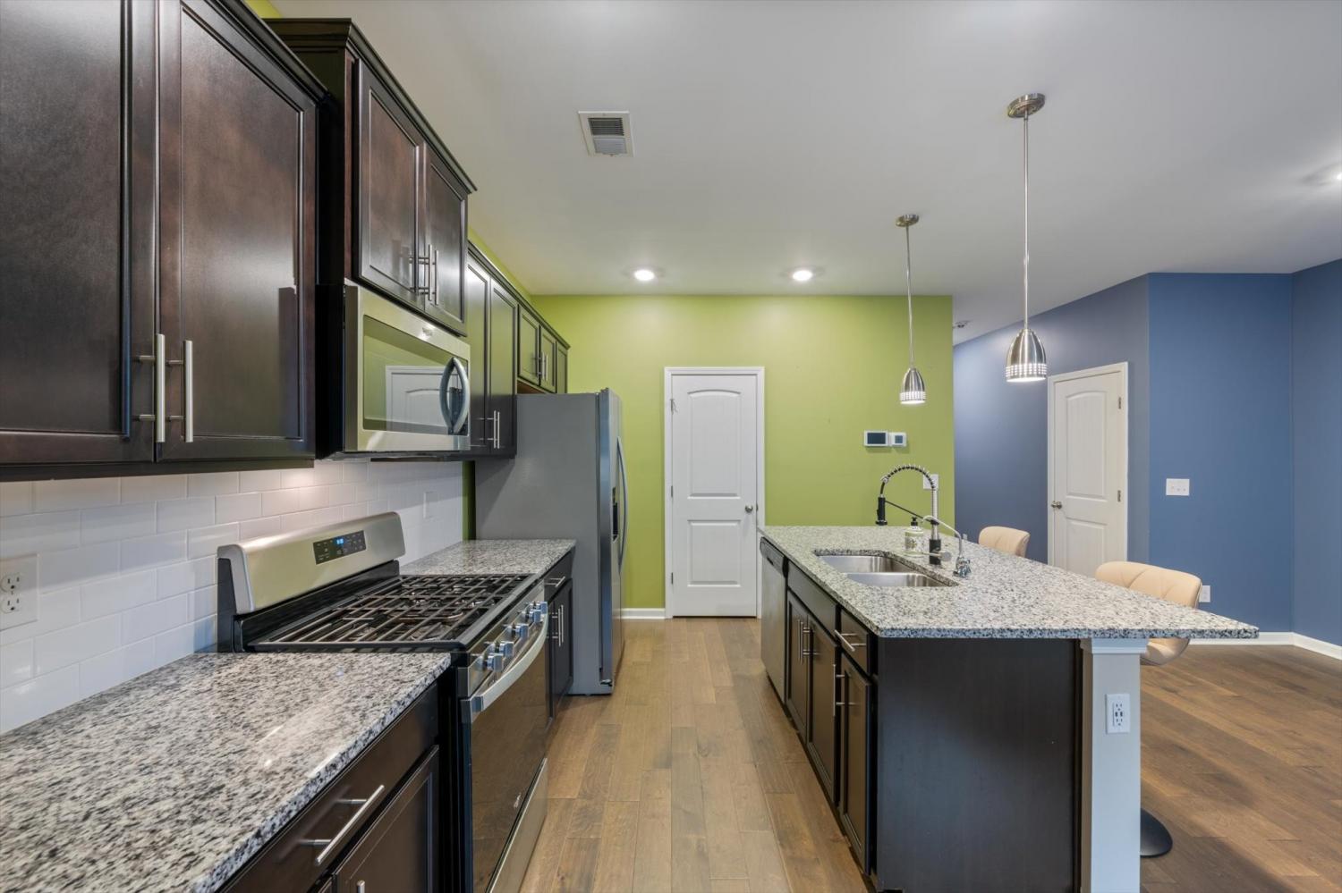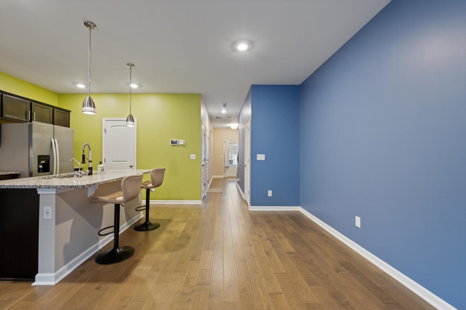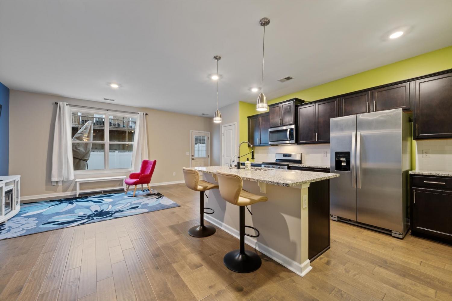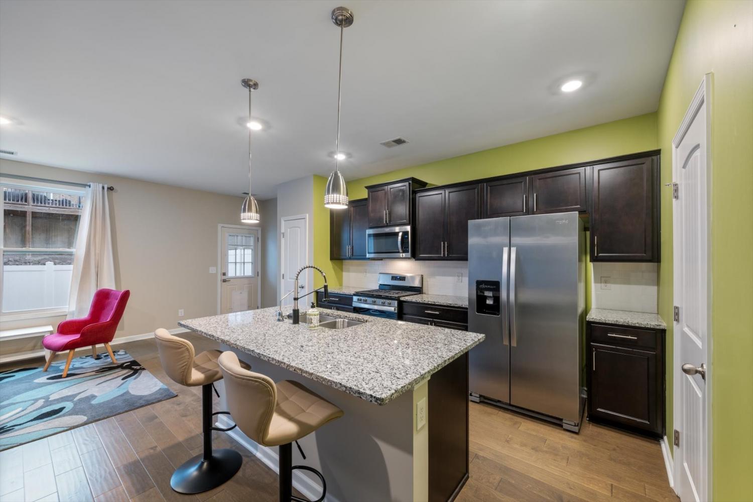 Stunning and spotless townhome with pops of tasteful color! Style and character! Super well maintained "Smart Home" features with an open floor plan and new white vinyl fenced-in back yard space. Neighborhood POOL! Granite counters with a large and functional kitchen island! Gas Stove! Stainless Appliances. Hardwoods throughout the living area downstairs and tile in all wet areas/baths. This place is impressive! Fridge Stays! Sale is contingent upon Short Sale approval.