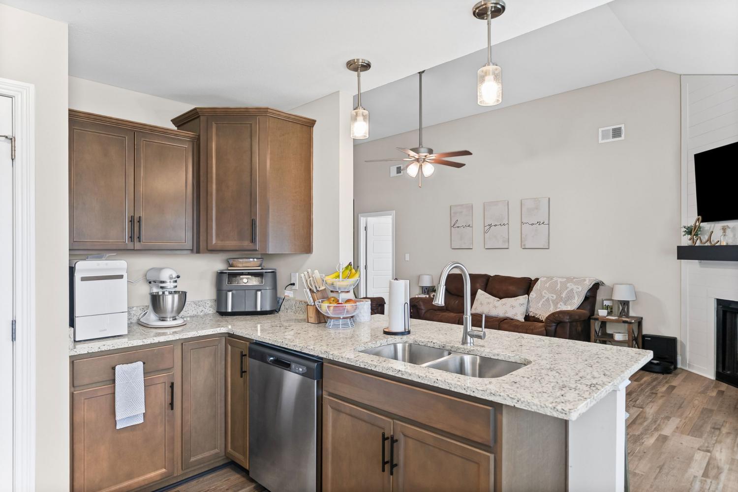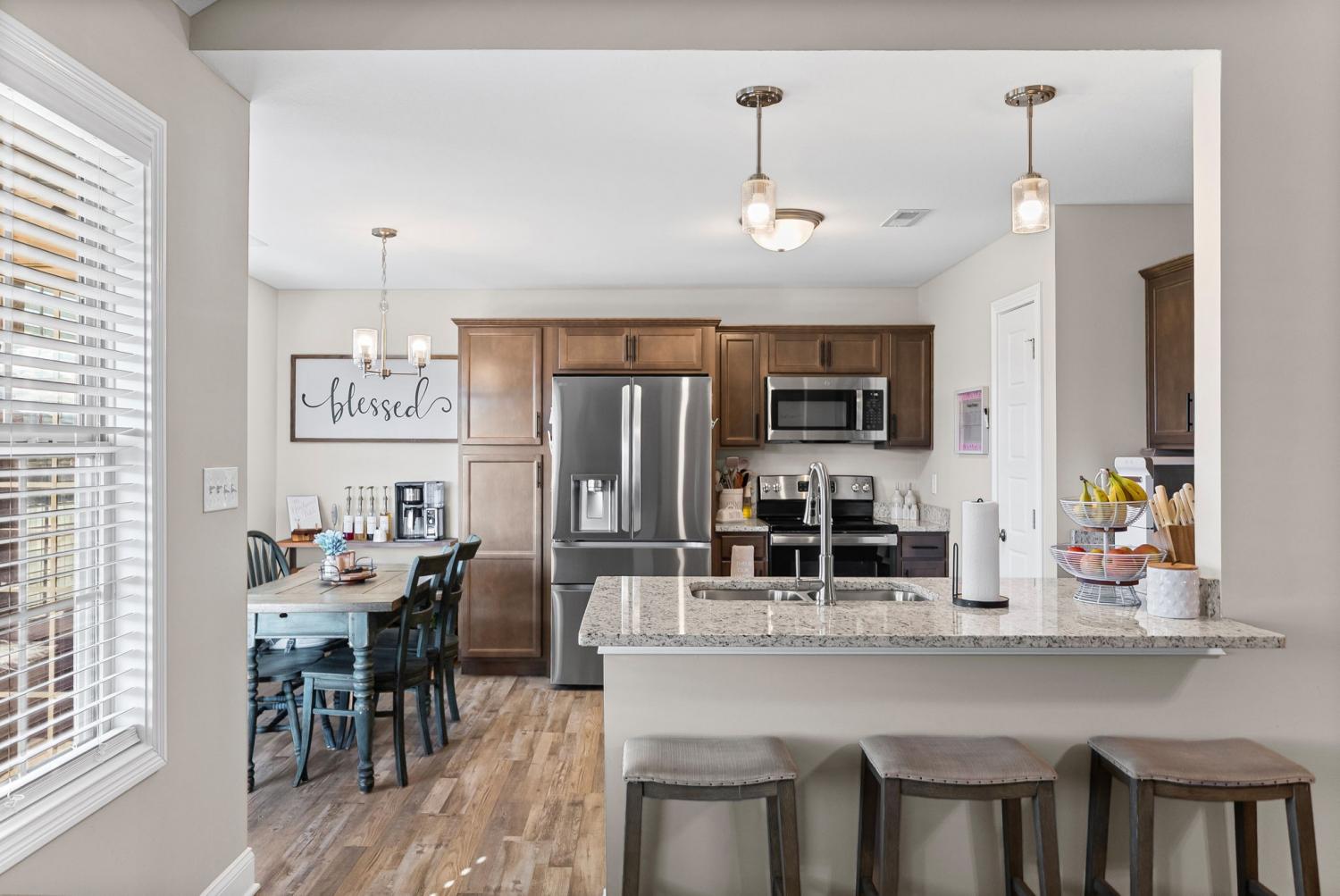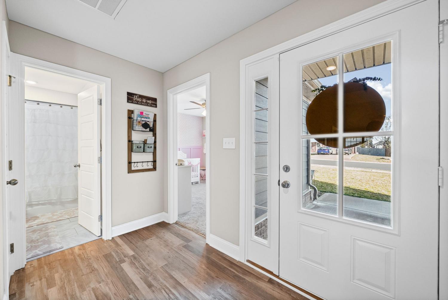 Welcome home to 780 Lillian Grace Drive, a beautiful newer construction home located in the heart of Sango, just minutes from Exit 11. This stunning Bailey floor plan offers the perfect blend of comfort, style, and convenience with 3 bedrooms, 2 full bathrooms, and a spacious bonus room over the two-car garage. Step inside to an open, welcoming layout designed for everyday living and entertaining. The main-level owner’s suite is a true retreat, featuring elegant tray ceilings, an extra-large fully tiled shower, double vanities, and a generous walk-in closet. Two additional main-level bedrooms are spacious and conveniently located near the full-size laundry/utility room. The heart of the home is the chef-inspired kitchen, complete with custom cabinetry, stainless steel appliances, granite countertops, a large pantry, and a dining area perfect for gathering with family and friends. Cozy up by the gas-log fireplace in the living room or enjoy outdoor living on the covered back deck overlooking your privacy-fenced backyard. Upstairs, the huge bonus room offers endless possibilities—media room, home office, playroom, or guest space. Additional highlights include a fully sodded yard, sidewalks and street lamps, and a $35/month HOA that includes weekly trash pickup. Conveniently located near schools, shopping, downtown Clarksville, APSU, Fort Campbell, and I-24, this home truly has it all. Don’t miss your opportunity to make 780 Lillian Grace Drive your next home.