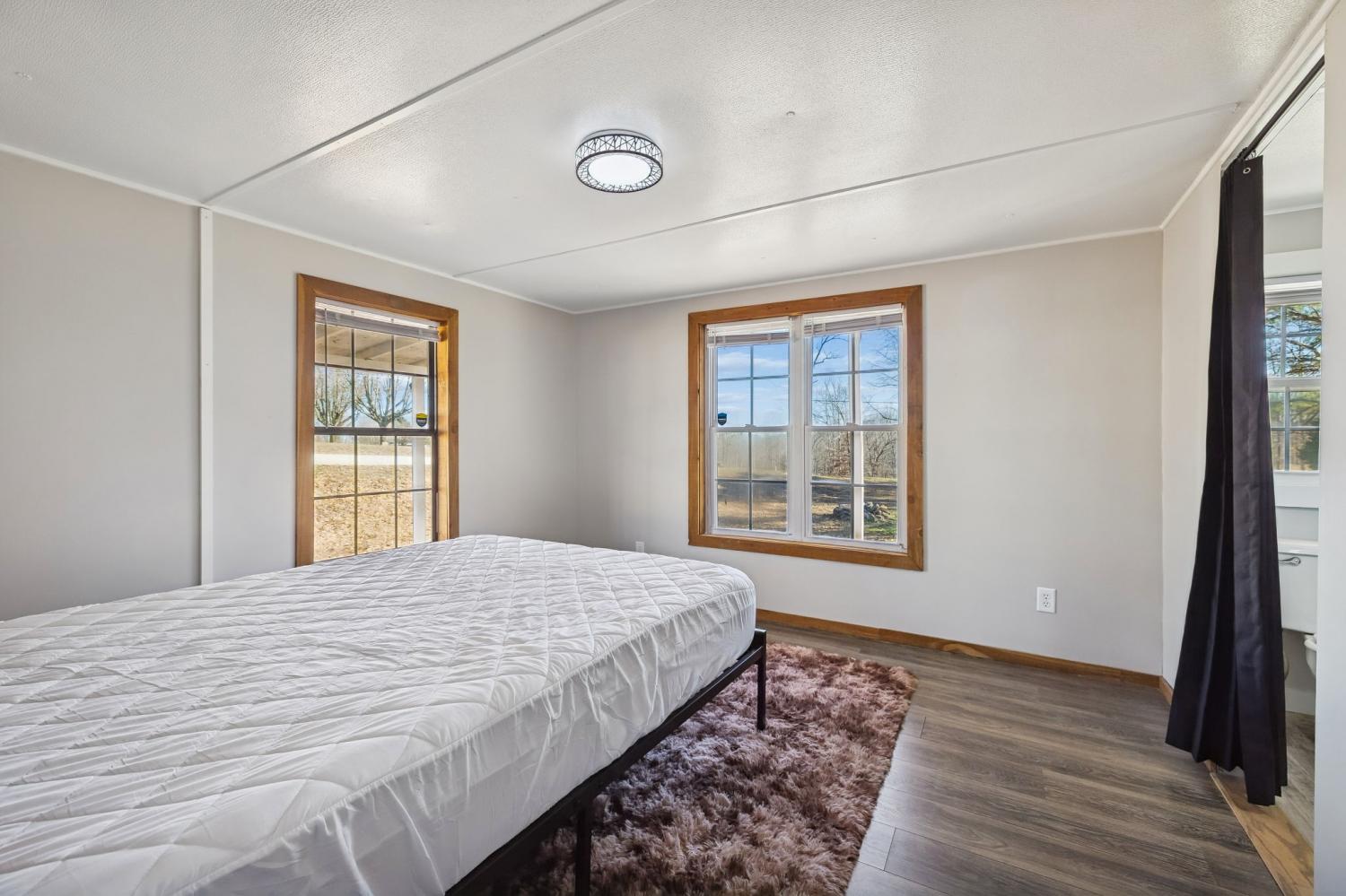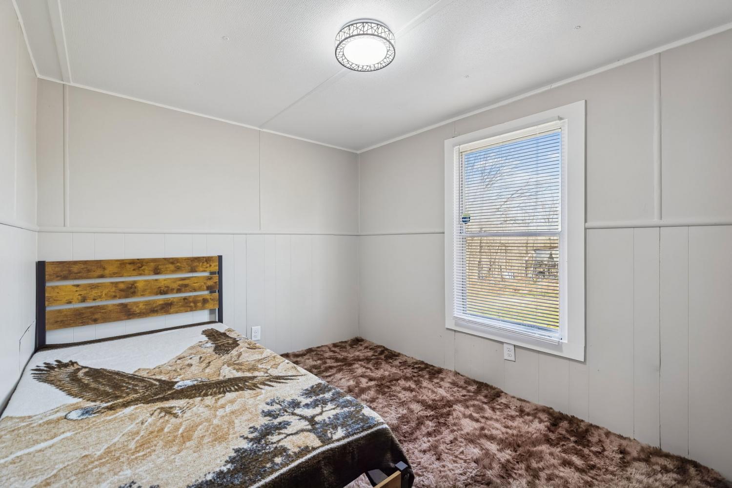 Experience the joy of a move-in-ready home at this price, perfectly located on a tranquil 2.5-acre corner lot. 3 bedrooms and 2 bathrooms, This residence is equipped with brand-new appliances, including a washer and dryer. Enjoy the natural light in the sunroom or relax on the inviting patio and wrap-around porch. The home also features an unfinished basement room with a convenient walk-out entrance, providing endless possibilities for customization. Built on a permanent foundation and enhanced with stylish track lighting that operates via remote control, This property is a true blessing waiting for you to make it your own!