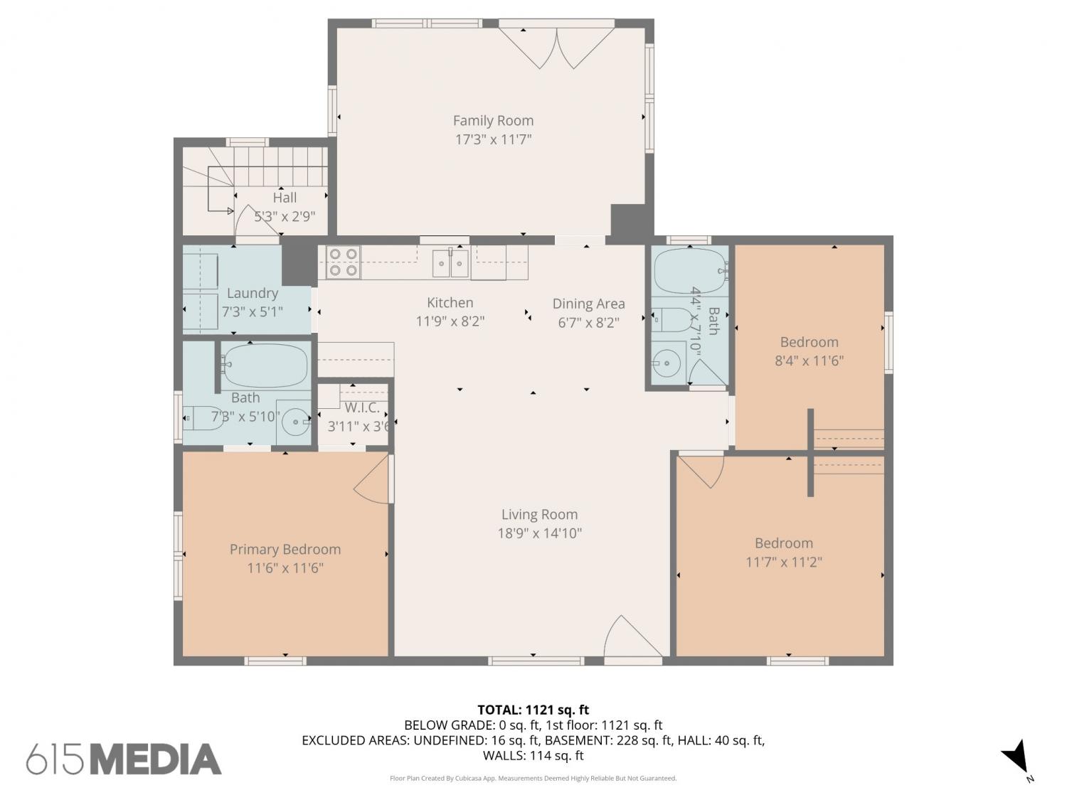 Area : 1,121 sq. ft.