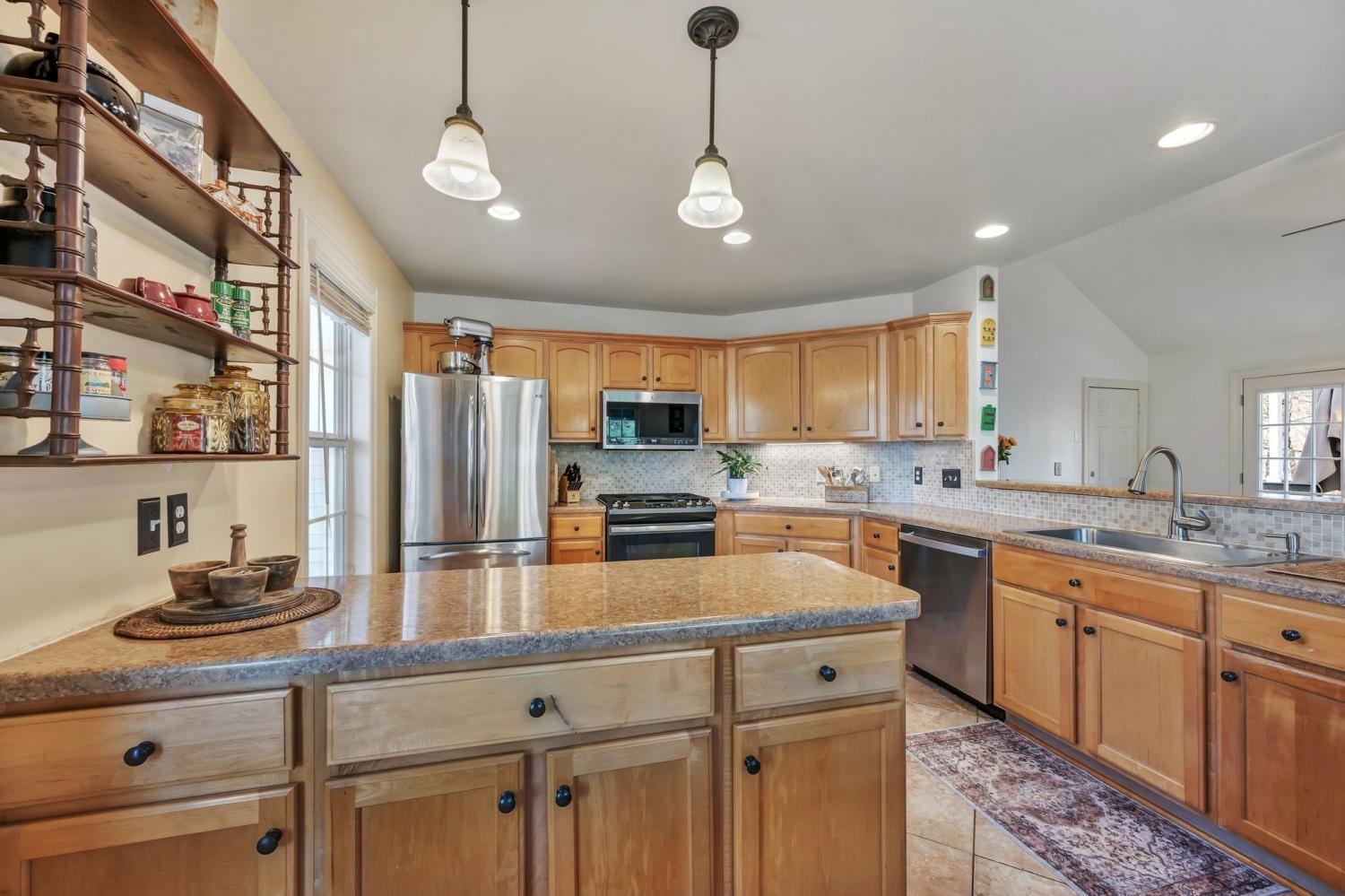 Well-maintained 4BR/3BA home offering 2,058 sq. ft. on a spacious 1.23-acre lot. Built in 1998, this property features a downstairs in-law suite previously used as an Airbnb with private entrance, kitchenette with appliances, and gutter guards. Vaulted ceilings in the primary bedroom, bath, and spare bedroom. Stainless steel appliances, walk-in shower, and tile, laminate, and hardwood flooring throughout. 2-car attached garage, and conveniently located just 8 minutes from the interstate.
