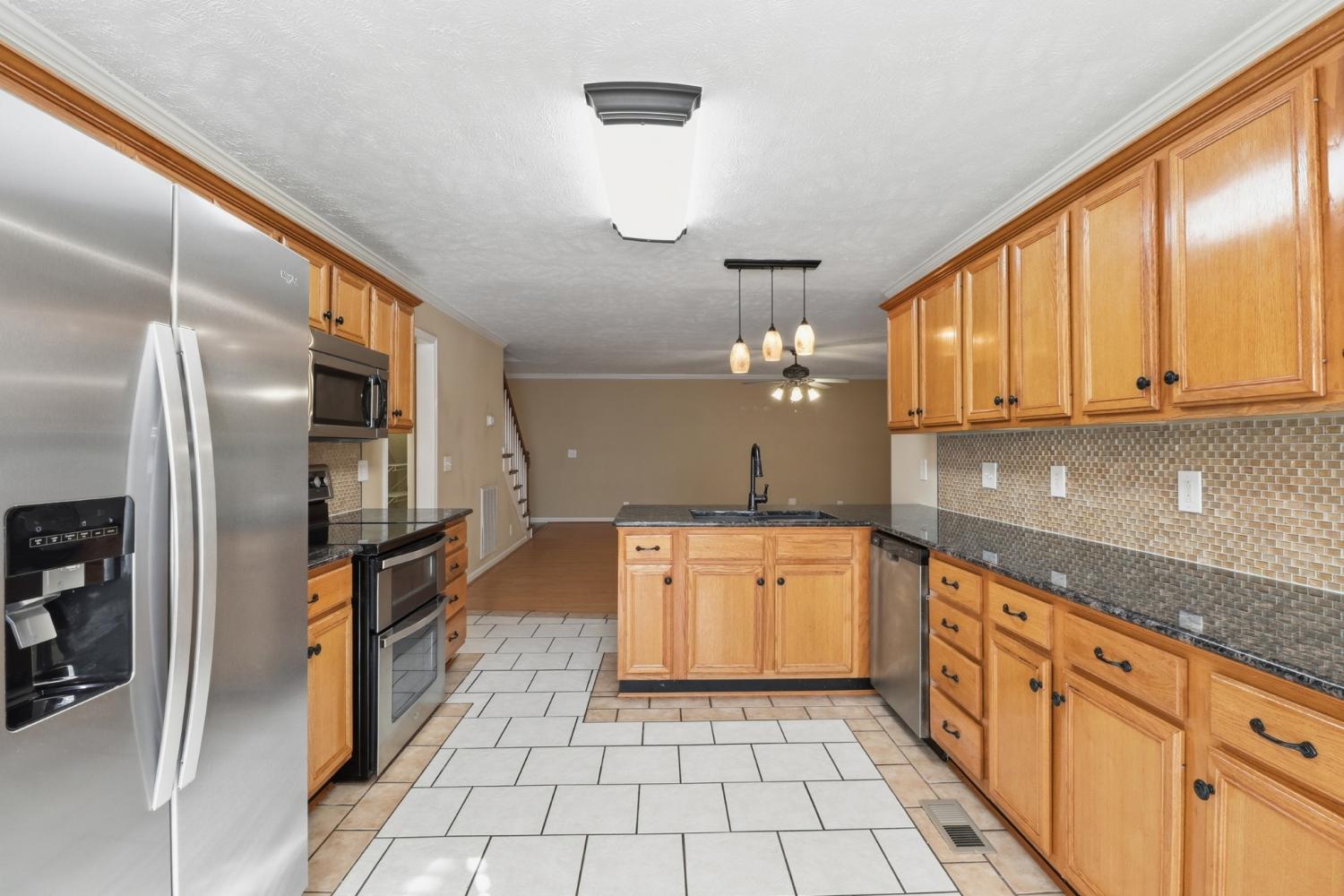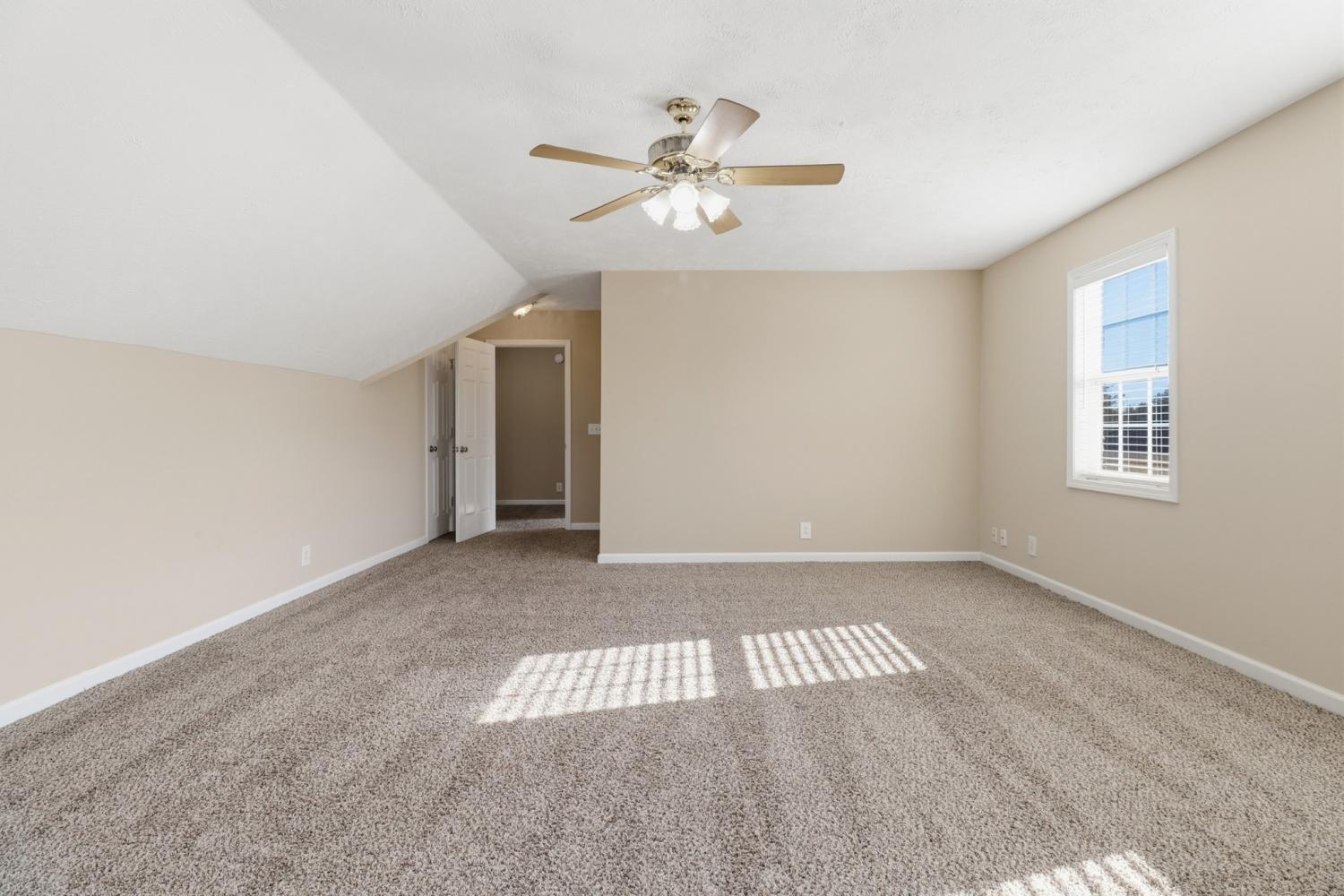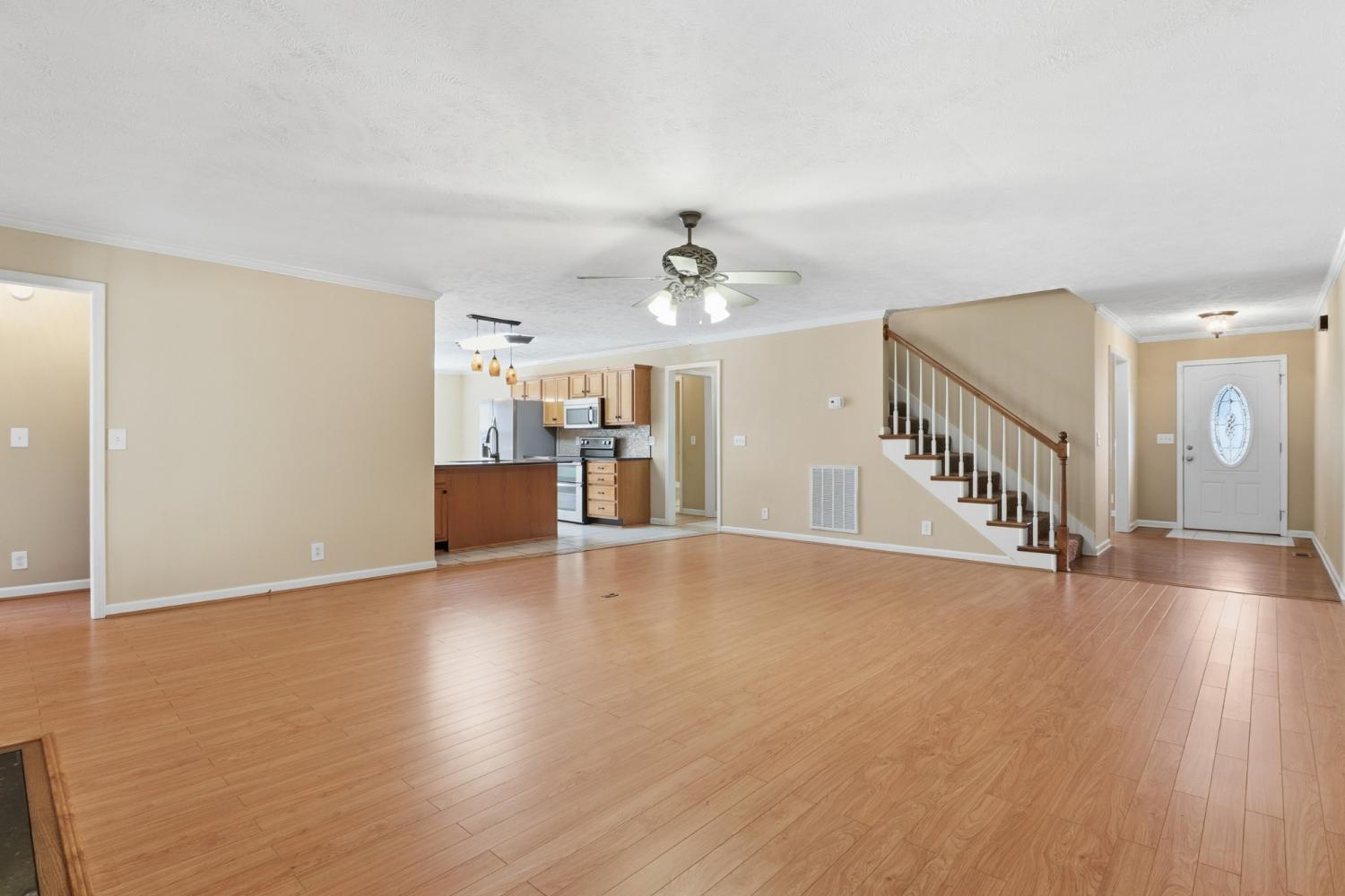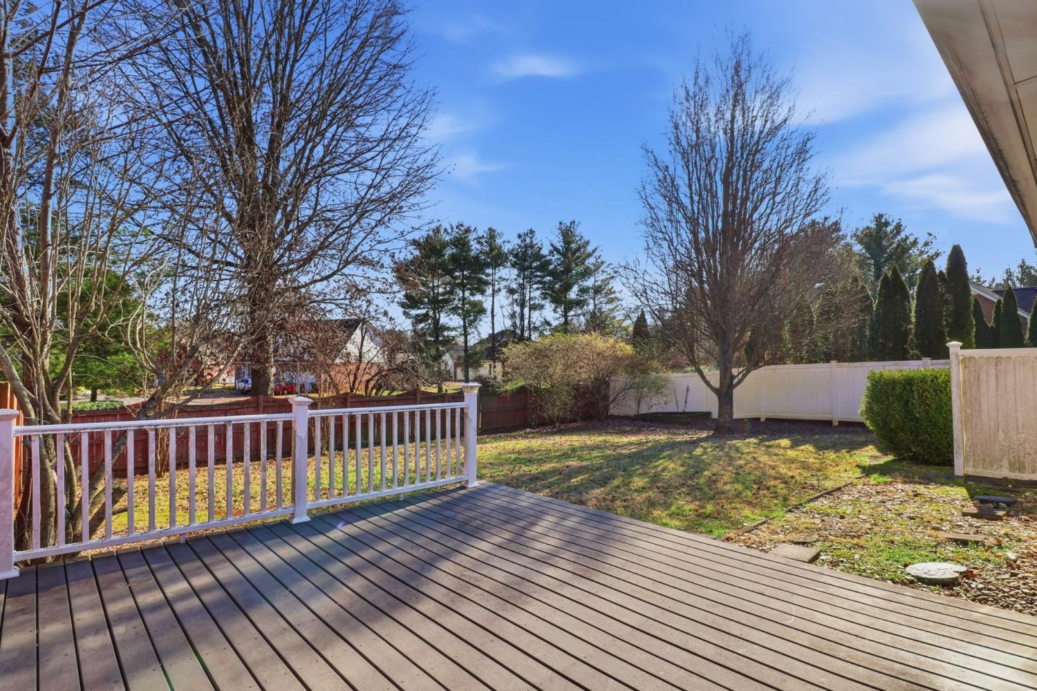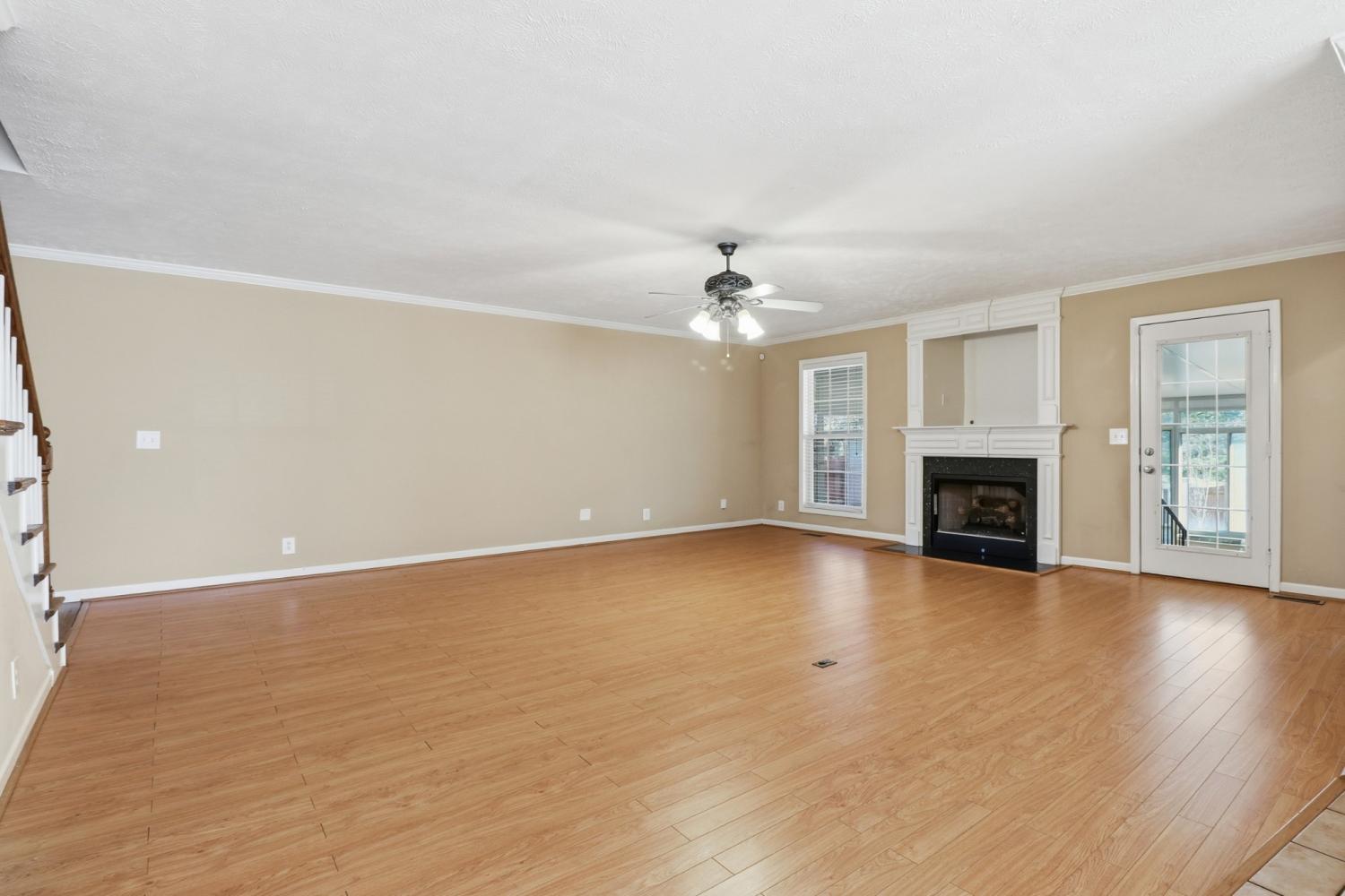 This home has lots of space! Walk into a huge Den with fireplace, ceiling fan and opens up to the kitchen and Breakfast nook area. The kitchen has lots of cabinets, pantry, granite counter tops. stainless steel appliances, range with double ovens, including a refrigerator. Plus a Breakfast Nook area. The formal dining room has vaulted ceilings and HW floors. The downstairs Primary bedroom has large bath with double vanities, separate shower and juzucci tub, large walk in closet, Just off the Den is a large Florida room with its own heat and air source and easy access to the deck plus fenced in back yard. The upstairs features 2 large bedrooms, huge bonus Room , lots of storage and a 2 car garage. The utility room is a nice size and just off the kitchen along with a half bath.