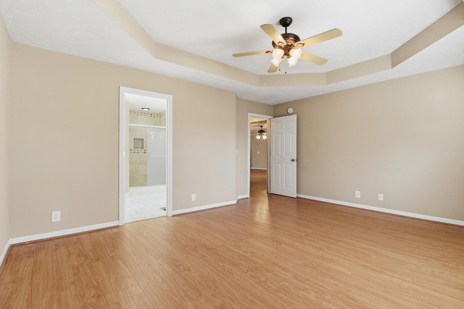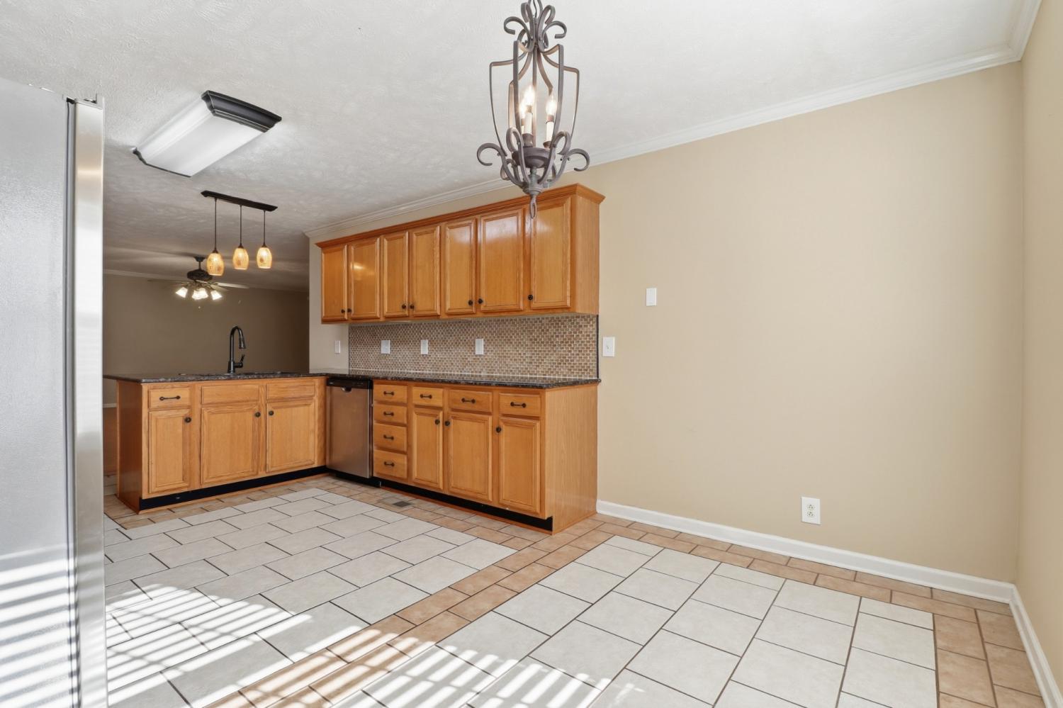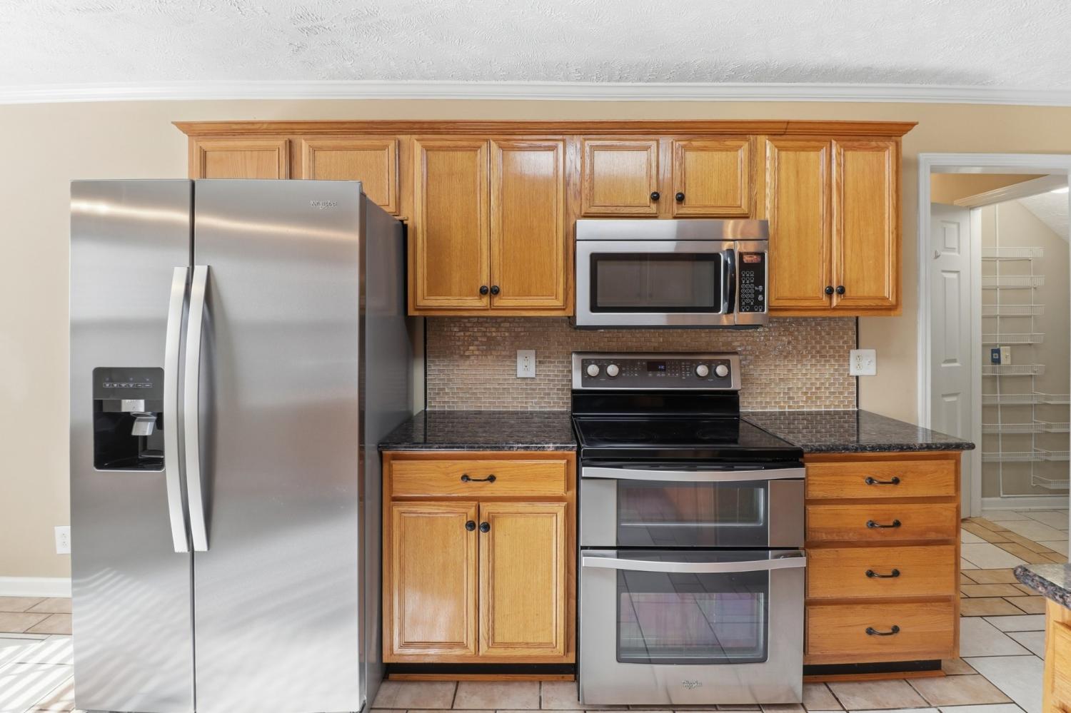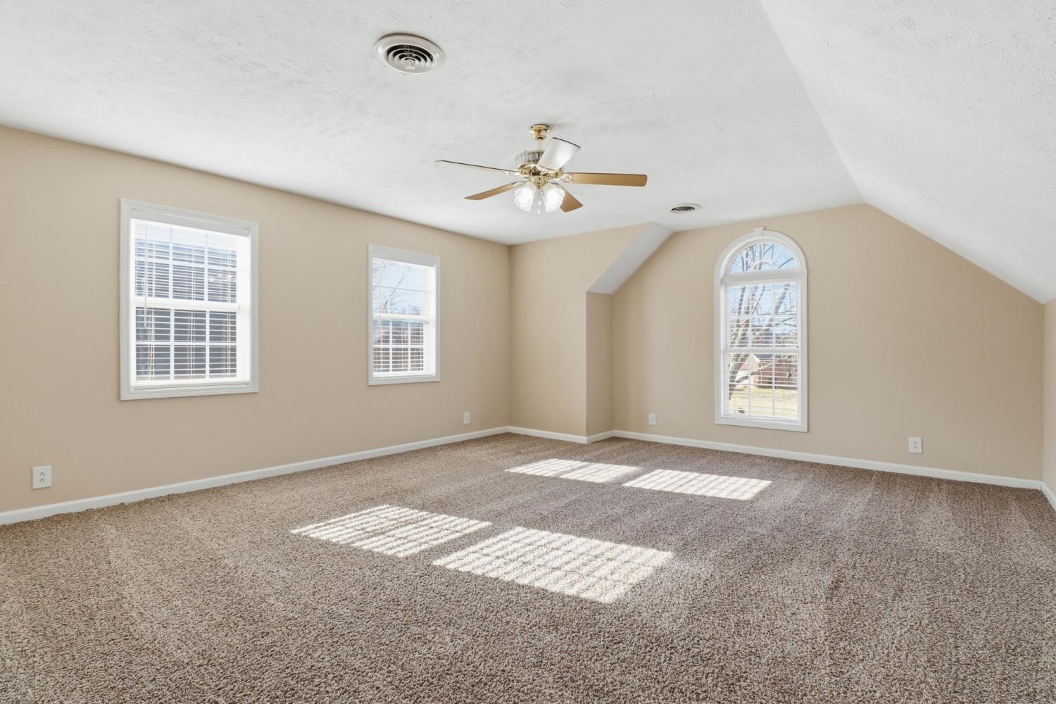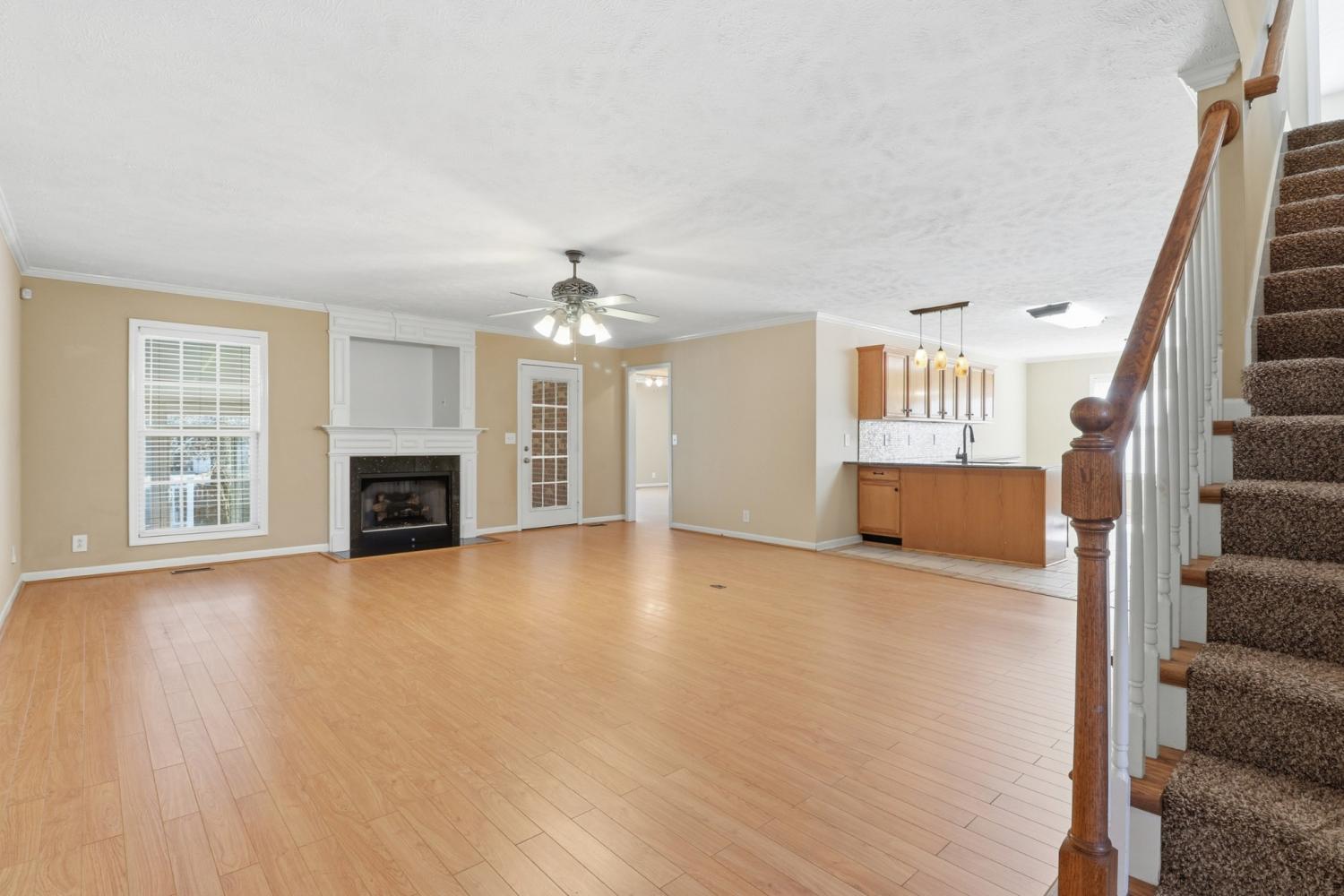 This home has lots of space! Walk into a huge Den with fireplace, ceiling fan and opens up to the kitchen and Breakfast nook area. The kitchen has lots of cabinets, pantry, granite counter tops. stainless steel appliances, range with double ovens, including a refrigerator. Plus a Breakfast Nook area. The formal dining room has vaulted ceilings and HW floors. The downstairs Primary bedroom has large bath with double vanities, separate shower and juzucci tub, large walk in closet, Just off the Den is a large Florida room with its own heat and air source and easy access to the deck plus fenced in back yard. The upstairs features 2 large bedrooms, huge bonus Room , lots of storage and a 2 car garage. The utility room is a nice size and just off the kitchen along with a half bath.