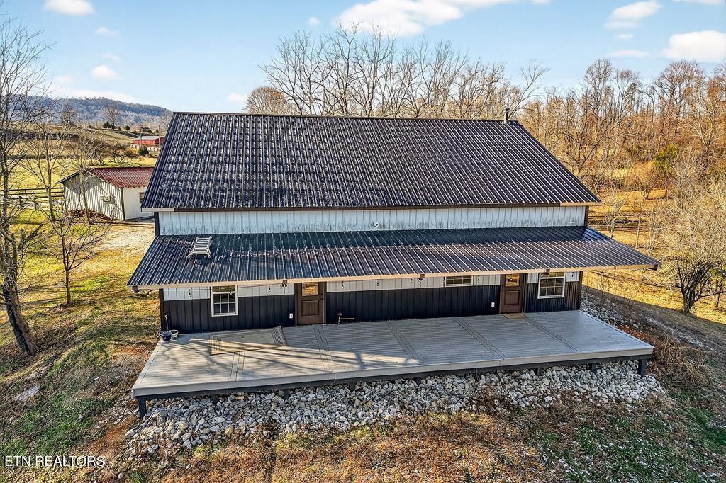 Discover your dream retreat on 15.4+/- unrestricted acres in the heart of Pickett County! This custom-built 2022 barndominium blends modern comfort with country charm, featuring steel construction with wind bracing & high-speed fiber optic internet. Inside you'll find nearly 2,600 sqft of living space with soaring ceilings, a main-level primary suite, and additional loft living complete with kitchenette. Equestrian enthusiasts will love the horse barn with feed and tack room, 2.5 fenced acres next to the barn, a fully fenced property perimeter, multiple spring-fed creeks that run through the property - including your very own waterfall!! A detached workshop with electrical and plumbing offers space for all the hobbies. Whether you're looking for a full-time residence, vacation home, or working farm, this unrestricted property checks every box: scenic mountain views, water frontage, space for the animals and a versatile layout designed for both relaxation and productivity!! Buyer to verify ALL information!