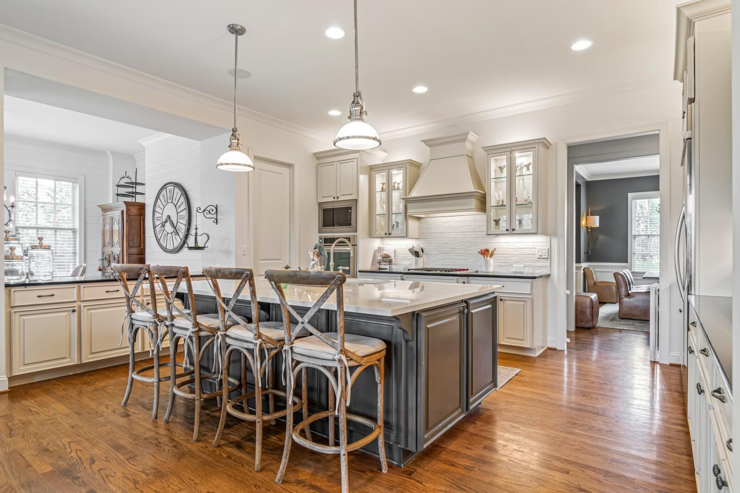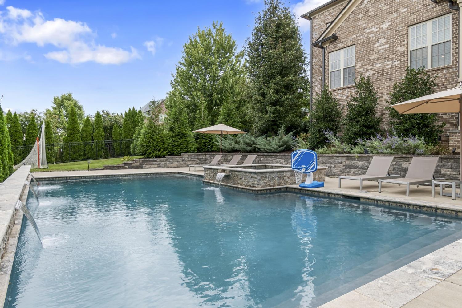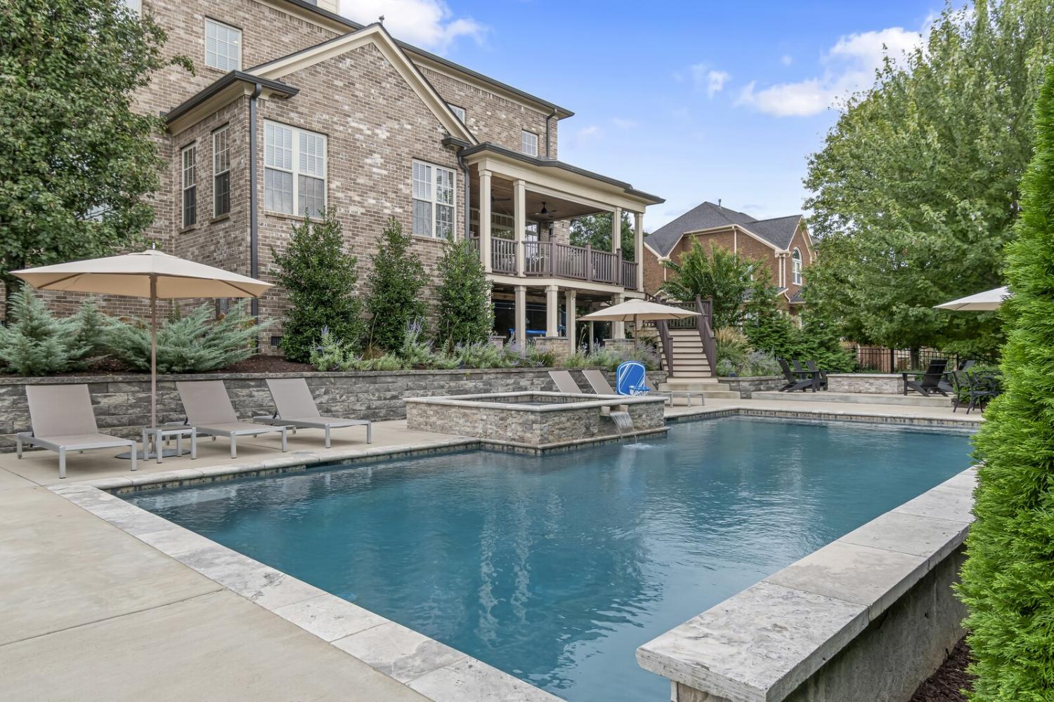 Welcome to this award-winning John Wieland home in the coveted Taramore community, offering resort-style amenities including clubhouse, pool with waterslide, tennis and pickleball courts, playground, walking trails, and access to Brentwood’s greenway system. Zoned for top-rated Jordan Elementary, Sunset Middle, and Ravenwood High, and just minutes to Cool Springs, I-65, and downtown Nashville or Franklin. Set on over half an acre, this 5,423 sq ft home features 5 bedrooms and 6.5 baths with extensive recent upgrades: new roof (2023), three new HVAC units (2024), fully updated plumbing (2023), tankless water heater, new garage doors, iron front doors, and fresh interior and exterior paint. Maintenance plans and termite protection provide added peace of mind. The elegant interior showcases hardwood floors, designer lighting, formal dining, and a family room with gas fireplace and custom built-ins. The chef’s kitchen features an oversized quartz island, custom cabinetry, built-in refrigerator, Wolf gas cooktop, double ovens, and dishwasher and flows into a breakfast room and keeping room. The main level includes a private guest suite with remodeled bath, office nook, stylish half bath, and a drop-zone entry from the 3-car garage. Upstairs, the luxurious primary suite offers a spa-like remodeled bath and two walk-in closets. Three additional bedrooms each have walk-in closets and updated en-suite baths, plus a den and oversized laundry room. The third level provides a bonus/flex space, full bath, and abundant storage. Outdoor living shines with a covered composite deck, a fire pit, and a 20’ x 40’ heated Gunite pool and spa which are app controlled. Additional exterior features include full yard irrigation, and a wraparound front porch—creating a private, resort-style retreat in one of Brentwood’s most prestigious communities. Home Sweet Home! Up to 1% lender credit on the loan amount when buyer uses Seller's Preferred Lender.