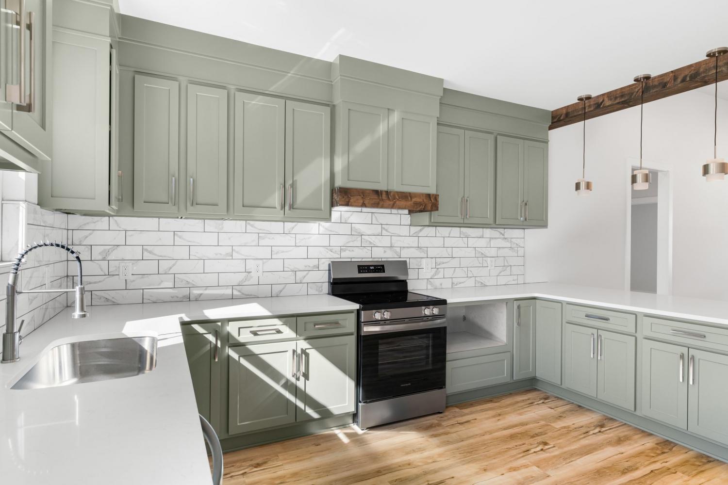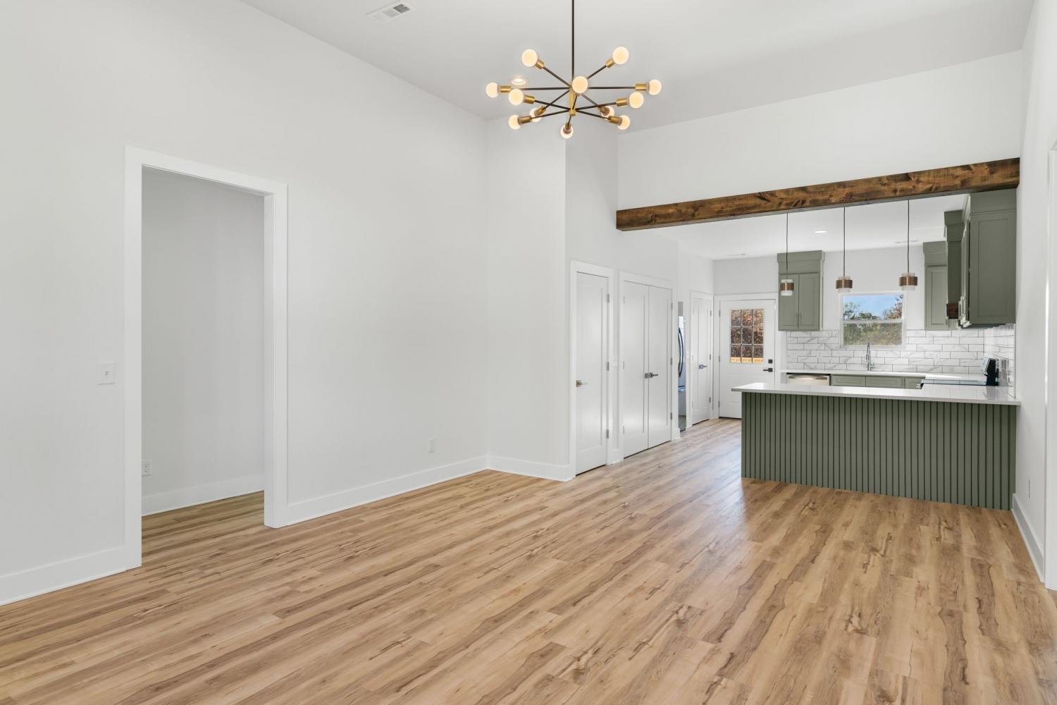 Beautiful new construction home featuring 4 bedrooms and 2 baths on nearly half an acre. Enjoy an open-concept layout with luxury vinyl plank flooring, a spacious kitchen with custom cabinetry, and a bright living area perfect for entertaining. The primary suite offers a private bath that showcases tile throughout, including floor- to- ceiling tiled stand shower and freestanding soaking bathtub. The property includes a large 800 sq. ft. detached garage, ideal for storage, a workshop, or future conversion into a guest suite or income-producing apartment. A rare combination of modern comfort and long-term potential! Short drive to the golf course and the lake! Builder warranty for 1 year.