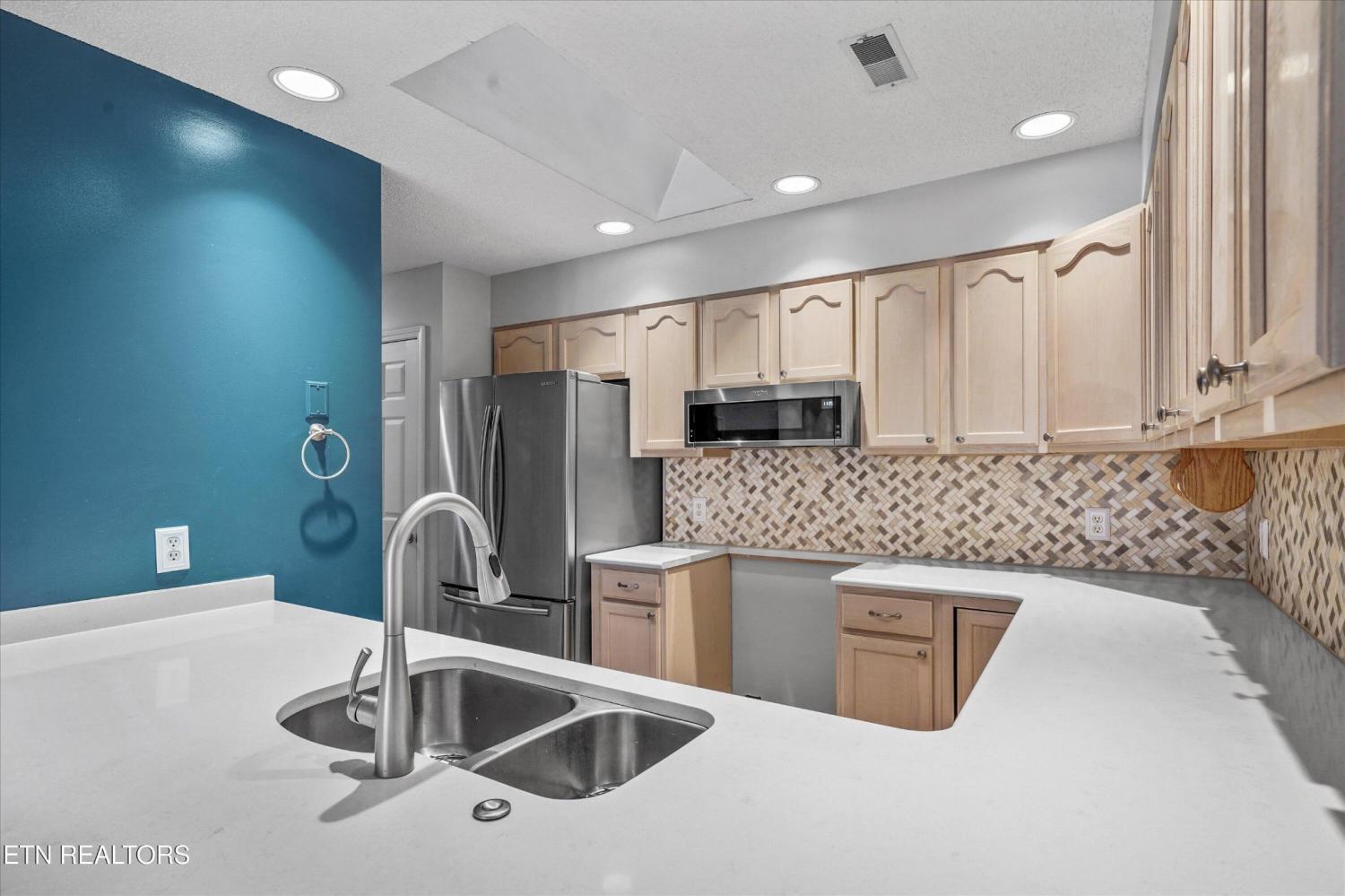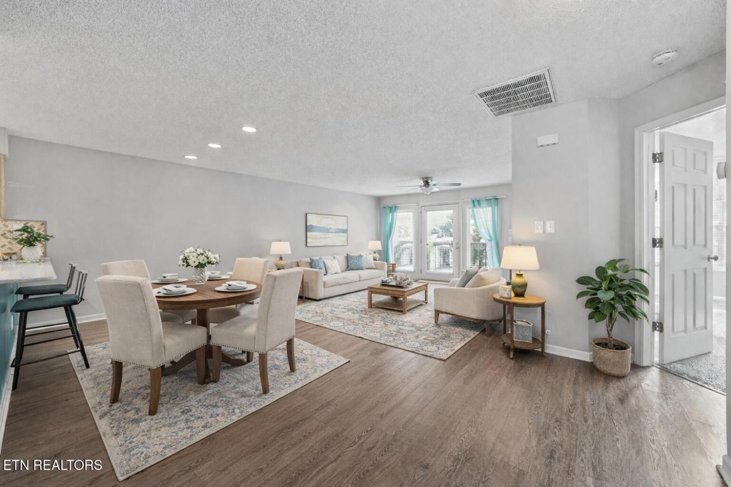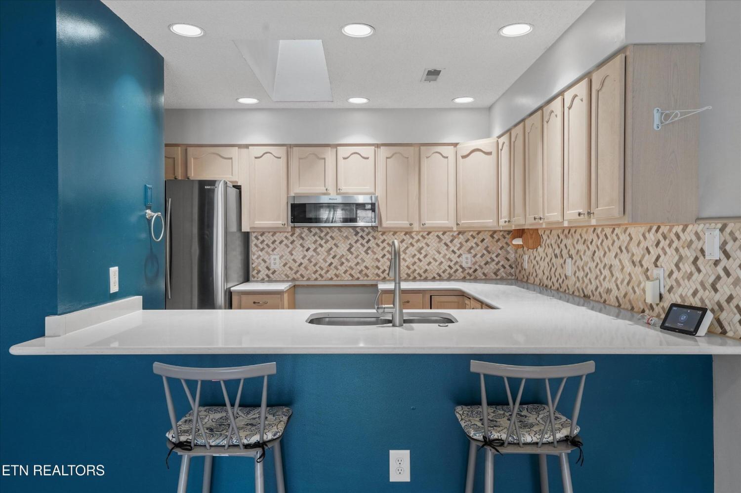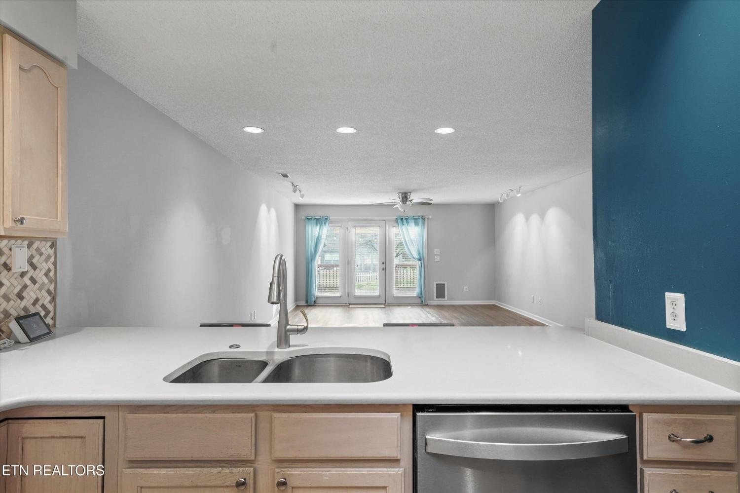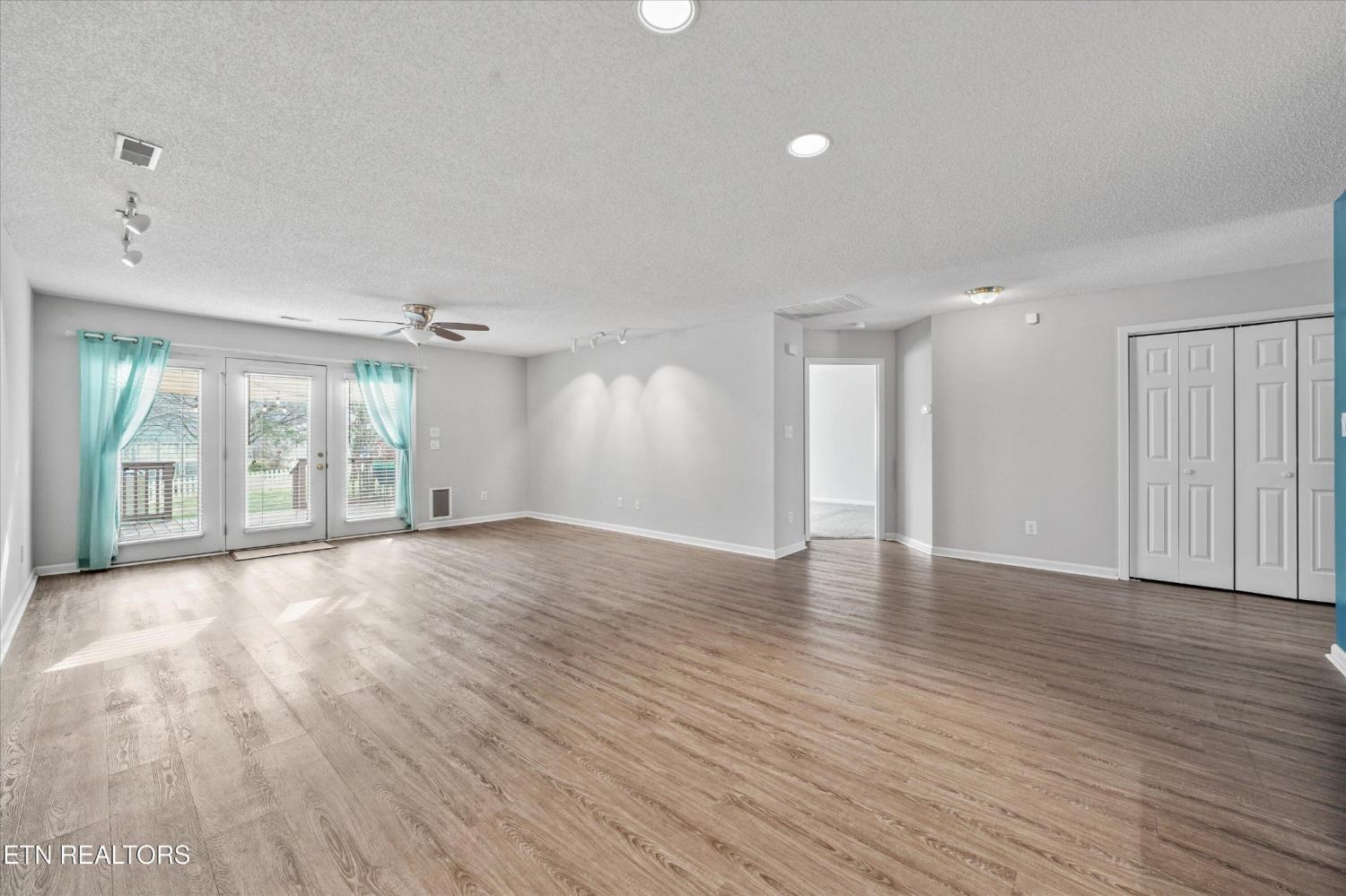 Don't let the two bedrooms fool you because this condo is impressively spacious and lives large. Located in a wonderful, well-maintained community where the HOA handles all exterior maintenance and grounds, this home offers low-maintenance living without sacrificing space or comfort. The massive living room is a true standout, offering endless flexibility for furniture layouts and entertaining. Brand-new LVP flooring runs throughout the main living areas, adding a modern touch while being durable and easy to maintain. The sellers thoughtfully opened the kitchen to overlook the living and dining areas, creating an open, inviting flow filled with natural light. The updated kitchen features fantastic cabinetry, granite countertops, a tile backsplash, a sleek microwave, and a skylight that floods the space with sunshine. The kitchen is also equipped for either an electric or gas stove, offering flexibility for your cooking preferences. The primary bedroom is generously sized and includes a walk-in shower, creating a comfortable and private retreat. Throughout the home, you'll appreciate the abundance of natural light that enhances the open feel. The garage is equally impressive with a coated floor, an additional refrigerator, and a well-designed workshop area perfect for hobbies, storage, or projects. Step outside to enjoy the brand-new Trex decking on the porch, complete with attractive lighting, plus a small fenced-in yard ideal for pets and gardening one of the only fenced in yards in the neighborhood!! This condo offers the perfect blend of space, thoughtful updates, and easy living in a community you'll love.