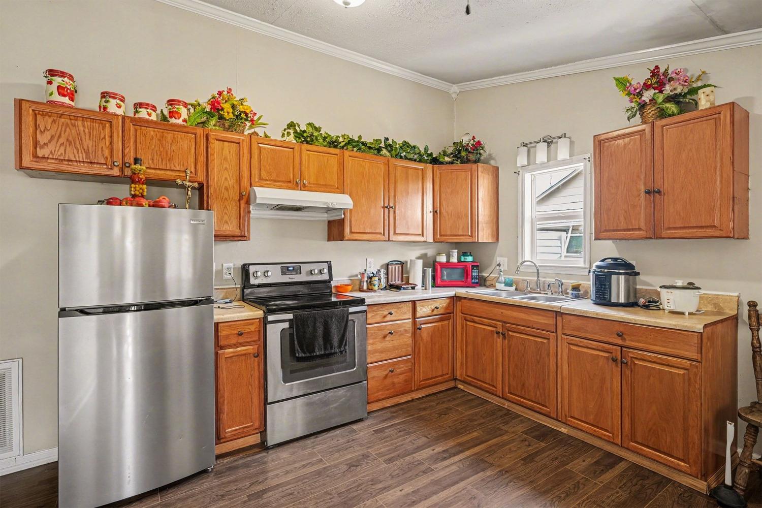 Priced to sell below the most recent tax appraisal of $436,000, this beautifully remodeled home is sitting on just under a quarter-acre lot and offers exceptional versatility and income potential. The main residence has been thoughtfully updated with new plumbing, drywall, flooring, and kitchen cabinets, creating a fresh and inviting space. Inside, you’ll find two bedrooms and a full bathroom featuring a spacious walk-in shower, along with a charming covered front porch perfect for relaxing. This unique property includes two additional living spaces, ideal for multigenerational living or investment use. The detached ADU out back features a mini-split system, full bathroom, bedroom, and kitchenette, and is currently leased month-to-month for $800, including utilities. An attached apartment located behind the main house offers a full kitchen, living room with vaulted ceiling, a full bedroom and bathroom, plus a covered back patio. This space is also leased month-to-month for $1,000, including utilities. The laundry room is located outside, allowing convenient shared access. A large driveway provides ample parking, complemented by a one-car carport. Whether you’re looking for flexible living arrangements or a strong investment opportunity with immediate rental income, this property offers outstanding value and potential. Don't miss out - schedule your showing today!