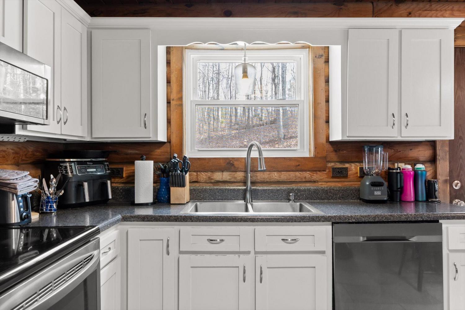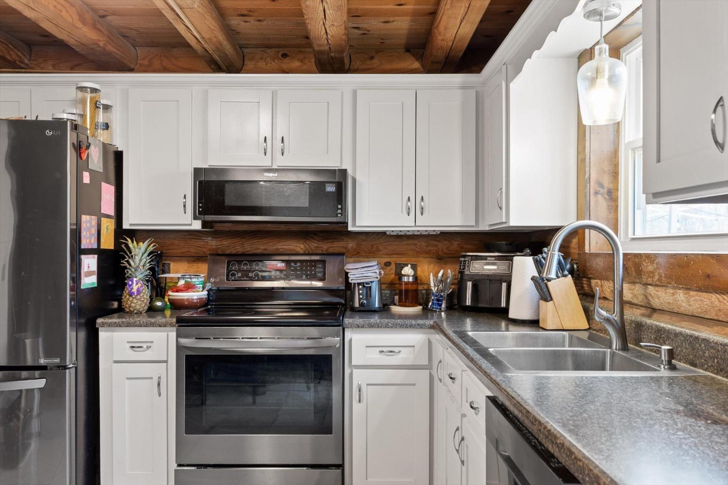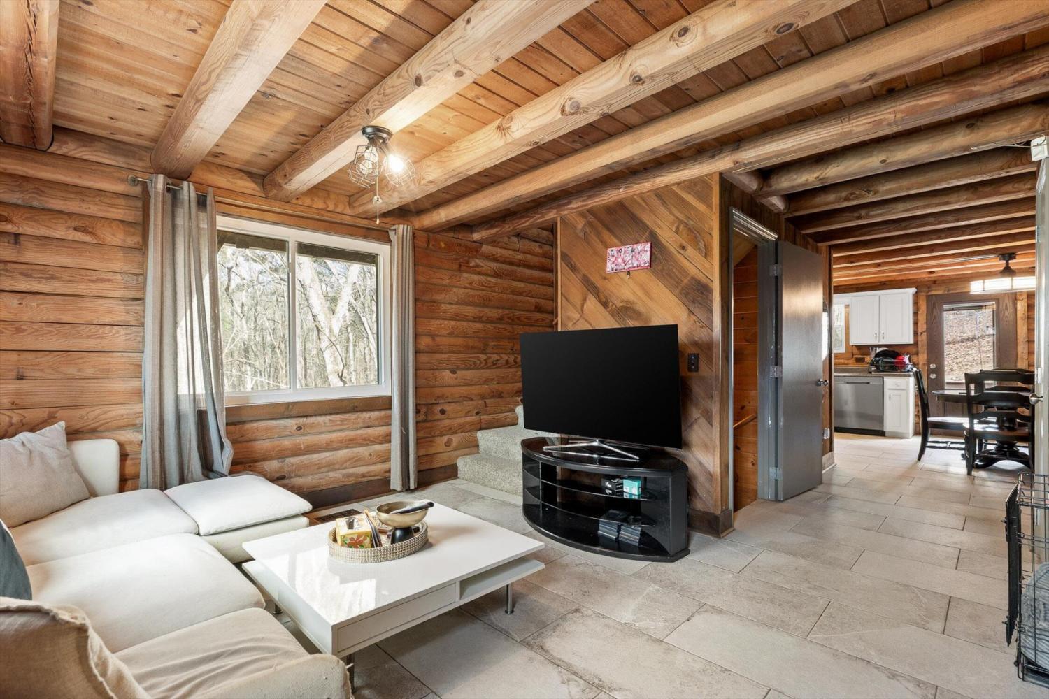 Charming Retreat in Ringgold - A Rare Find! This cabin-style home in the heart of Ringgold offers both comfort and versatility, featuring a self-contained studio apartment on the lower level, perfect for guests or Airbnb income. The inviting living room boasts a beautiful stone, wood-burning fireplace, wood beams, and ceramic tile flooring, seamlessly connecting to a stylish kitchen with stainless steel appliances and an eat-in dining area. Upstairs, you'll find two loft-style bedrooms and a full bath, while the lower level offers a spacious master suite with an updated bathroom. There's also an extra room perfect for a den, office, or media space. The studio apartment includes a fully updated kitchen, bathroom, laundry room, and screened-in porch with a private entrance, providing endless possibilities for extra income or multigenerational living. Enjoy the outdoor patio, deck, and fenced backyard, perfect for entertaining and pets. Priced to sell, this charming home won't last long - schedule your private showing today!