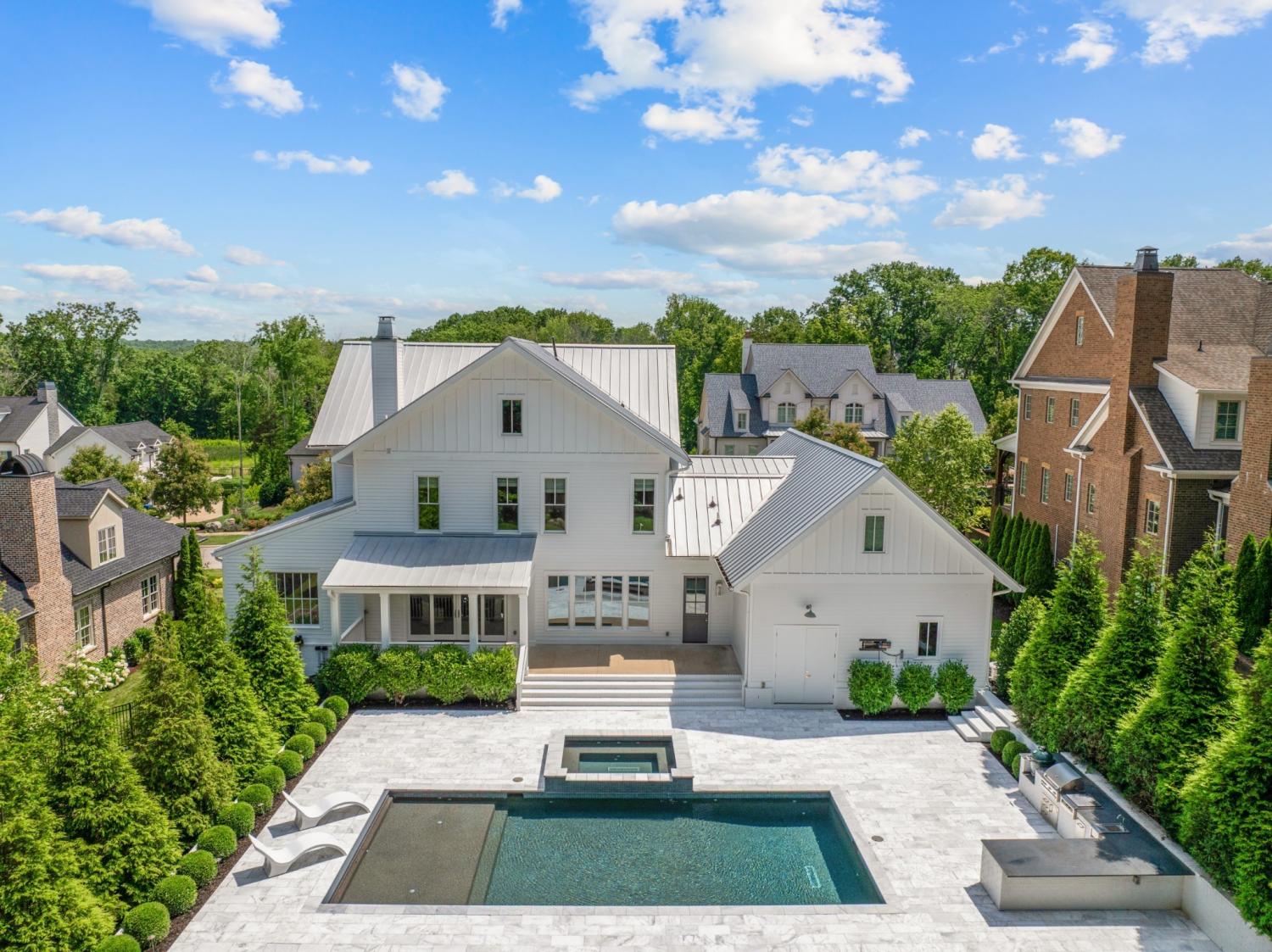 Welcome to this custom built modern farmhouse in The Grove - one of Middle Tennessee’s most exclusive golf club communities just south of Nashville and minutes from downtown Franklin. The resort style backyard is an entertainer’s dream with its saltwater pool, hot tub, outdoor kitchen and bar, professional outdoor lighting and sound system and even a putting green with chipping area. Inside you will find tons of natural light and warm hardwood flooring throughout. The main living space features magnificent, exposed wooden beams combined with a gourmet kitchen with butler’s pantry with sliding doors to the outdoor living area. The primary suite feels like its own private getaway, with a spa-like bathroom, expansive double vanities, soaking tub and custom closet. Upstairs boasts 3 more bedrooms, each with their own private bathroom and custom closet, bonus room, rec room and a movie theater. All of this is walking distance to one of the community pools, tennis/pickleball courts, playground and casual dining restaurant. This home is move-in ready with fresh paint and brand new hardwood floors throughout. Schedule your showing before it's gone.