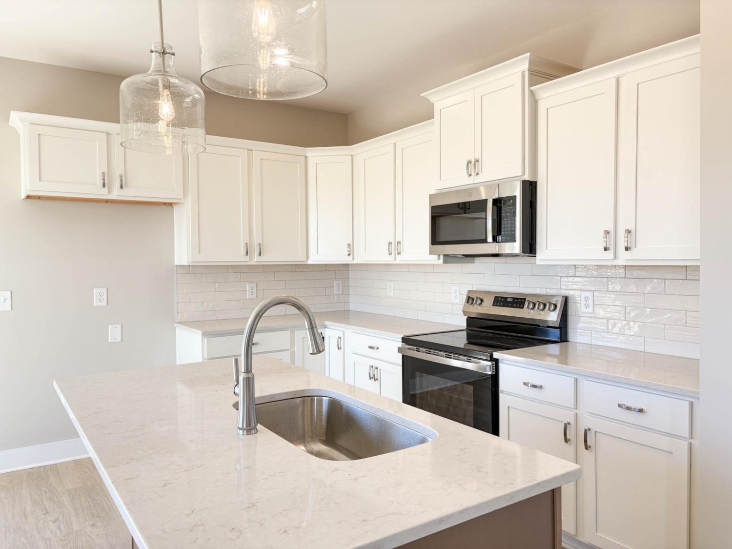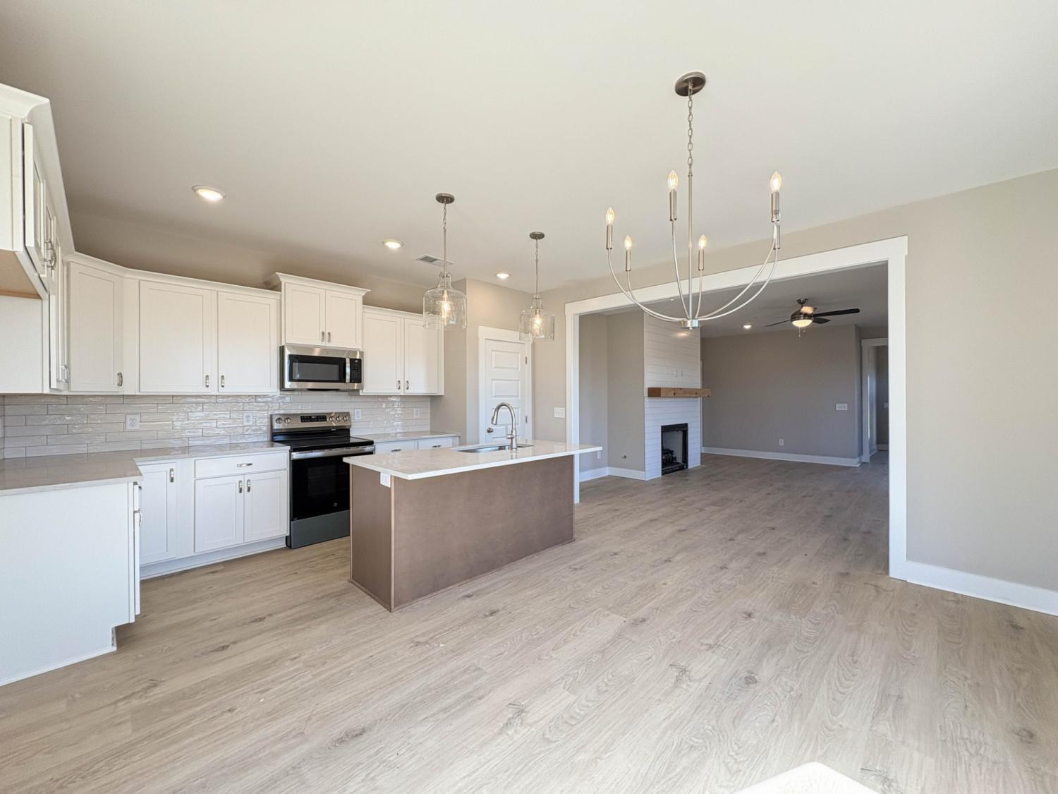 Discover the Huntington floor plan in the desirable Westfield community! This all-brick, single-level home offers 3 bedrooms, 2 baths, and 1,603 sq ft of thoughtfully designed living space. The selections package features luxury laminate flooring in main areas, plush carpet in bedrooms, and stylish tile in baths. The open-concept layout includes a spacious living room with a gas fireplace, a gourmet kitchen with quartz countertops, stainless appliances, and a pantry, plus a bright dining area. The primary suite boasts a walk-in closet and a sleek shower-only bath. Enjoy relaxing on the covered patio and the convenience of a 2-car front-entry garage. Ask us about our preferred lender and seller incentives!