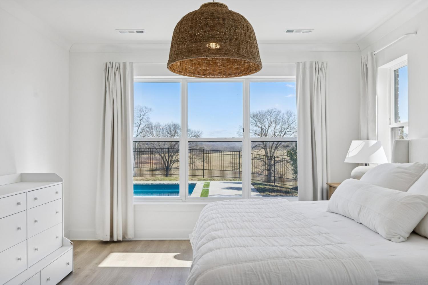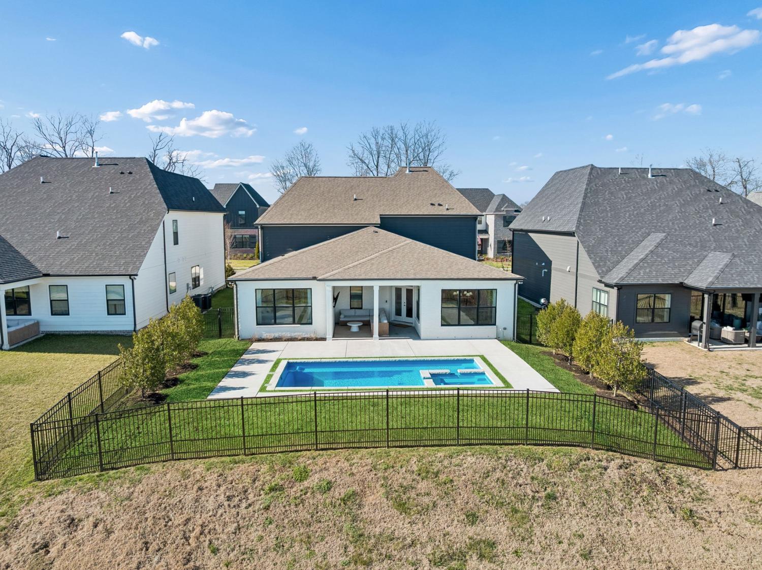 An exceptional newly built residence (2023) offering Breathtaking Backyard Views and Resort-Style Outdoor Living ~ The private, fully fenced and sodded grounds are framed by privacy trees and highlighted by a Heated Saltwater Pool and Hot-Tub - creating a serene retreat ~ The interior is richly appointed with designer finishes throughout, including curated lighting, elegant shiplap detailing and designer wallpaper ~ The chef's kitchen is a true statement, featuring a dramatic waterfall island, upgraded cabinetry, and high end plumbing fixtures throughout ~ This thoughtfully designed home offers four bedrooms and four full baths, with the primary suite and an additional bedroom conveniently located on the main level ~ Upstairs, two bedrooms are complemented by an oversized bonus room and a versatile flex space - perfect for a private office, lounge, or exercise room ~ This exceptional home combines modern design, functional living spaces and resort-style outdoor amenities ~ An absolute must see! Buyer's and buyer's agent to confirm pertinent information.