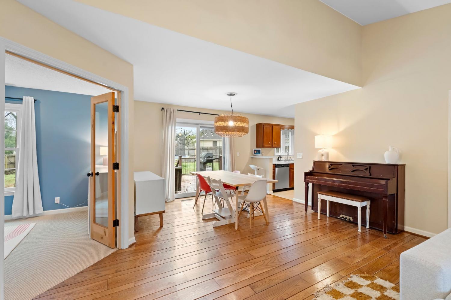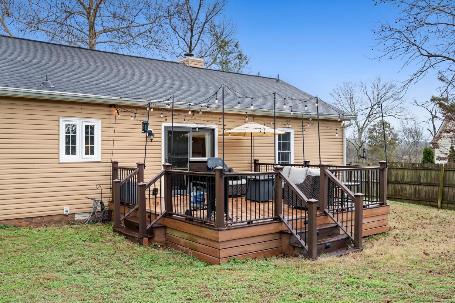 Welcome to this beautifully maintained Franklin cottage, offering timeless character with thoughtful updates throughout. The inviting great room features rich hardwood floors and a classic brick wood-burning fireplace—perfect for cozy evenings or entertaining friends and family. New roof in 2024! The kitchen has been refreshed with a newer French-door refrigerator (2023), updated faucet (2023), and new garbage disposal (2023), blending functionality with everyday ease. Recent interior upgrades include new light fixtures in the living room and dining room, new doors added to the office for privacy and flexibility, and brand-new carpet in the bedrooms for a fresh, move-in-ready feel. Step outside to a generously sized backyard with a Trex deck and landscape dusk-to-dawn lighting—ideal for outdoor dining, relaxing, or hosting gatherings. The garage has been upgraded with a sleek epoxy floor and includes a pedestrian door for added convenience. Zoned for top-rated Williamson County schools and conveniently located near shopping, dining, and commuter routes, this home offers comfort, charm, and value in one of Franklin’s most desirable areas.