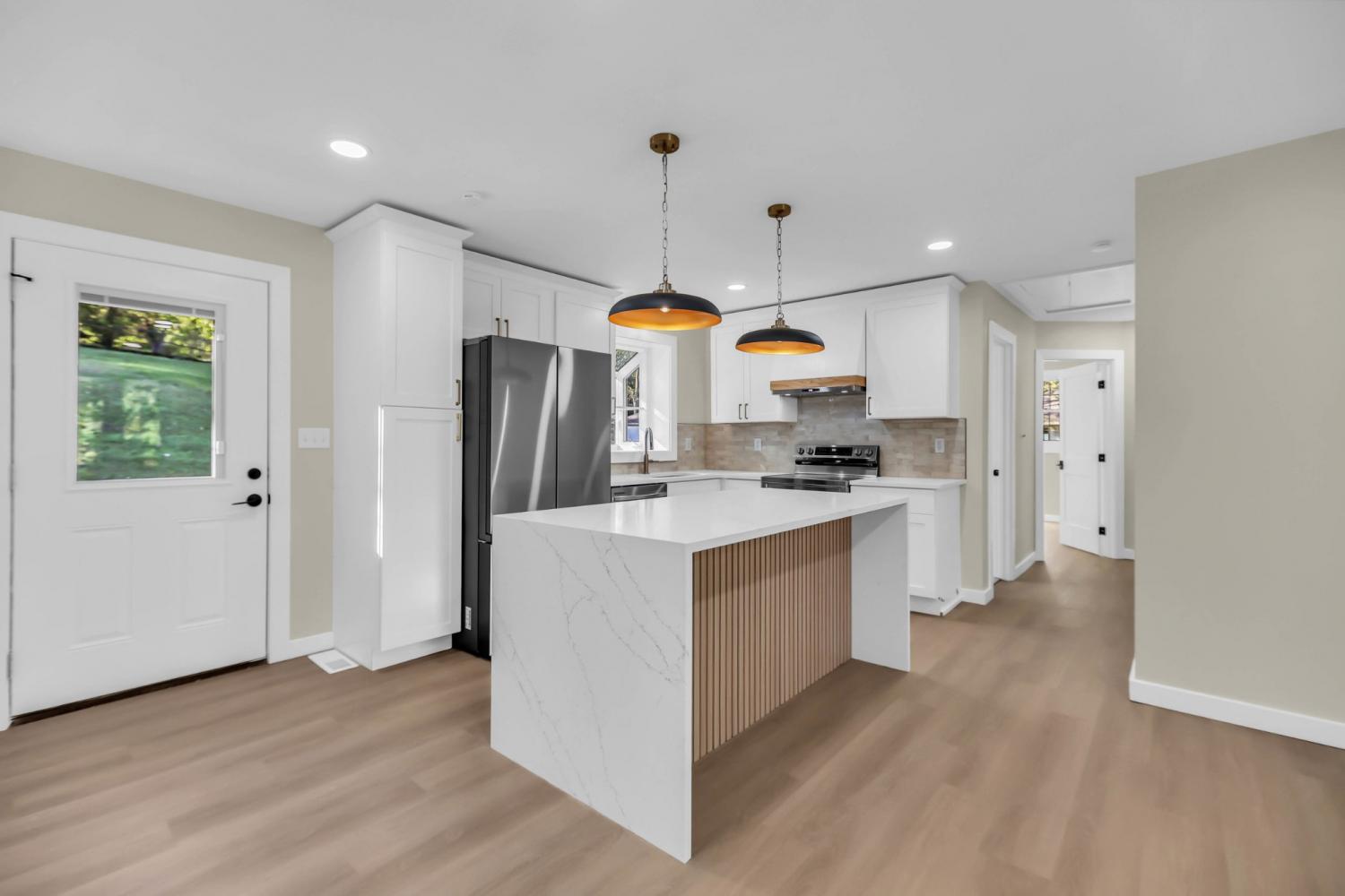 Beautifully renovated 4-bedroom, 2-bath! This stunning property features brand new LVP flooring, fresh paint, new light fixtures, and a bright open floor plan. The new kitchen boasts new shaker cabinets, quartz countertops, new stainless steel appliances, tile backsplash, and a large island with wood accent detail. Both bathrooms have been fully updated with modern tile, gold fixtures, and double vanities. Exterior upgrades include new shutters, fresh paint, a new patio, and a covered front porch with wood columns. All 3 sheds remain! Conventionally located near shopping, dining, and schools. 3 Minutes from Swan Lake Park! Move-in ready!!