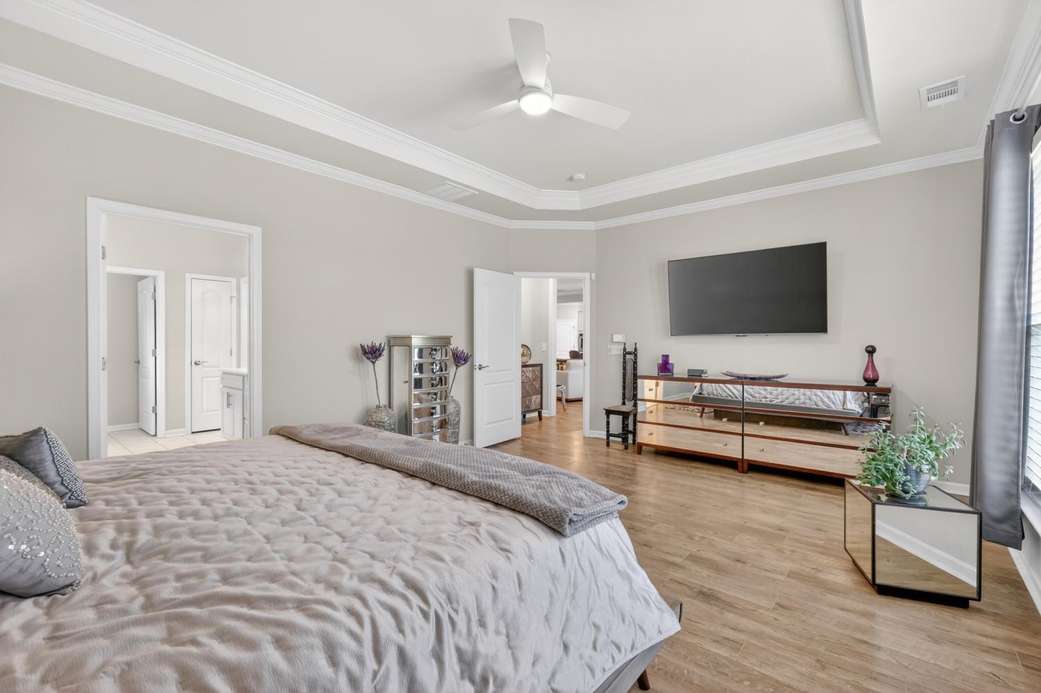 Prime location, premium tree-lined homsite, and peacefulness all wrapped up in this Dunwoody Way floor plan in the amazing active adult community of Del Webb Southern Springs. 3 bedrooms, 3 full baths, office/den, EZ Breeze sunroom with epoxy flooring and heating unit, luxury plank flooring throughout, tile flooring in bathrooms and laundry, stone gas log fireplace, gas stubout at back patio, irrigation, crown molding, trey ceiling in owners bedroom, double sinks and sit down make-up vanity in owners bathromm, fenced backyard, epoxy floor in garage - front patio - extended back patio, CA closet system in owners, sink in laundry with extra storage, frameless glass doors in owners shower, upgraded light fixtures and fans throughout, quartz in kitchen, upgraded cabinets, custom tile backsplash, undercabinet lighting in kitchen, ALL upgraded appliances included with home, walk up attic storage,tankless gas hot water heater, ring camera, security system, insulated and painted garage, radiant barrier sheathing in roof, private mailbox at street, Lee home warranty for yearly check ups on mechanicals and plumbing. So many wonderful upgrades make this a wonderful home to add to your viewing list! 19,000 square foot clubhouse with activities director - indoor and outdoor pool and hot tub - fitness center - pickleball and tennis courts - ballroom - meeting spaces - activity/hobby clubs and more!!!!! Come make Del Webb Southern Springs your next home!