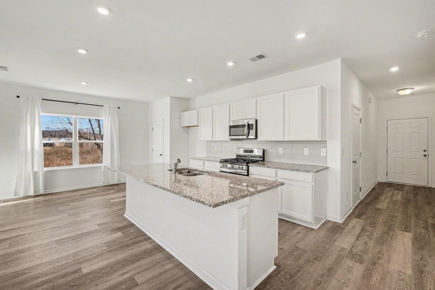 Prepare to be captivated by this stunning, practically brand-new home—it's only two years old—offering the perfect blend of modern luxury and unbeatable convenience in the heart of Columbia, TN. This spacious 3-bedroom, 2.5-bath gem is an absolute must-see! Step inside to a bright, open floor plan graced with beautiful new floors that flow throughout the main living areas. The chef-inspired kitchen features a high-end gas stove and oven, perfect for preparing gourmet meals. Enjoy the feeling of space and light with an open window layout that perfectly frames the serene outdoors. Beyond the three large bedrooms, a fantastic bonus common area awaits—ideal for a bustling playroom, a dedicated home theater, or a private home office. Unwind in your oversized master bedroom, complete with a truly generous large walk-in closet and a spa-like large, private bathroom. With a double car garage, dedicated pantry, and numerous closet spaces throughout, all your storage needs are met. This home is nestled on a spacious yard that sits directly adjacent to a tranquil green belt, providing a beautiful, natural backdrop and a private, scenic view right outside your window. Location is everything, and this home delivers! You’ll enjoy effortless access to major highways, making your commute a breeze. Everything you need is close by, including shopping centers, top schools, and the Columbia State Community College. Live a vibrant lifestyle with all of Columbia's best attractions just minutes away. Nicknamed "Muletown," the city offers a charming historic downtown square lined with trendy shops, boutiques, and delicious eateries. Explore the emerging Columbia Arts District or catch a show at the renowned live music. Refrigerator excluded from sale.
