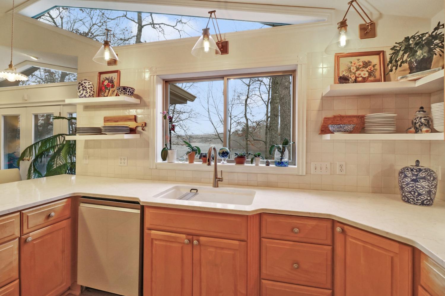 Wake Up To The Glassy Waters of St. George Lake Why settle for a view when you can own the shoreline? Perched on the pristine banks of Fairfield Glade's second-largest lake, this isn't just a home- it's a front-row seat to some of the best sunsets in Tennessee. Nestled on 162 feet of shoreline, this 3 bedroom, 2-bath sanctuary has been meticulously reimagined with ''no-expense-spared'' philosophy. The Art of the Interior--Step inside to an open-one level concept haven where natural southern light dances off genuine Hickory wood floors. Every detail has been curated for the sophisticated eye: *Chef’s Dream Kitchen: Outfitted with Samsung Bespoke appliances, stunning Quartz countertops, and White Zellige tile for that perfect organic texture. * Architectural Soul: Real wood ceiling beams and crisp shiplap provide a modern mountain-lake aesthetic anchored by a stunningly redesigned gas fireplace. * Designer Touches: From Ballard Design mirrors to high-end custom lighting, every room feels like a page from a luxury editorial. Your Private Waterfront Resort--While the interior is breathtaking, the true magic happens lakeside. * The Ultimate Dock: Boasting perhaps as one of the largest 2 boat slip dock on St. George Lake, recently rebuilt and ready for morning coffee or evening cocktails. * Adventure Ready: Launch your day with ease using the kayak launchers. (Ask how the canoe and kayaks can stay with the home!) * Ultimate Relaxation: After a day on the water, retreat to your expanded deck or sink into the private hot tub under the stars. Peace of Mind Included-Luxury means never having to worry about the ''boring'' stuff. With a brand new- HVAC system, leaf filter gutters, replacement of main water line, fresh interior paint, newly landscaped yard, and new washer/gas dryer set, this home is truly turn-key. Fairfield Glade is waiting. The lake is calling. Will you answer? Buyer to verify all information prior to making an offer. Chandelier in dining does not stay