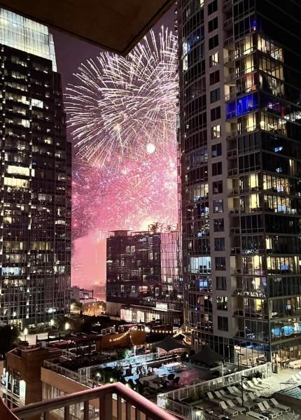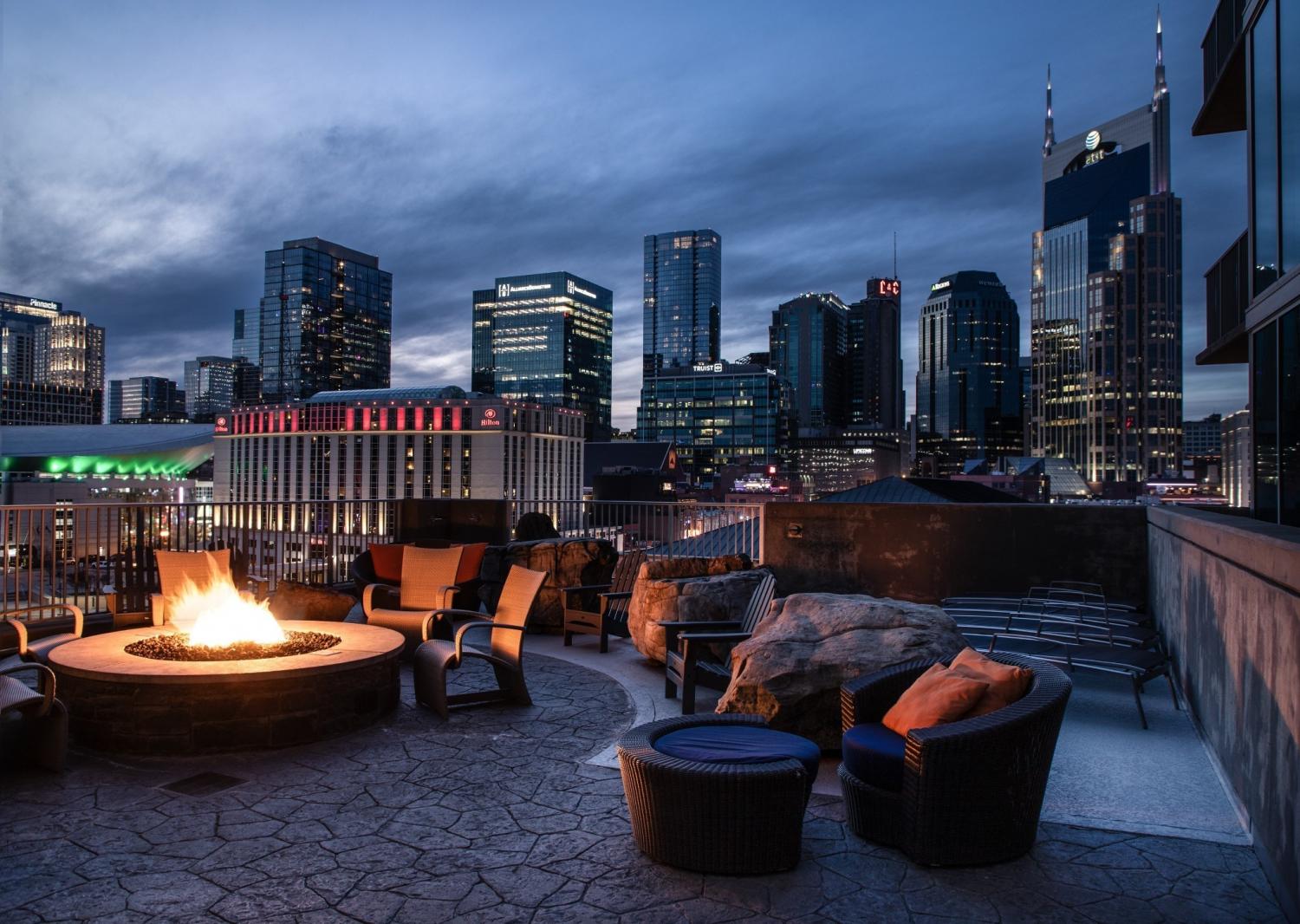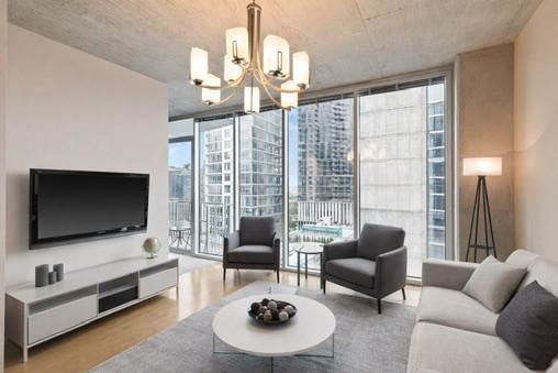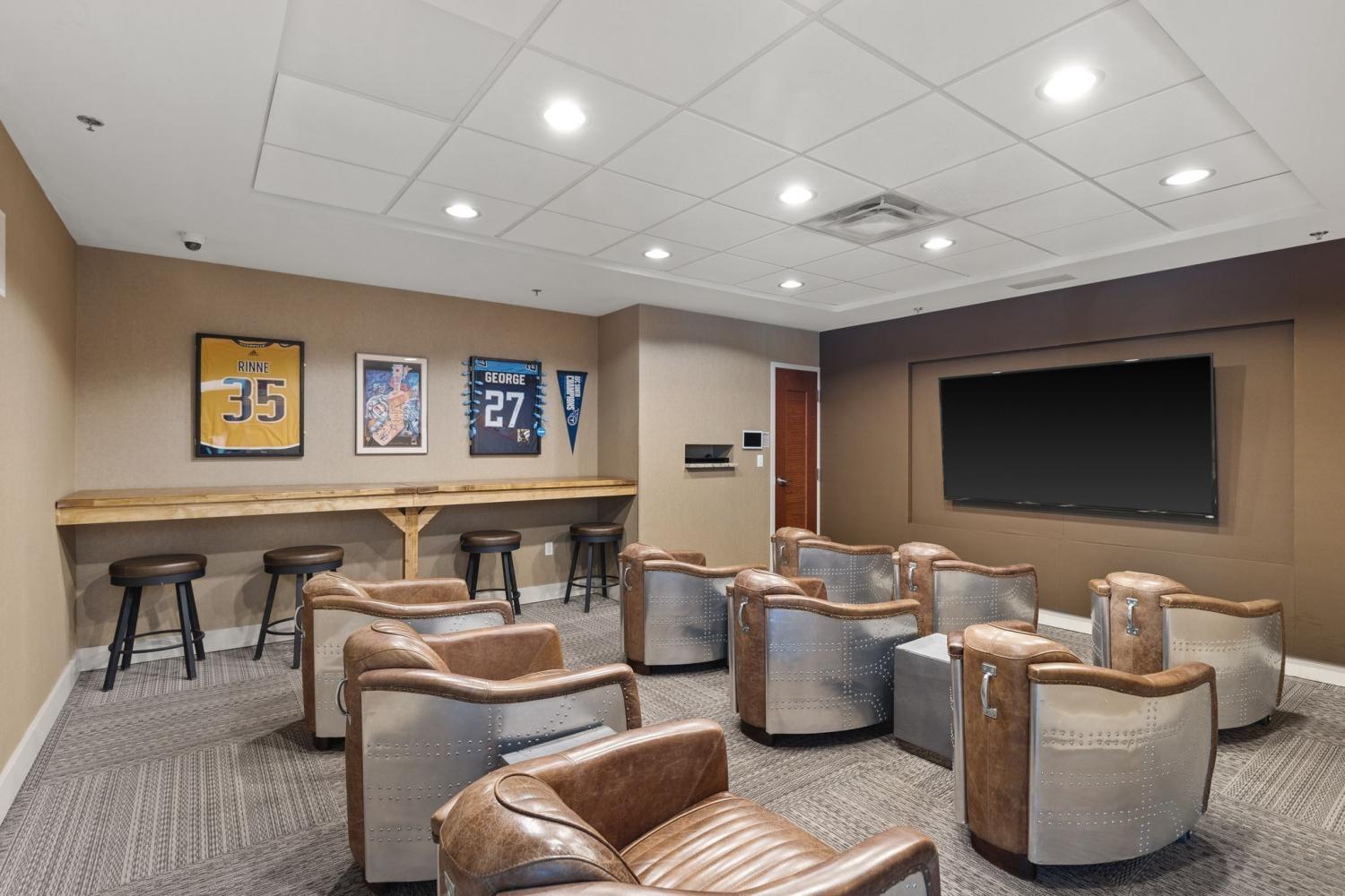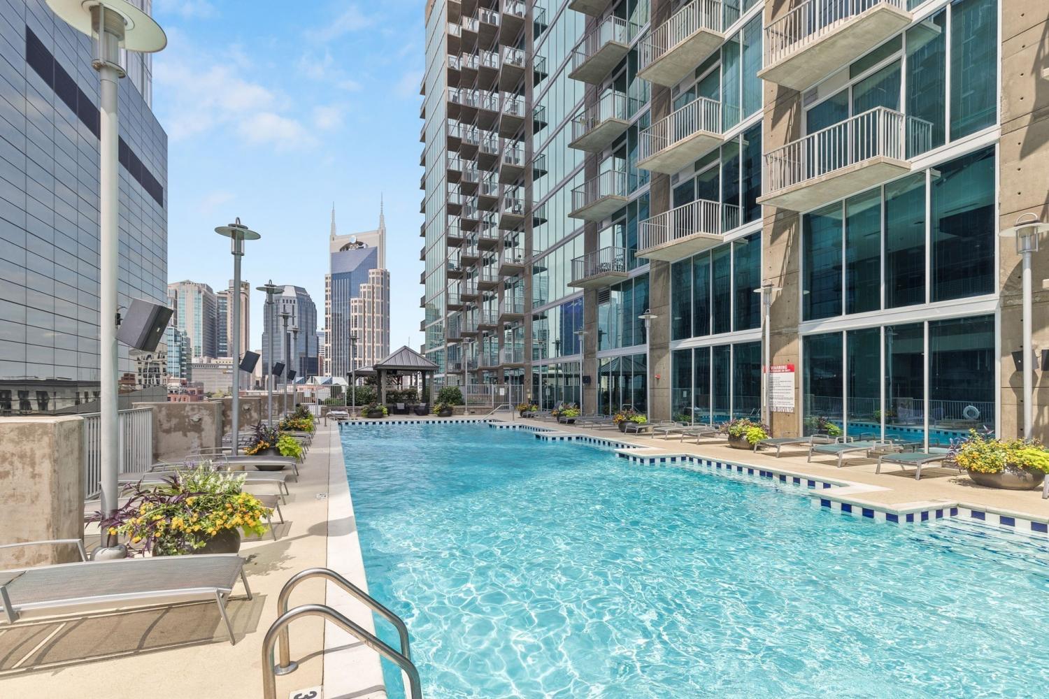Incredible location for music and sports enthusiasts in the heart of downtown Nashville! This one bedroom residence places you steps from Bridgestone Arena, Nissan Stadium, Ascend Amphitheater, Schermerhorn Symphony Center, and Broadway. Floor to ceiling windows face the river and offer stunning sunrise views. The thoughtfully designed layout features a dining area, office nook, private bedroom, and a spacious walk-in closet, ideal for a full-time residence or sophisticated second home with lock-and-leave convenience. Resort-style amenities include 24-hour concierge service, a rooftop pool, fitness center, clubroom, theater, and more. Assigned parking in a secure, gated garage included.