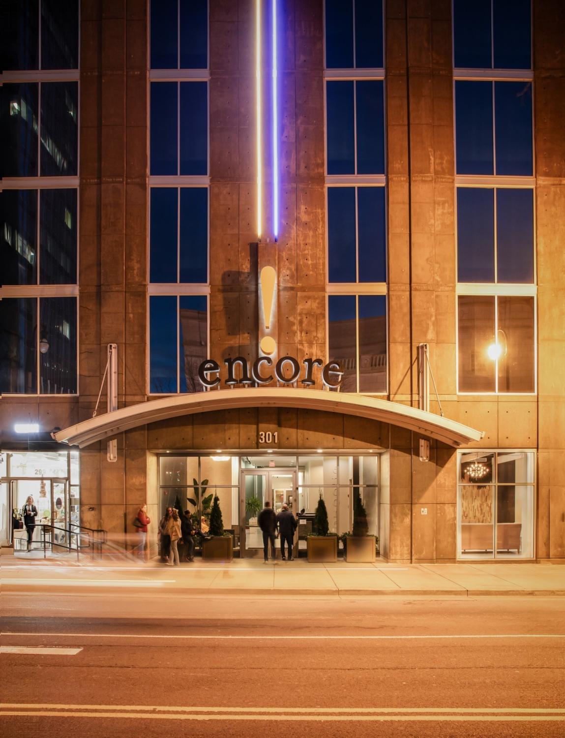 From I-24 take Korean Veterans Blvd to 3rd Ave. From Broadway take 3rd Ave South to Demonbreun. Encore is located at the corner of 3rd and Demonbreun. Parking garage entrance is located on 3rd Ave.