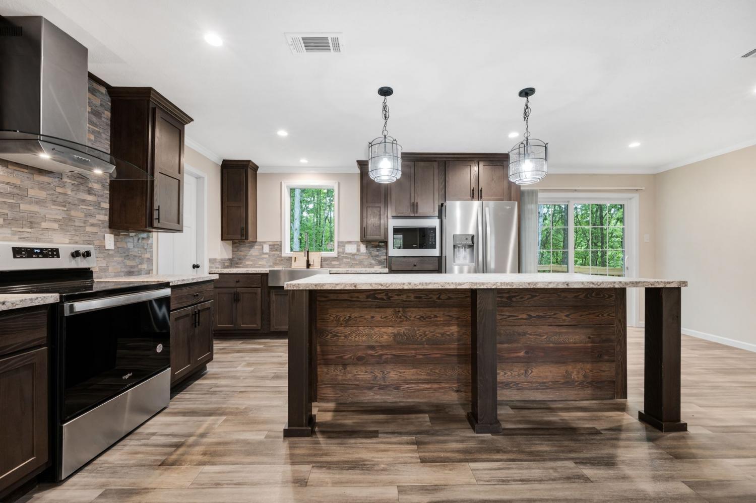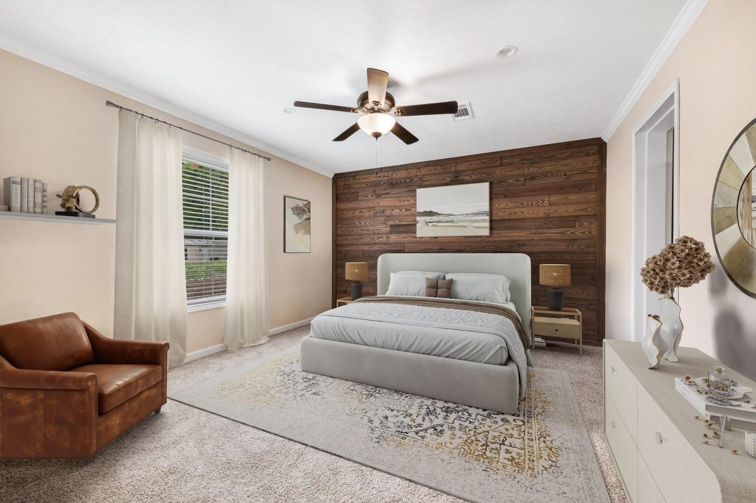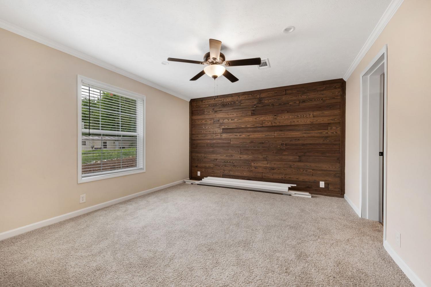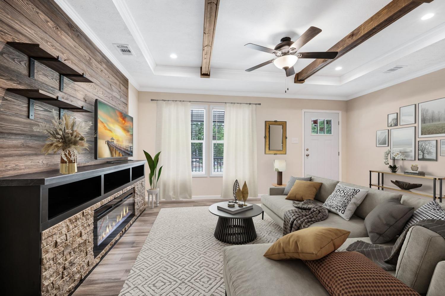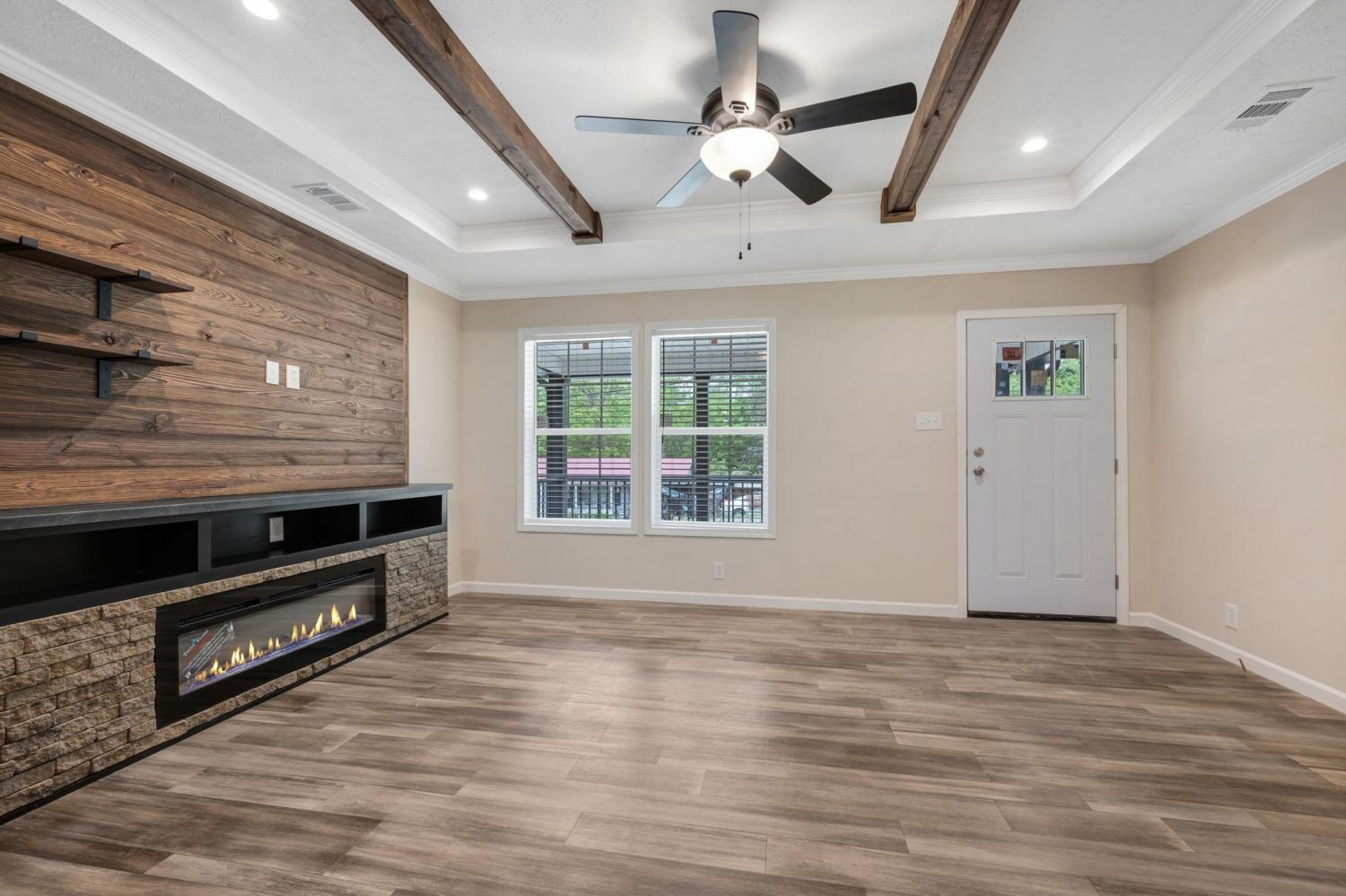 This ranch-style home offers 3 bedrooms, 2 full bathrooms, and approximately 1,400 square feet, with a layout that’s easy to live in and flows well from room to room. The living room features a built-in electric fireplace, wood accent walls, and exposed beams that add warmth and character. The primary bathroom stands out with a large soaking tub, double vanity, and plenty of cabinet space. The kitchen comes equipped with an electric range, oven, cooktop, microwave, dishwasher, and refrigerator. Laminate flooring runs throughout the main living areas, with carpet in the bedrooms. Washer and electric dryer hookups and high-speed internet access add everyday convenience. Step outside to a spacious deck that’s great for relaxing or entertaining. Sitting on just under an acre, the property offers room to enjoy the outdoors while still benefiting from city water and public sewer. The home is also just minutes from the park and within easy walking distance. With true one-level living, modern updates, and a peaceful Waverly setting, this ranch-style home is move-in ready and ready for its next owner.