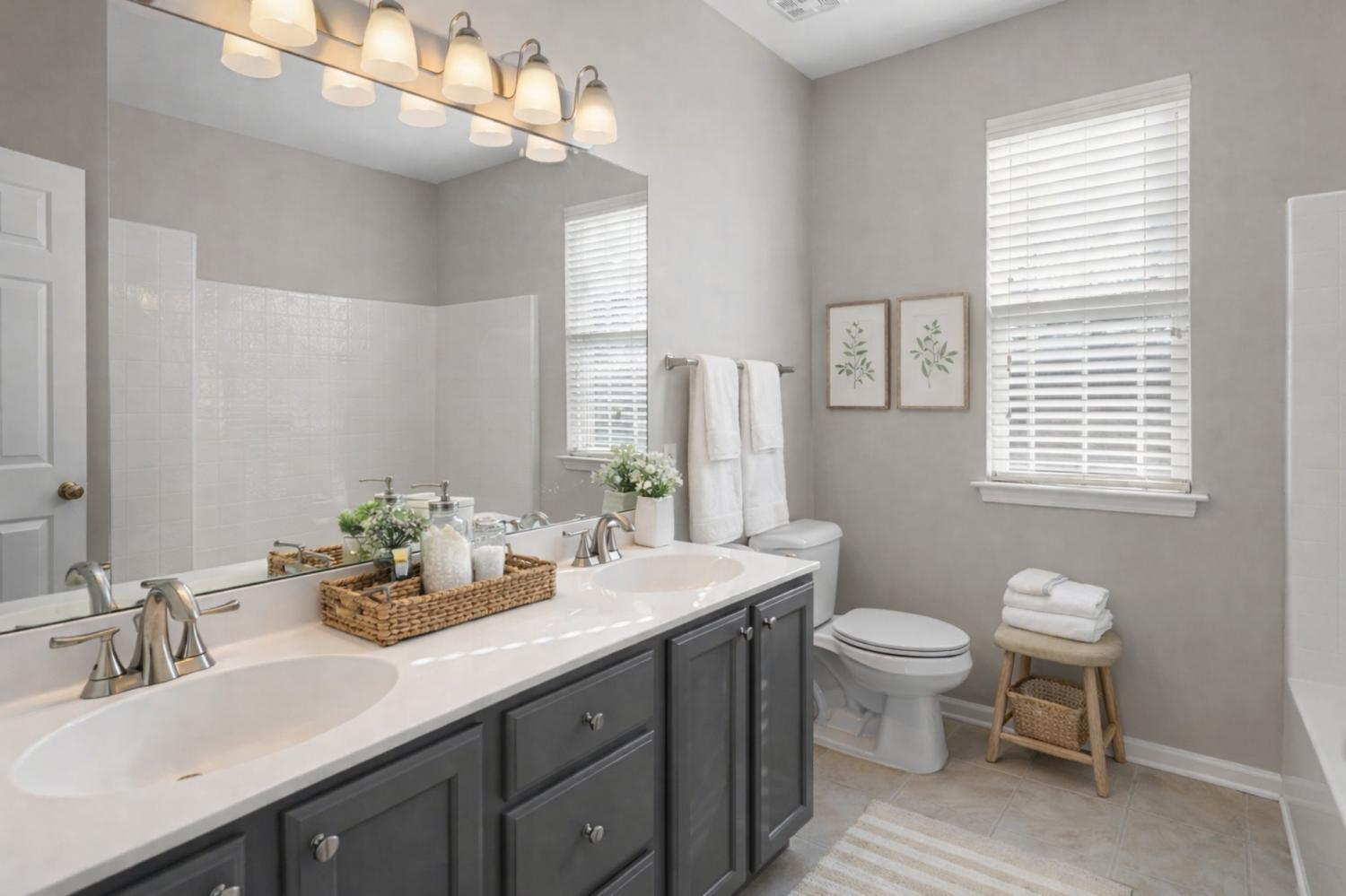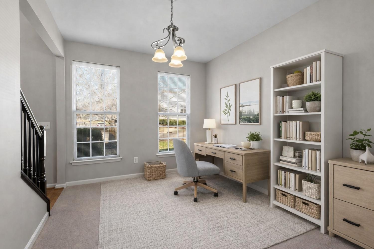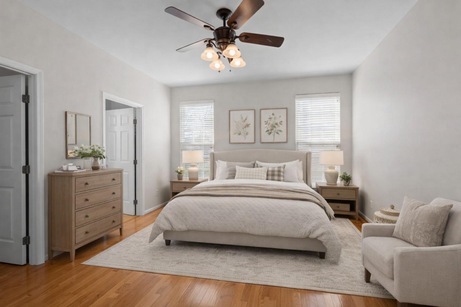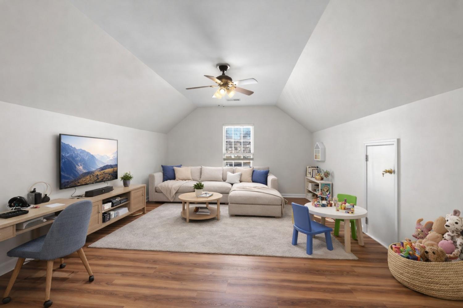This freshly renovated Franklin Green home is fully turnkey and ready for immediate move-in. The main-level primary suite offers convenience, while a flexible front room works well as a dining area or home office. A large bonus room upstairs provides additional living space. The backyard backs to green space for added privacy, and the neighborhood offers a pool, playground, and walking trails.