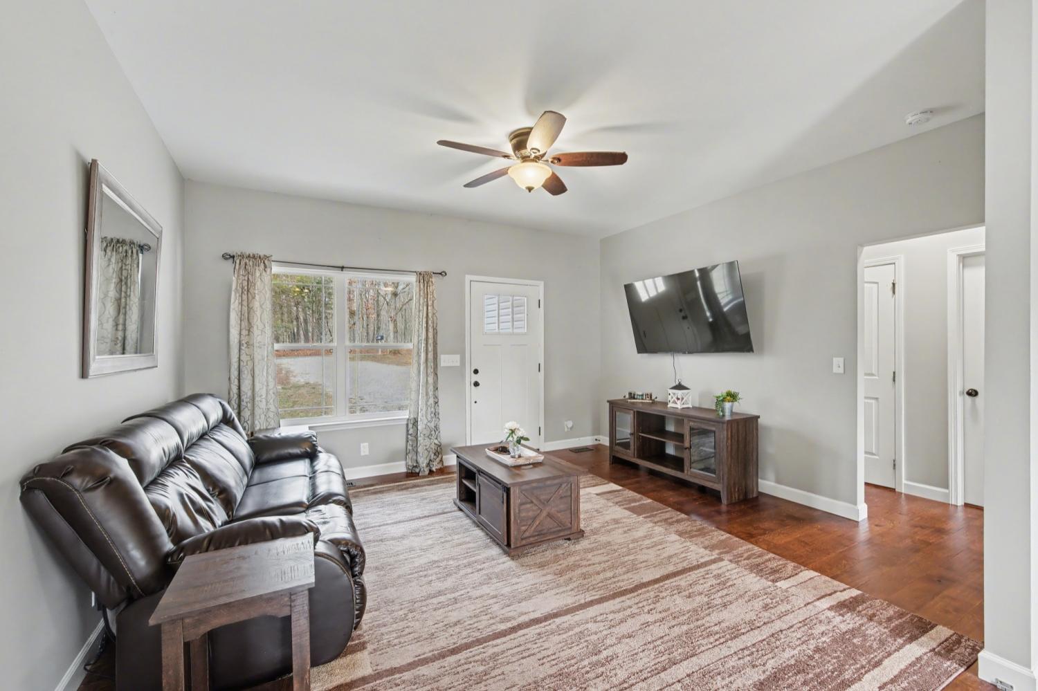 This beautiful 2019 build offers, 3 beds, 2 baths, 9ft ceilings throughout, hardwood floors in main living areas, carpet in bedrooms, granite counters, open floor plan, white shaker soft close cabinets, stainless steel appliances w/ gas range, pantry, tankless water heater, large picturesque treed back yard, pool, tiered decking, storage shed, 1 acre lot, and close proximity to interstate 40. USDA 100% financing available!