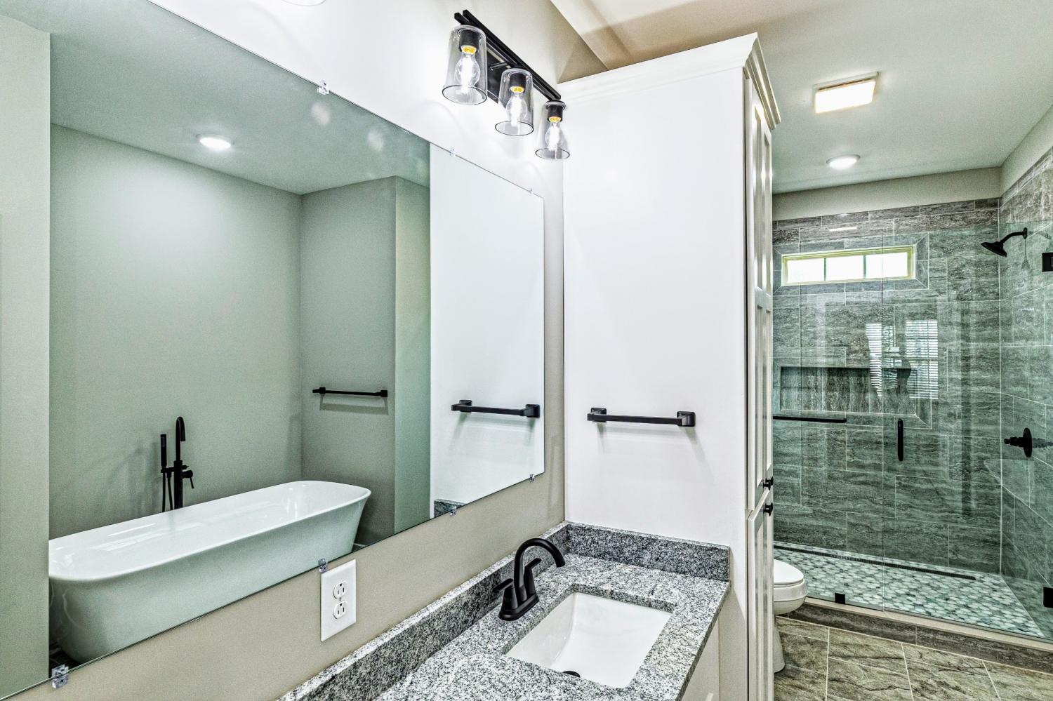 Welcome to this brand-new residence, beautifully perched on a hilltop. This thoughtfully laid-out home features three spacious bedrooms and three and a half modern bathrooms. The master suite is conveniently located on one side of the house, while the two additional bedrooms share a Jack and Jill bathroom on the opposite side, creating an ideal blend of comfort and privacy for you and your family. The master suite includes a large walk-in shower and a stylish standalone tub for your relaxation. The open floor plan creates a warm and inviting atmosphere, perfect for both entertaining and everyday living. You'll appreciate the generous closets that offer ample storage space, along with a large pantry to accommodate all your culinary needs. The full basement presents endless possibilities for customization—whether you envision a home gym, entertainment room, or additional living area. Enjoy the tranquility of secluded living while remaining conveniently close to local amenities. For those who enjoy the lake life, this home is conveniently located just minutes from Kentucky Lake, making it perfect for boating, water sports and fishing enthusiasts. Don’t miss your chance to make this beautiful space your own! Schedule a tour today.