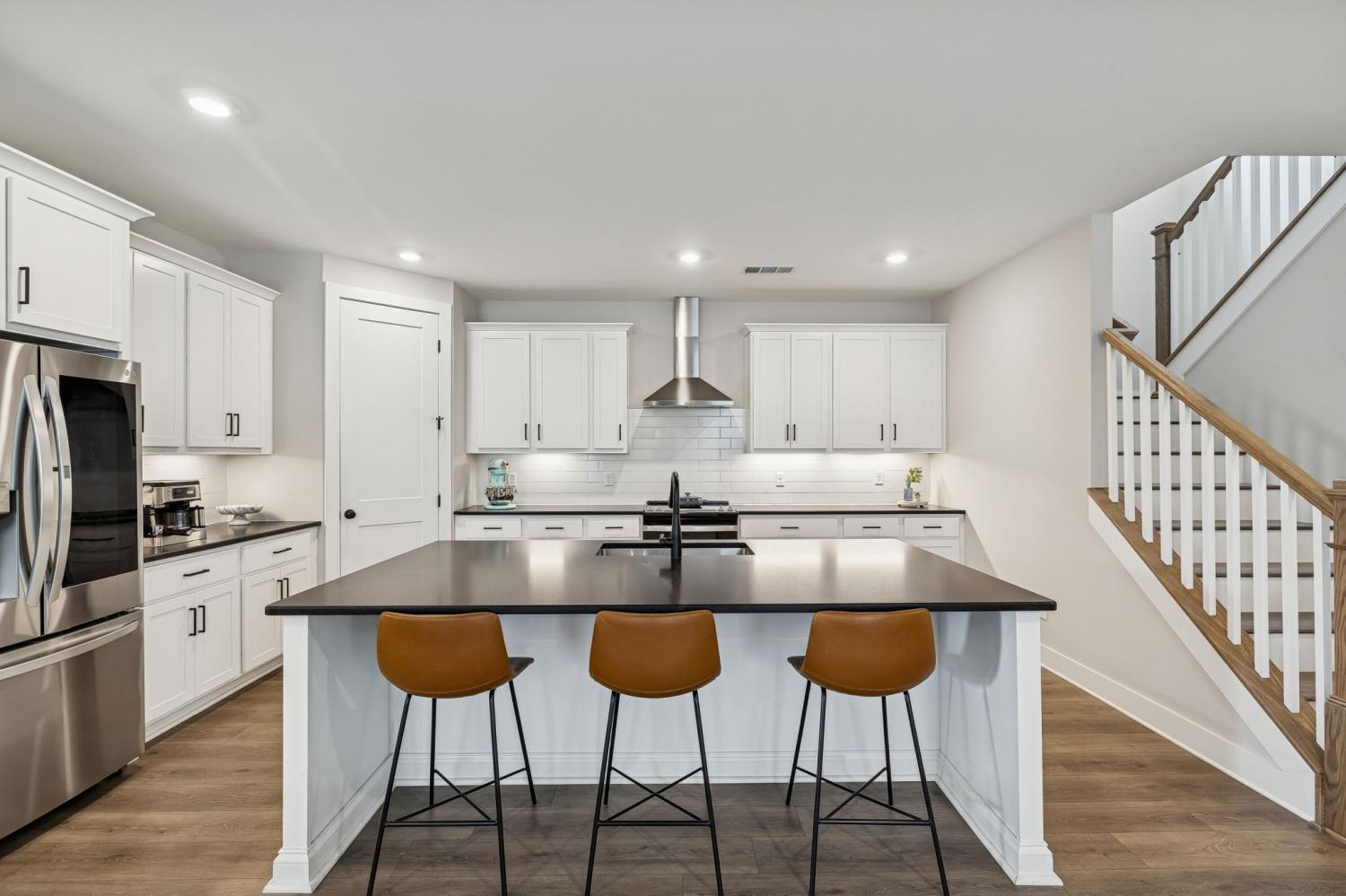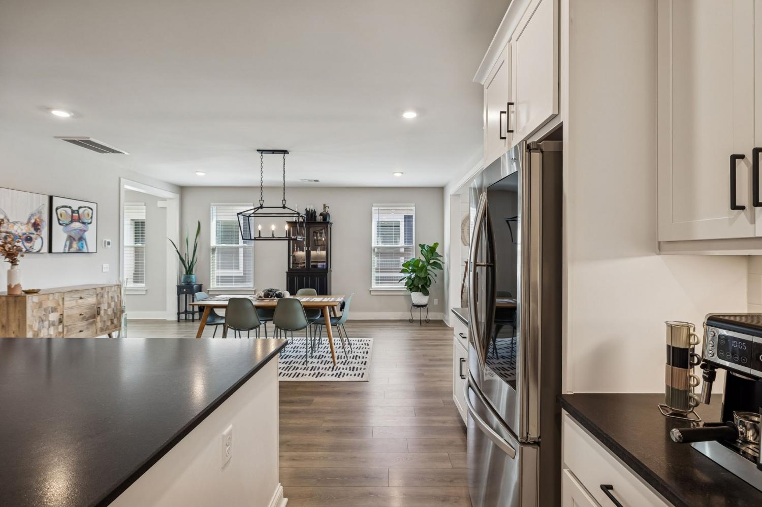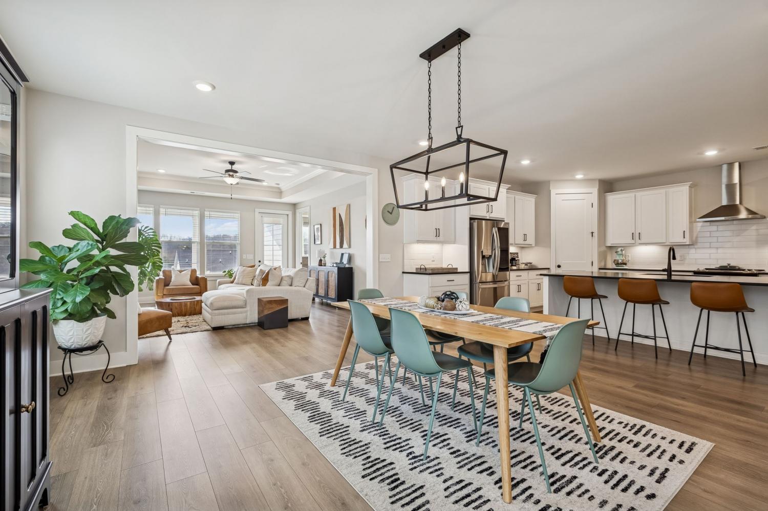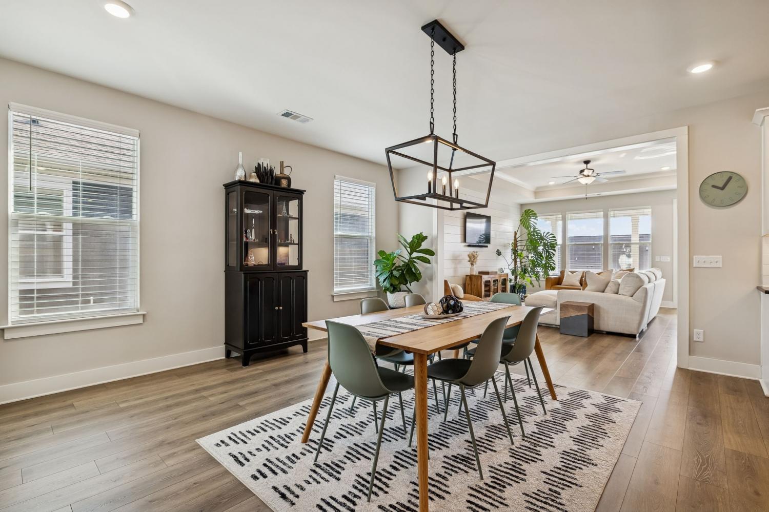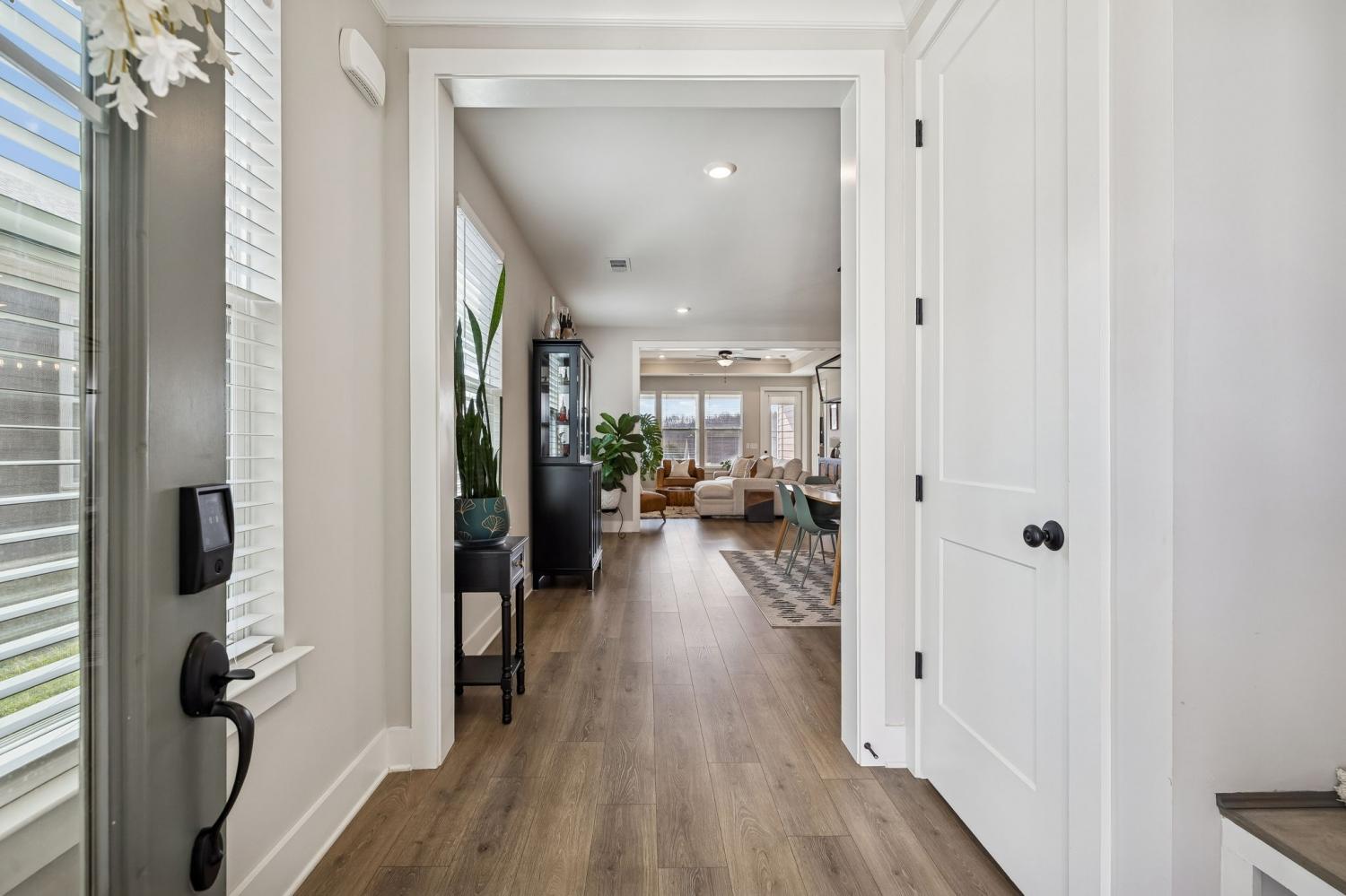 Located in the desirable Blakeney community, 6731 Walsham Drive offers the perfect blend of comfort, convenience, and upscale living. This walkable neighborhood features sidewalks, pavilion, a playground and splash pad. Enjoy quick access to Nolensville, Sam Ridley Parkway, Medical Center Parkway, and Veterans Parkway with abundant shopping and dining just minutes away. Inside, the open-concept floor plan is enhanced by 9 foot ceilings throughout, with impressive 10 foot tray ceilings in the living room and primary suite. The oversized entertainer’s kitchen is a true showstopper, featuring an 8x4 island, stainless steel hood vent, stainless steel refrigerator, under cabinet lighting, abundant cabinetry, and sleek black granite countertops. The light filled living room showcases a stylish shiplap accent wall, while luxury vinyl plank flooring runs throughout the main level, including the primary bedroom, walk-in closet, and staircase. The custom Closets by Design system in the primary suite offers adaptable shelving, hanging space, and storage tailored to your needs. Upstairs, storage abounds with a walk-in attic, spacious hallway closet, and generous bedroom walk-in closets. Outdoor living is effortless with a covered patio and a low maintenance, fully fenced backyard is ideal for entertaining, pets, or quiet relaxation. Don’t miss this opportunity to call one of Blakeney’s most sought after homes your own.