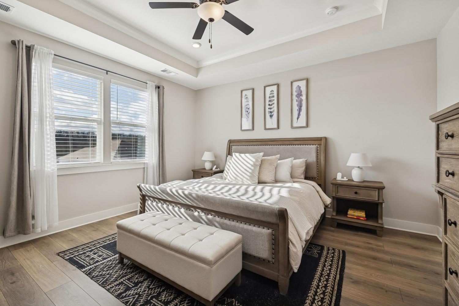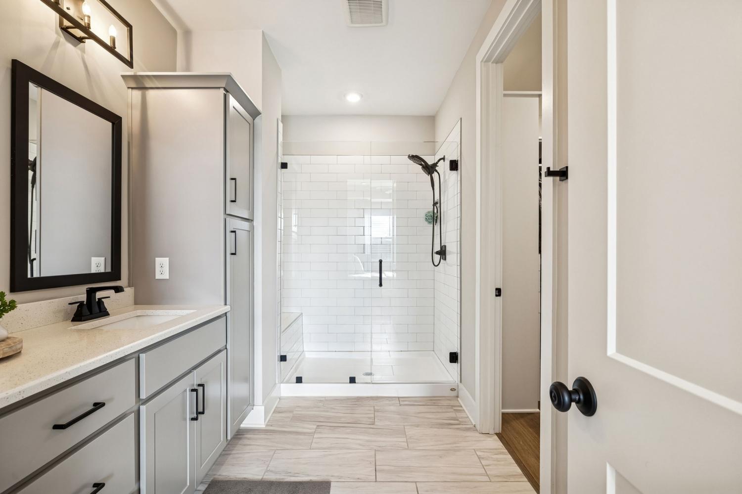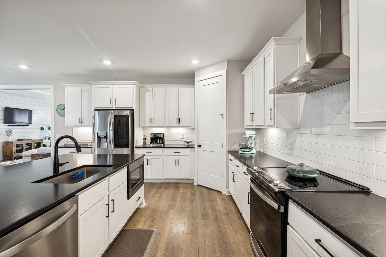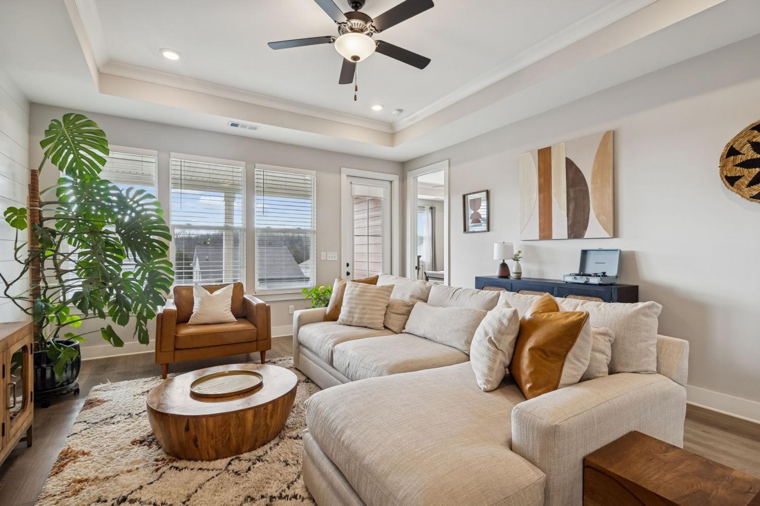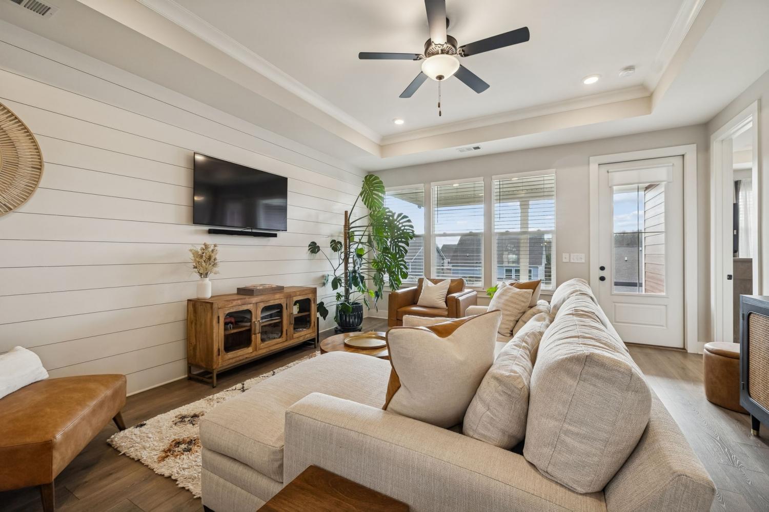 Located in the desirable Blakeney community, 6731 Walsham Drive offers the perfect blend of comfort, convenience, and upscale living. This walkable neighborhood features sidewalks, pavilion, a playground and splash pad. Enjoy quick access to Nolensville, Sam Ridley Parkway, Medical Center Parkway, and Veterans Parkway with abundant shopping and dining just minutes away. Inside, the open-concept floor plan is enhanced by 9 foot ceilings throughout, with impressive 10 foot tray ceilings in the living room and primary suite. The oversized entertainer’s kitchen is a true showstopper, featuring an 8x4 island, stainless steel hood vent, stainless steel refrigerator, under cabinet lighting, abundant cabinetry, and sleek black granite countertops. The light filled living room showcases a stylish shiplap accent wall, while luxury vinyl plank flooring runs throughout the main level, including the primary bedroom, walk-in closet, and staircase. The custom Closets by Design system in the primary suite offers adaptable shelving, hanging space, and storage tailored to your needs. Upstairs, storage abounds with a walk-in attic, spacious hallway closet, and generous bedroom walk-in closets. Outdoor living is effortless with a covered patio and a low maintenance, fully fenced backyard is ideal for entertaining, pets, or quiet relaxation. Don’t miss this opportunity to call one of Blakeney’s most sought after homes your own.