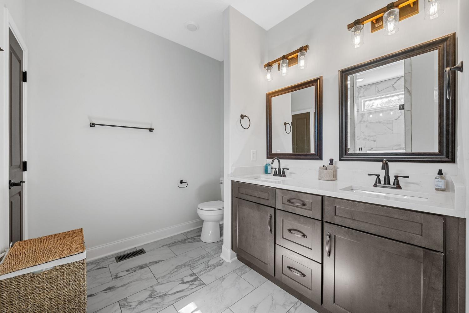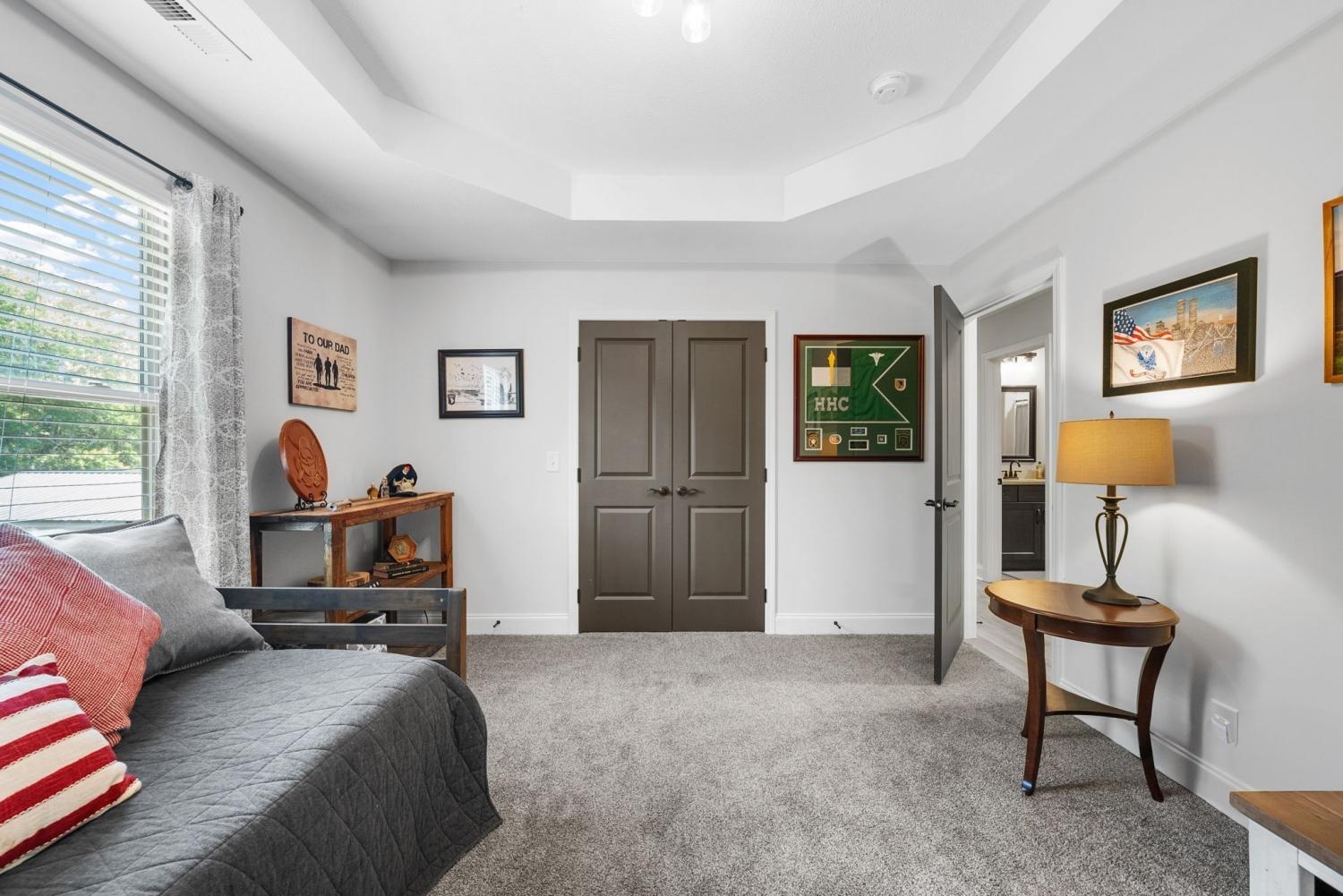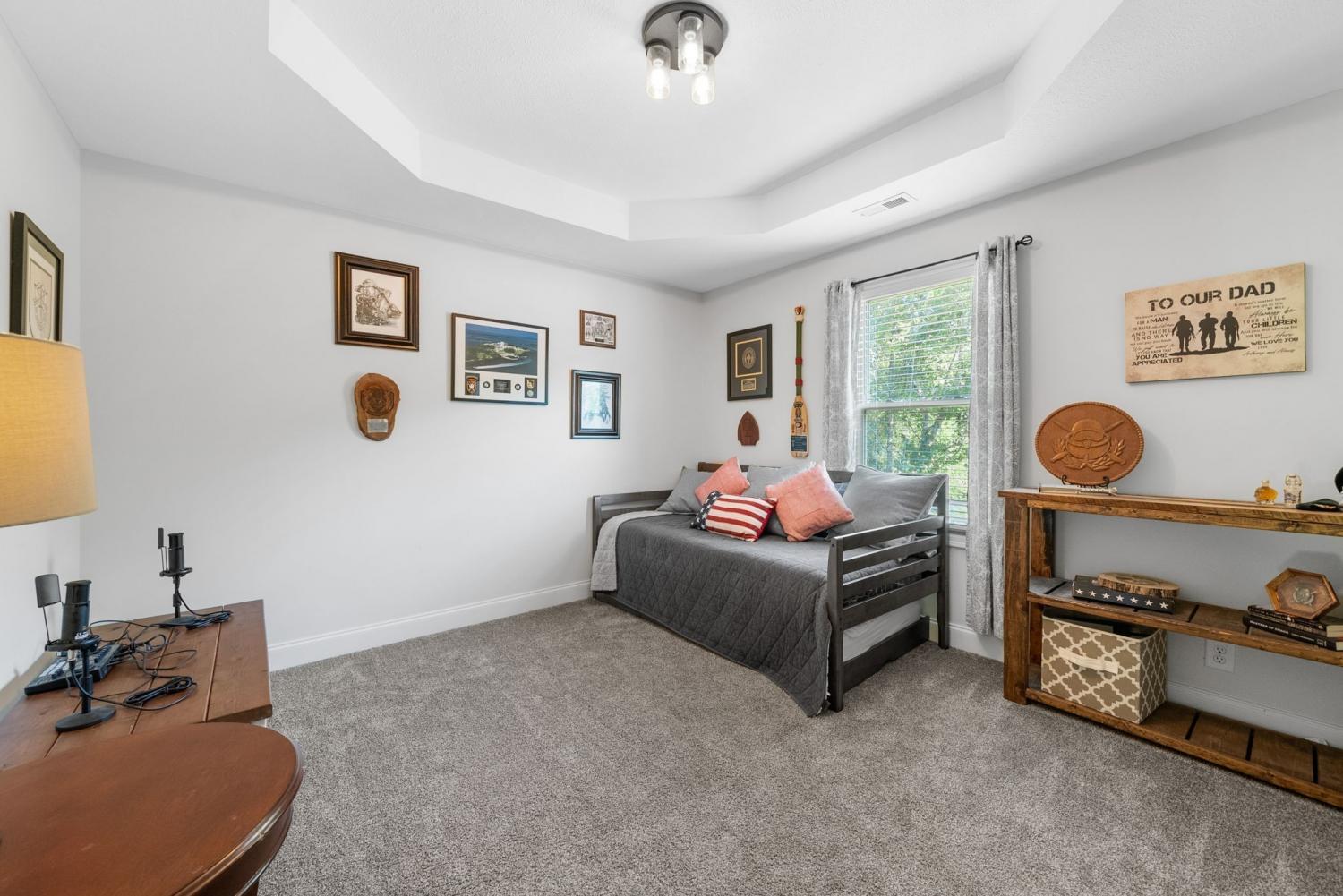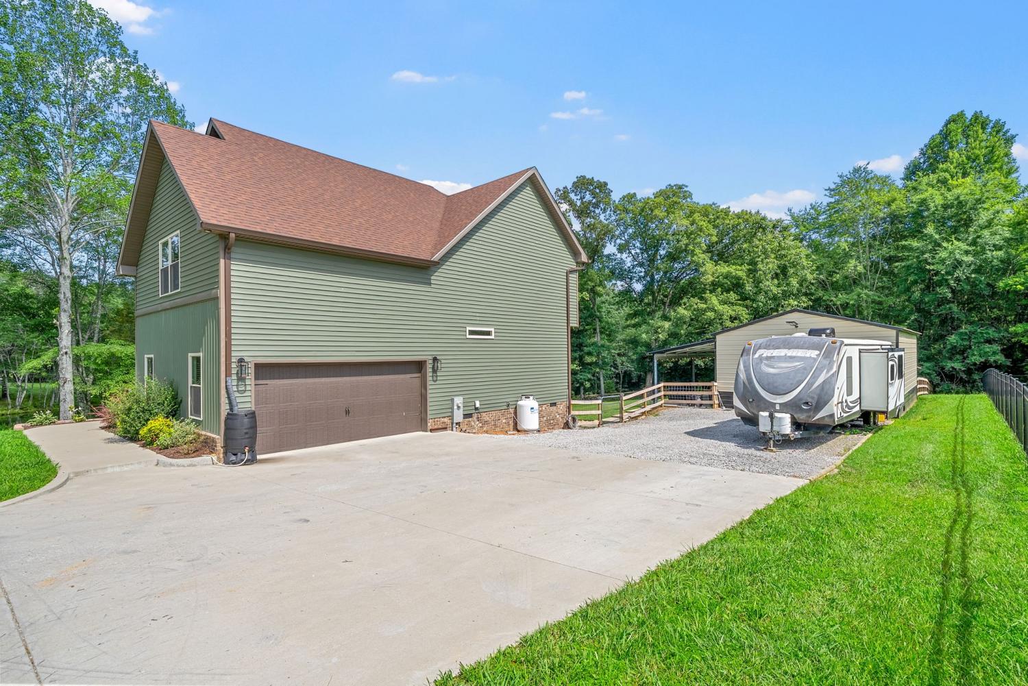 *SELLER TO PROVIDE $32,000 IN CONCESSIONS!* + 1% LENDER CREDIT! This luxury estate boasts 2.74 acres, a detached garage, covered patio, chickens + chicken coop, and a gated path leading to your private creek. Inside, the main living area features vaulted ceilings, stone fireplace, handcrafted floors, and stairwell lighting. The eat-in kitchen boasts custom cabinetry, quartz countertops, and a pantry! Downstairs primary suite offers a walk-in closet with an en suite bathroom, double vanities, linen closet, and a custom tiled shower. Upstairs you’ll find 2 oversized bedrooms with large closets PLUS a 2nd primary suite w/ huge walk-in closet and full en suite bathroom. Two additional linen closets upstairs! MASSIVE bonus room for fifth bedroom, office, or movie room. All ceiling fans are on a remote control. Only 20-25 mins from Downtown Clarksville! NO HOA! NO CITY TAXES! Preferred Lender is offering an additional credit up to $6,999 towards closing costs or permanent rate buydown. Flood insurance not required.